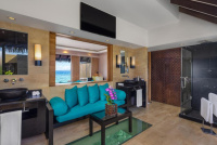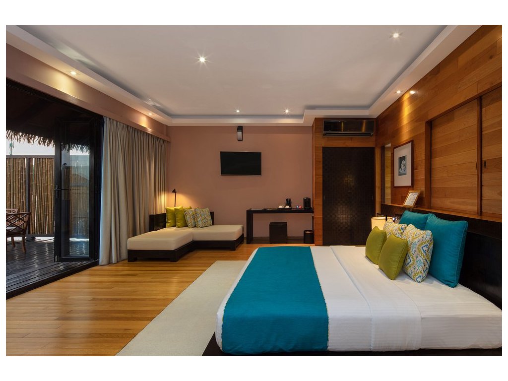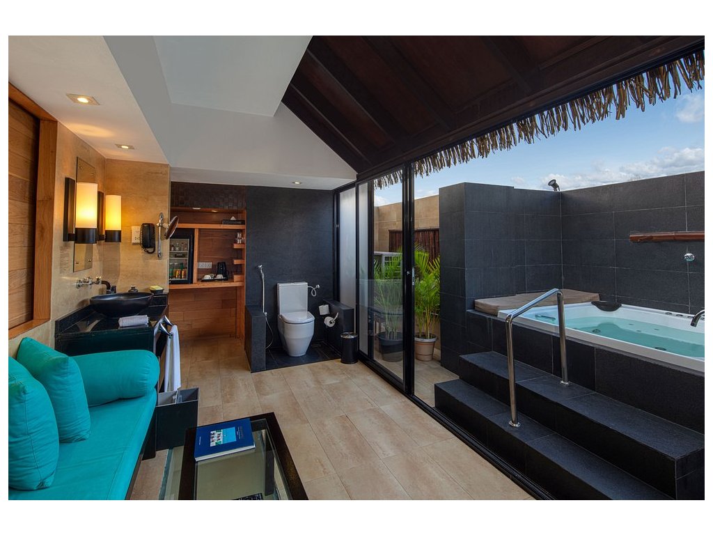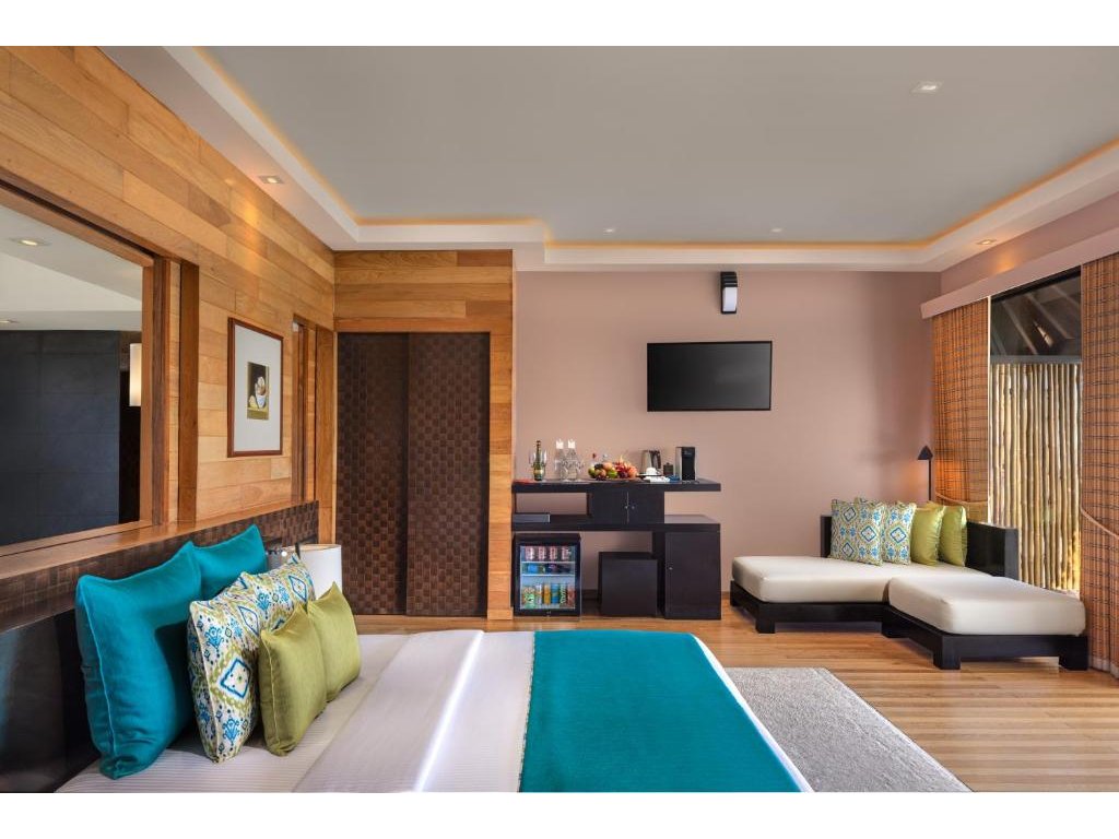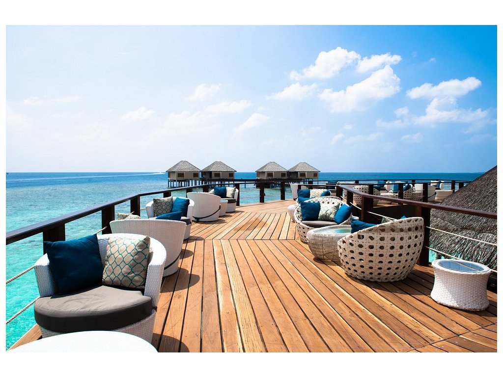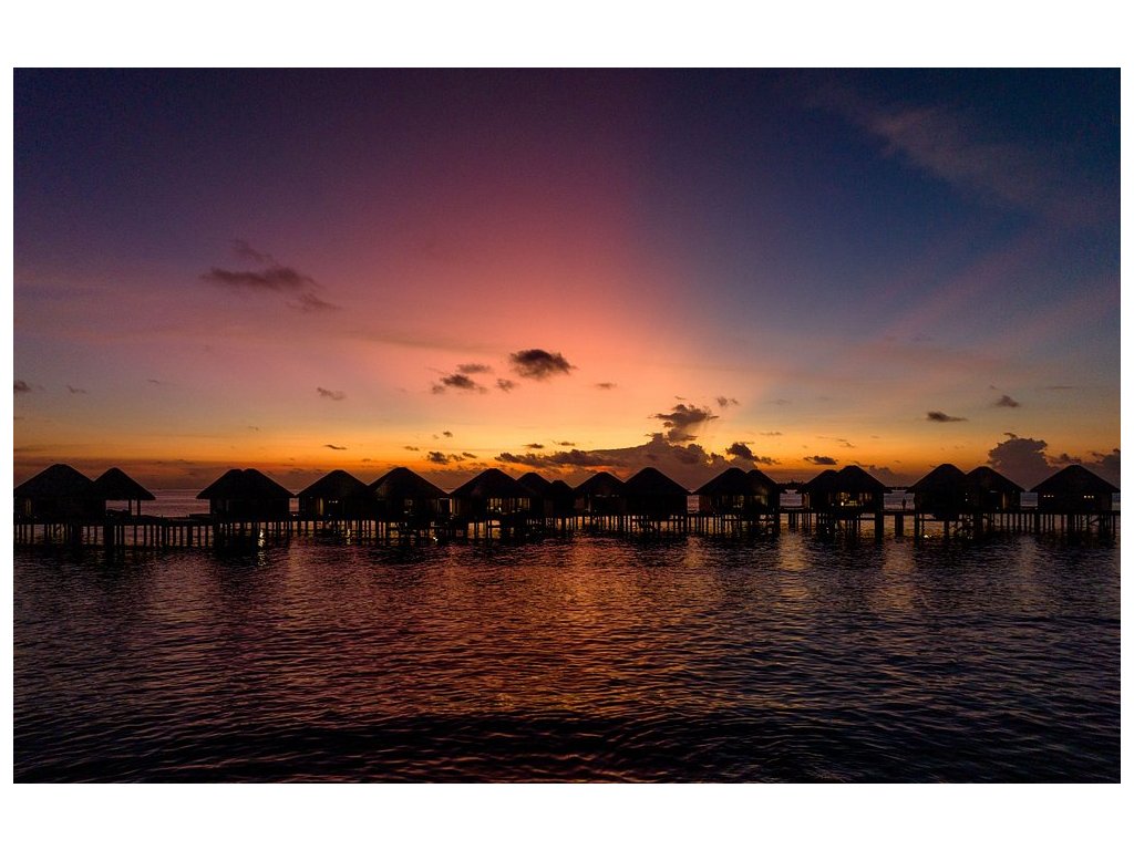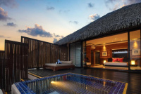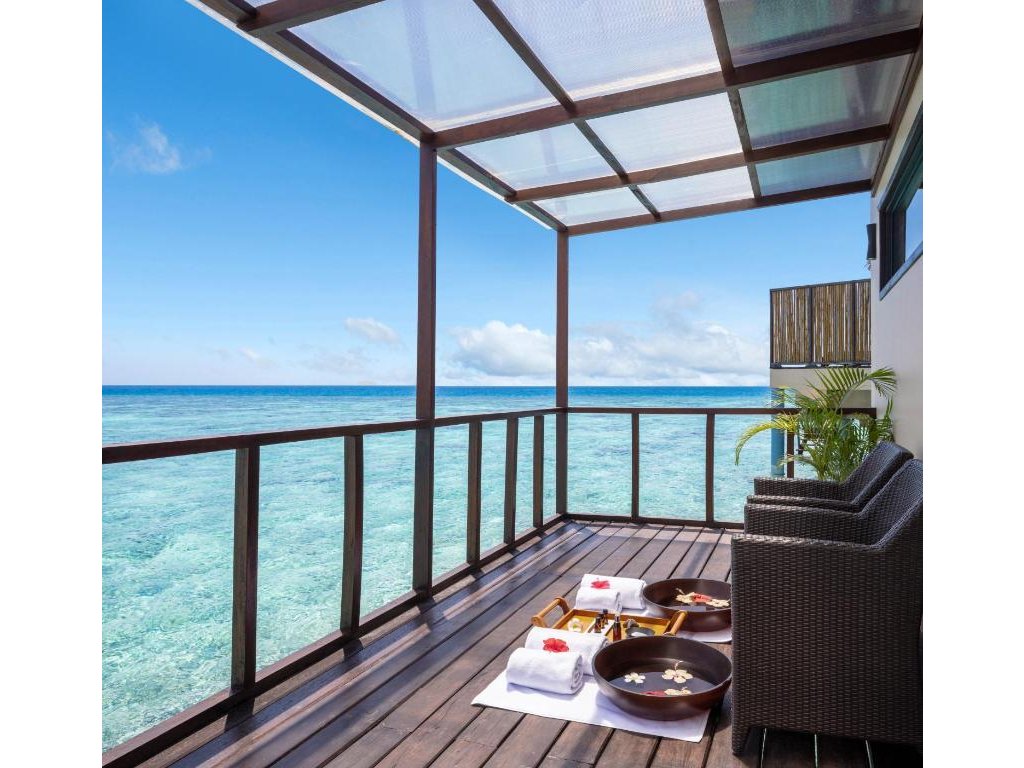 Nadvodní vila s prostornou terasou, soukromou jacuzzi, ložnicí s výhledem na oceán a přímým přístupem do laguny. Vybavena moderním nábytkem, venkovní sprchou a službami osobního komorníka.