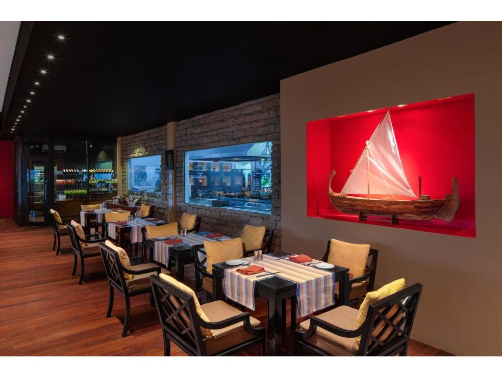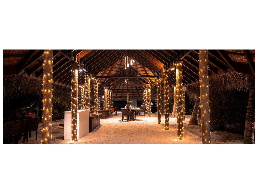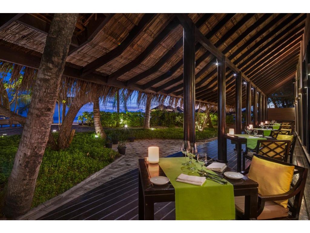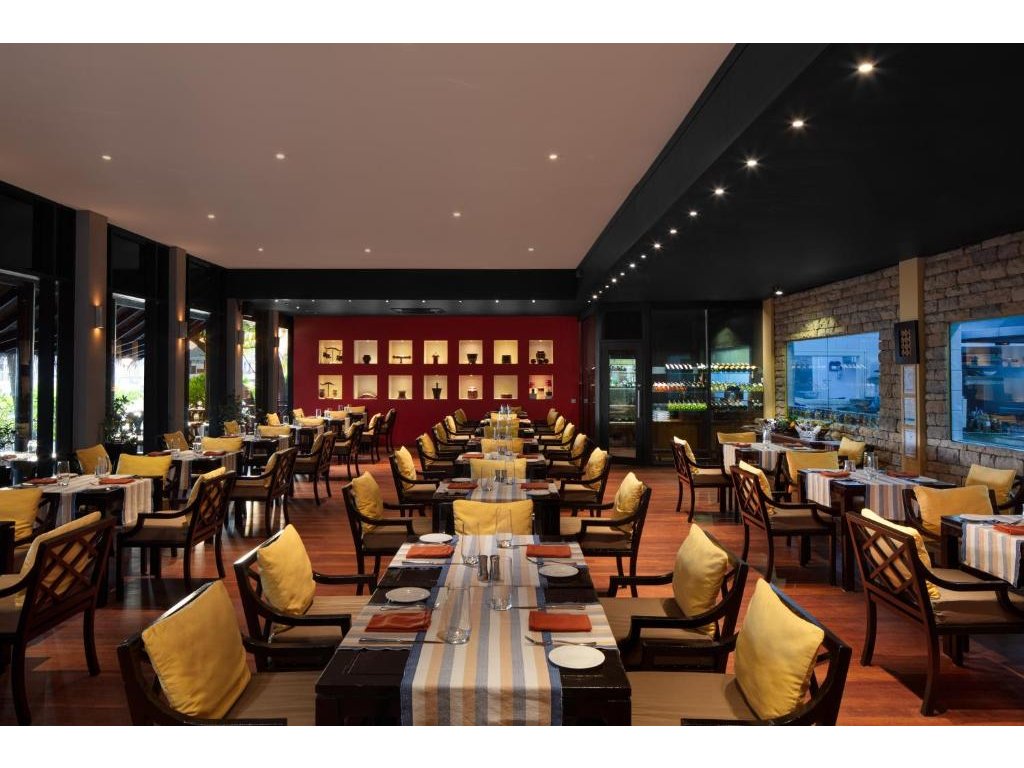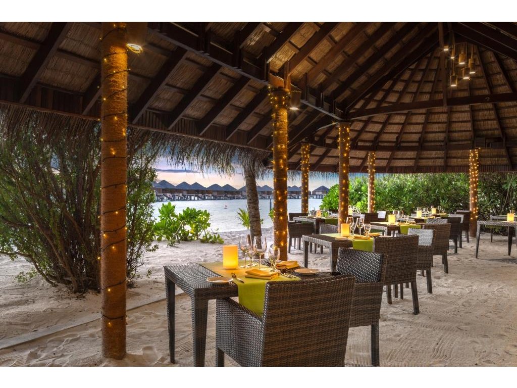 Hlavní restaurace nabízí mezinárodní kuchyni, čerstvé mořské plody a tematické večery. Možnost večeře na pláži nebo v soukromí vily.