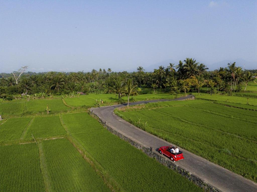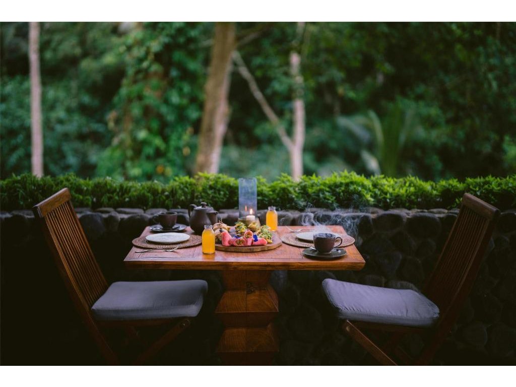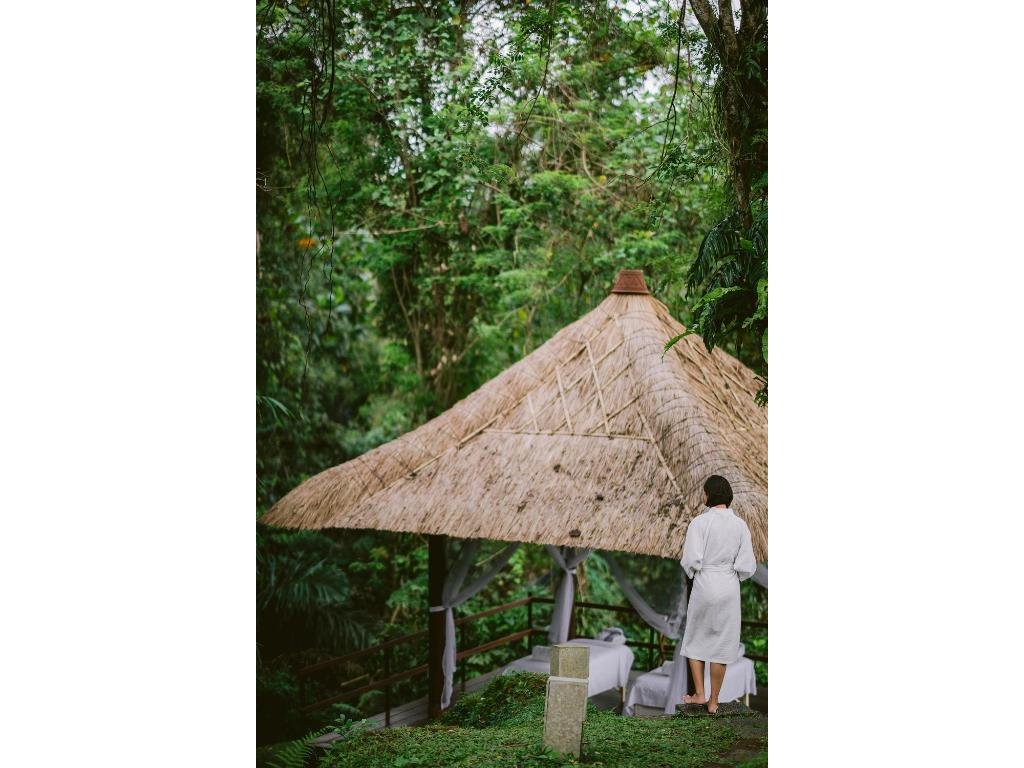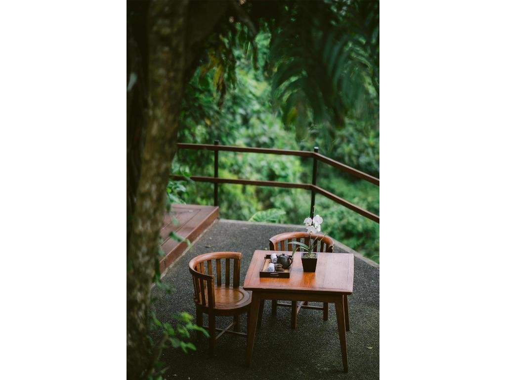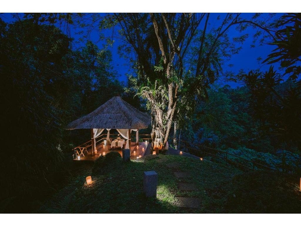 Severně od Ubudu (Payangan), v kopcích nad údolím Ayung. Příroda, řemeslné dílny, galerie a kavárny v dostupné dojezdové vzdálenosti; centrum Ubudu ~20–30 min autem.
