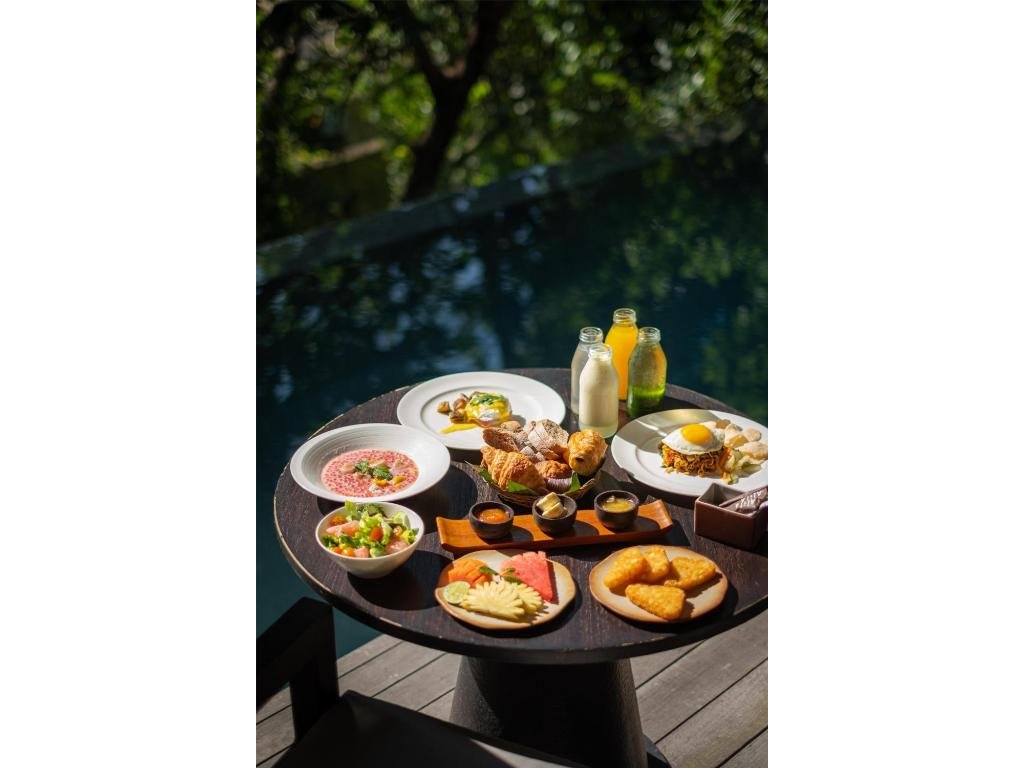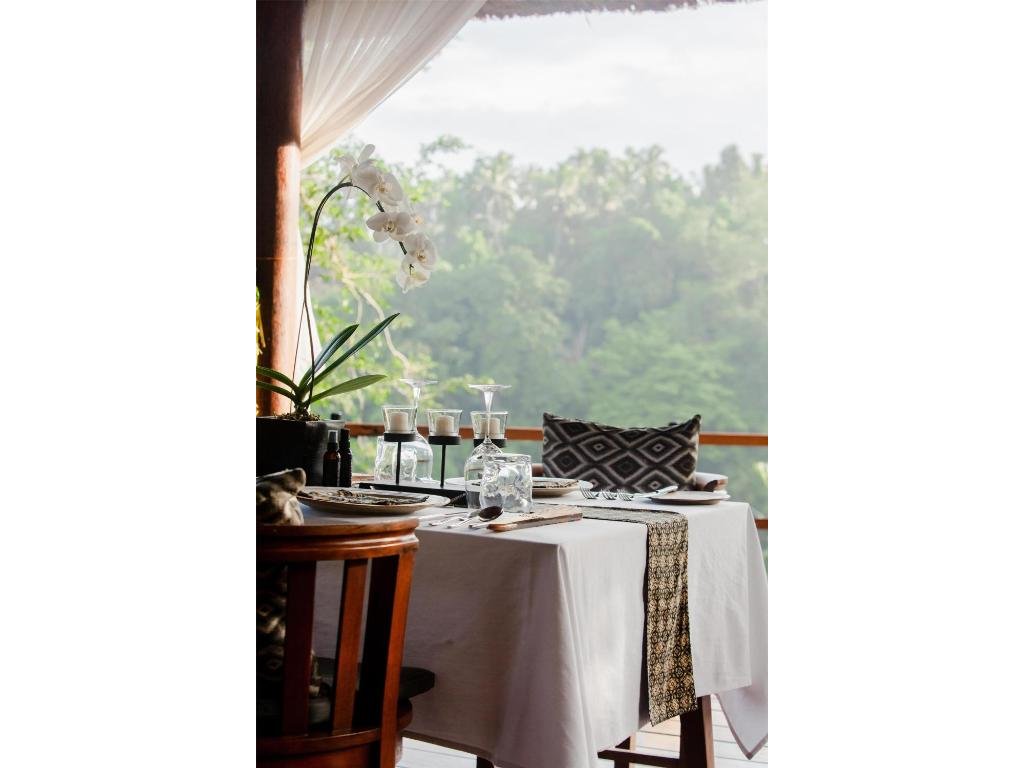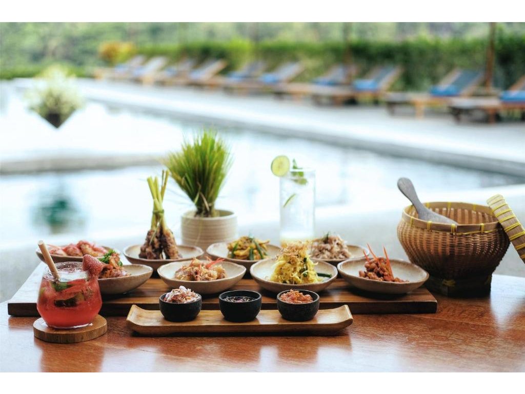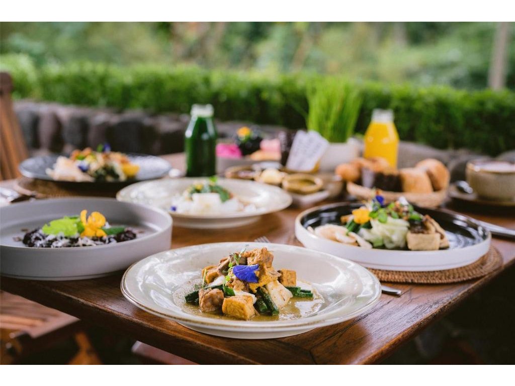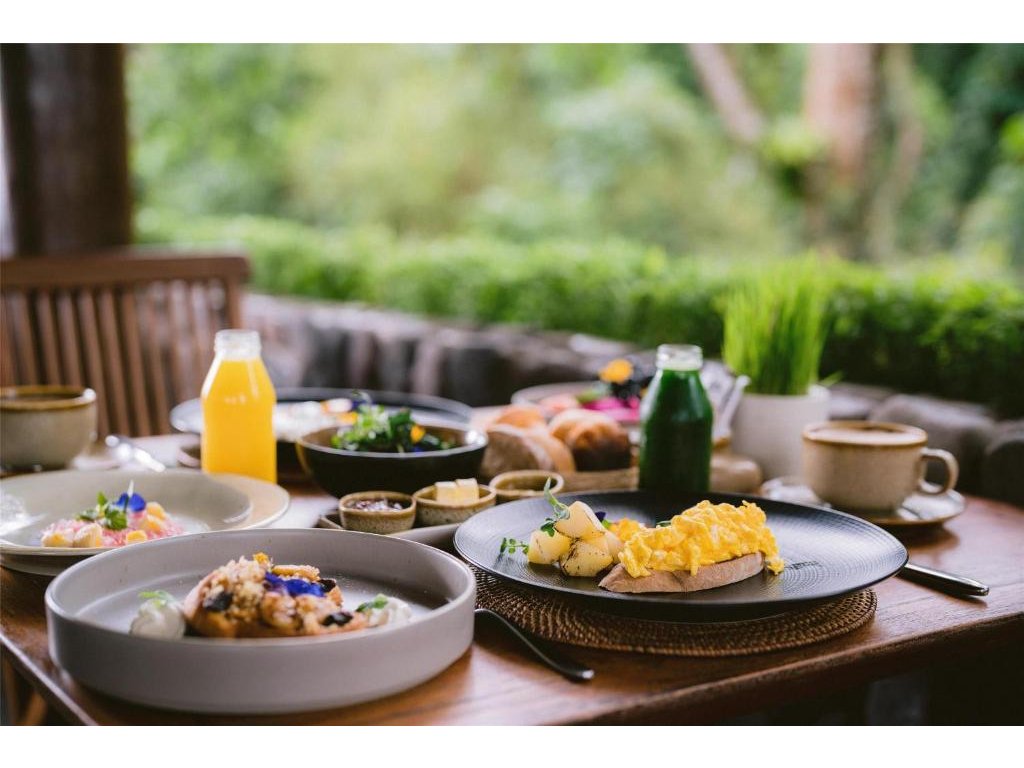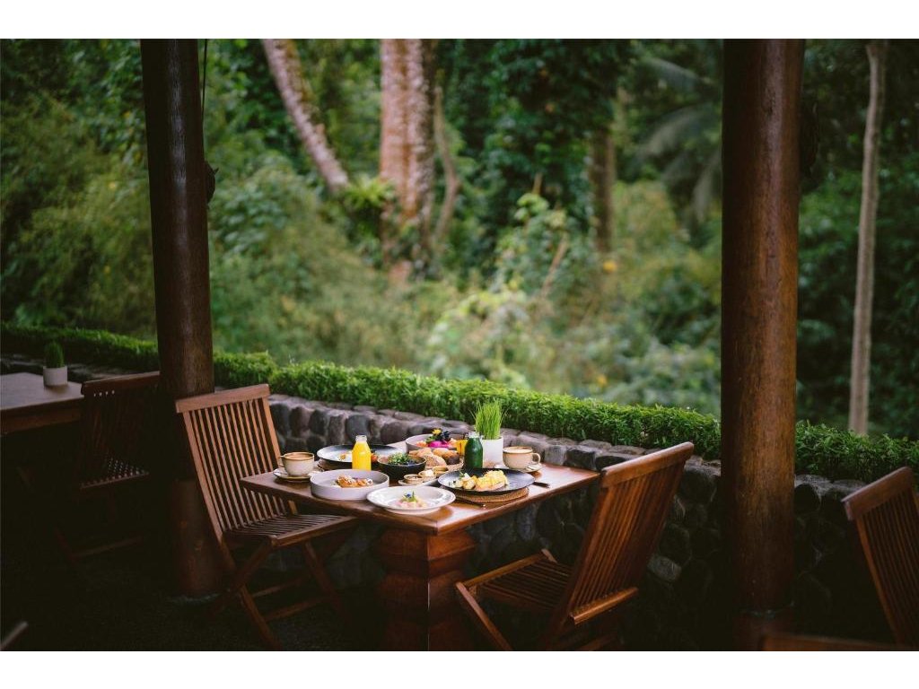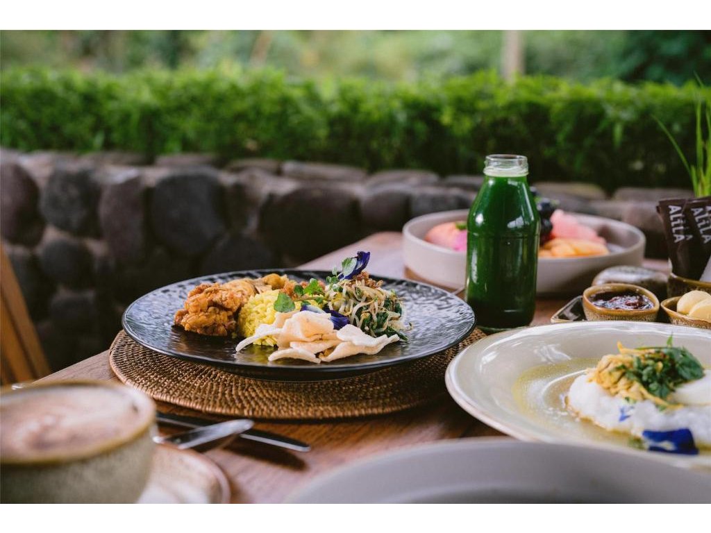 Hotelová restaurace (snídaně/oběd/večeře) s důrazem na sezónní a lokální suroviny, bar u bazénu pro odpolední koktejly. Možnost servírované snídaně s výhledem do džungle.