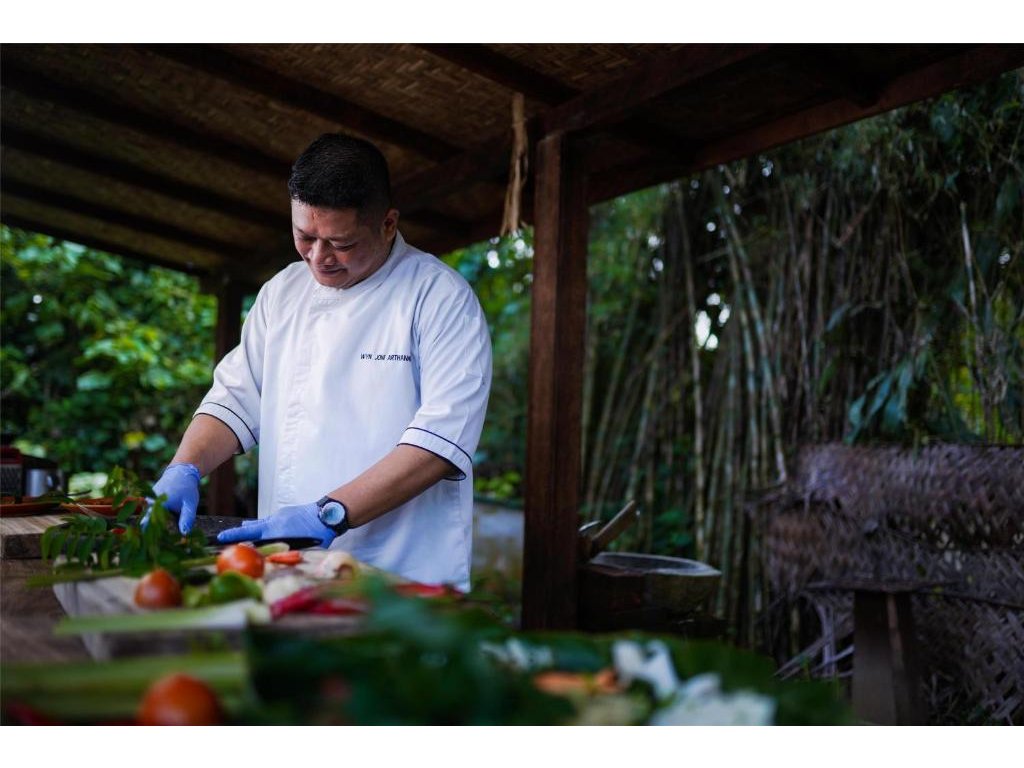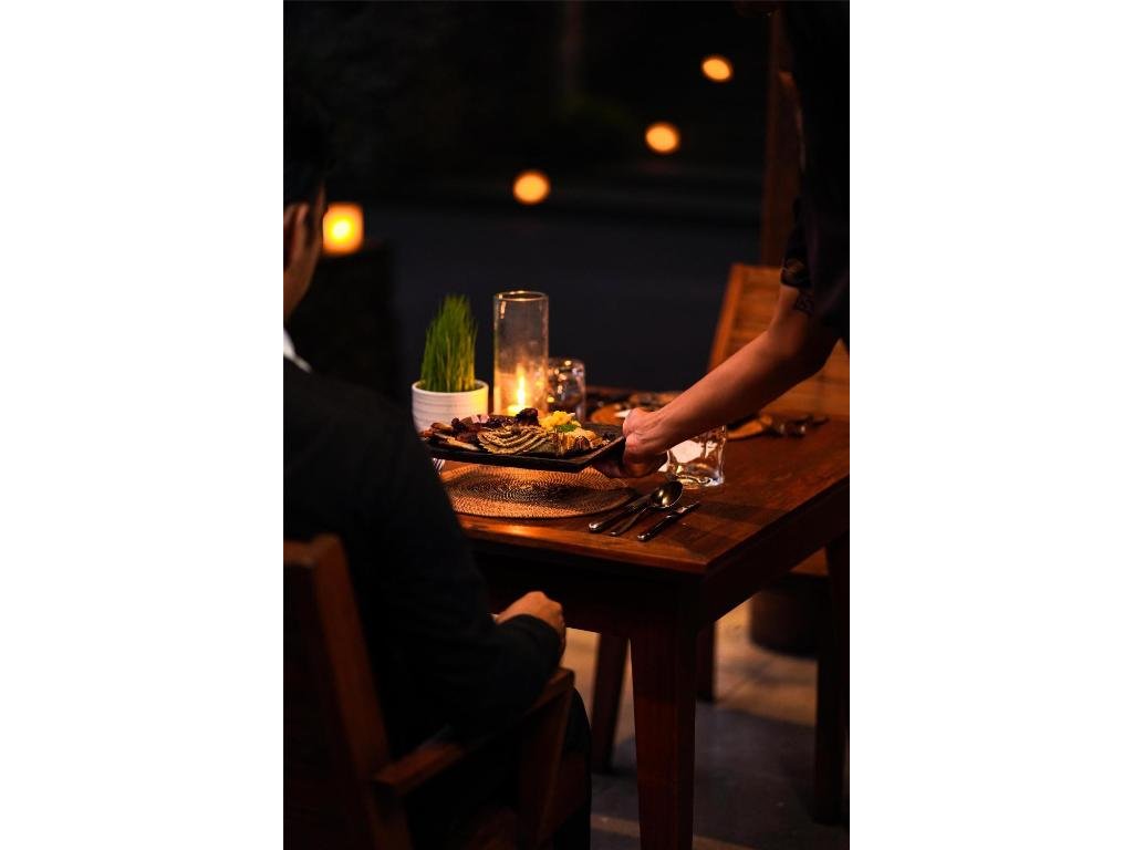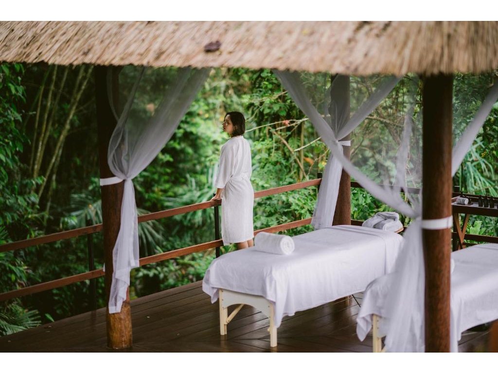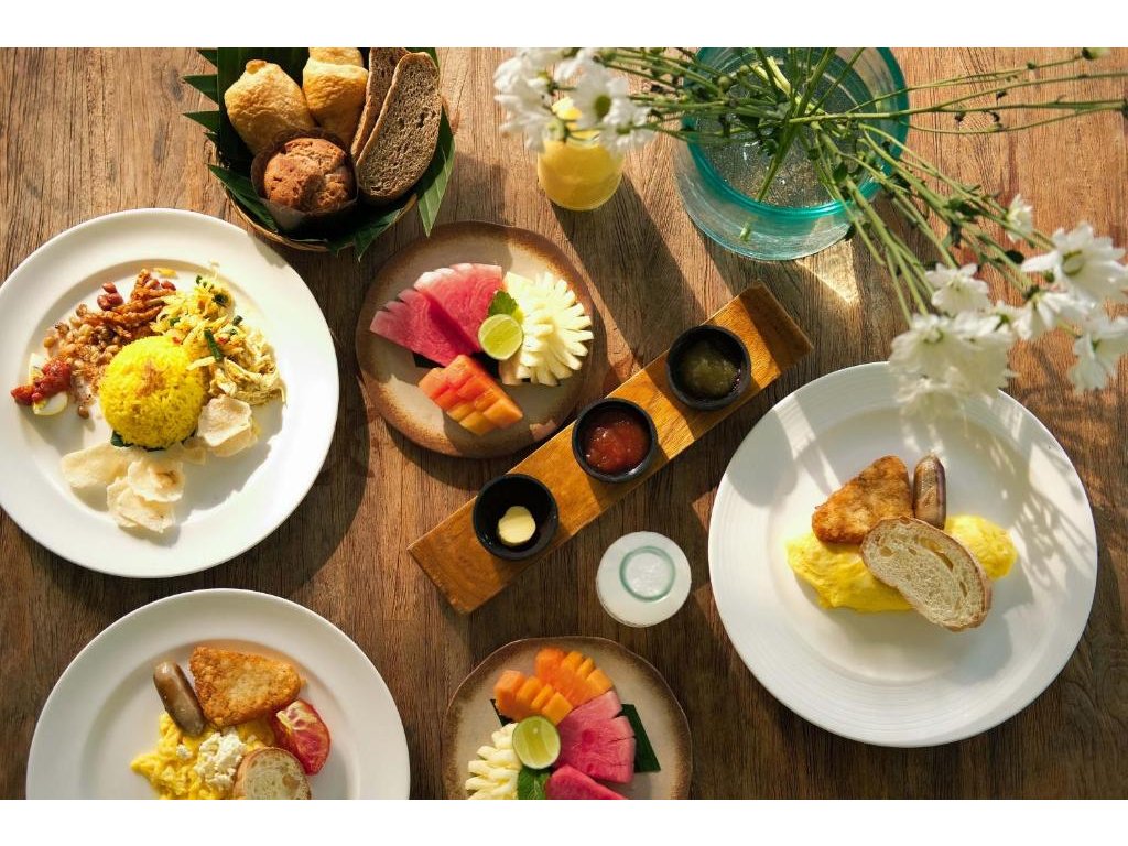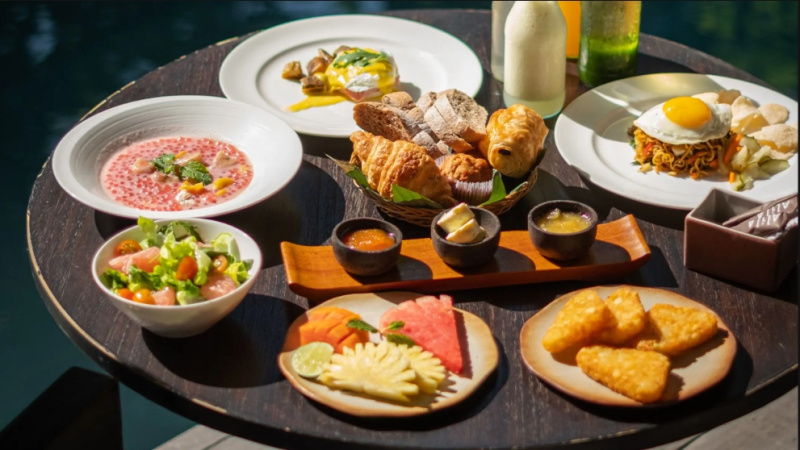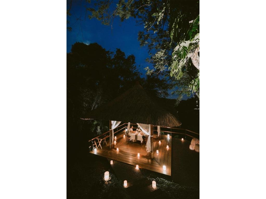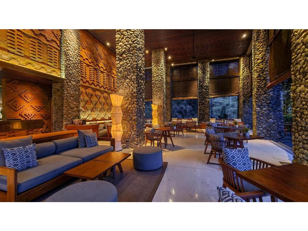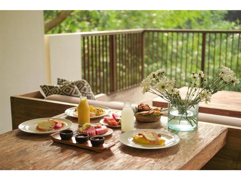 Hotelová restaurace (snídaně/oběd/večeře) s důrazem na sezónní a lokální suroviny, bar u bazénu pro odpolední koktejly. Možnost servírované snídaně s výhledem do džungle.