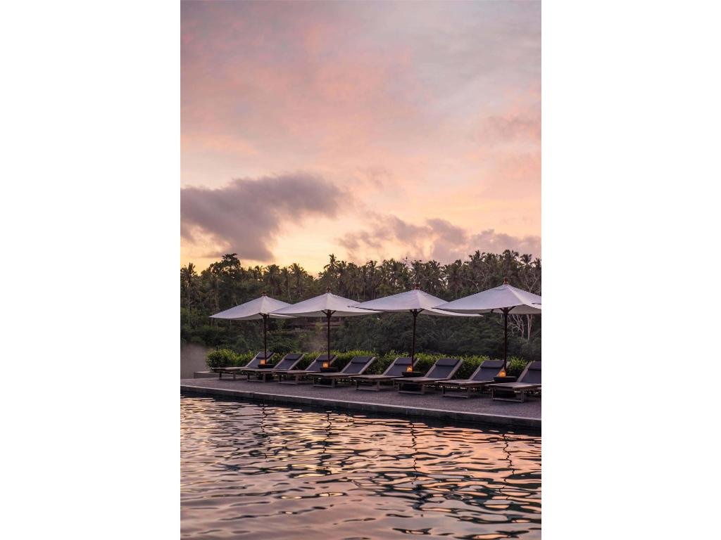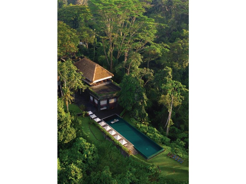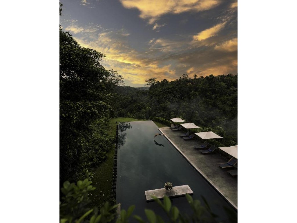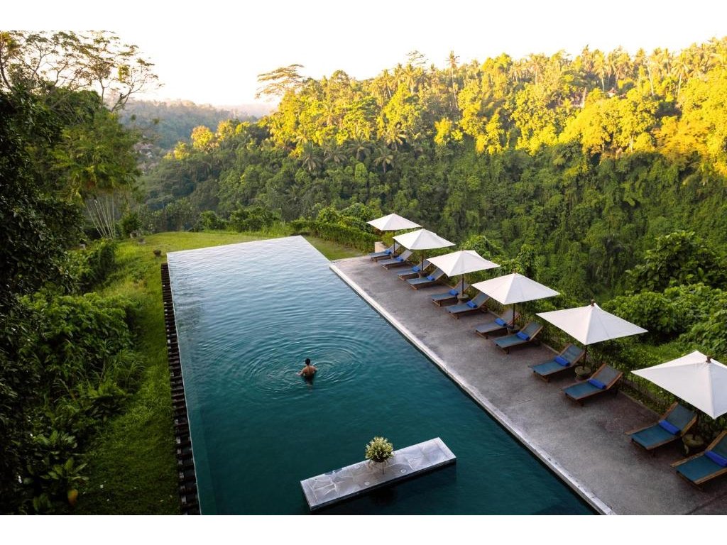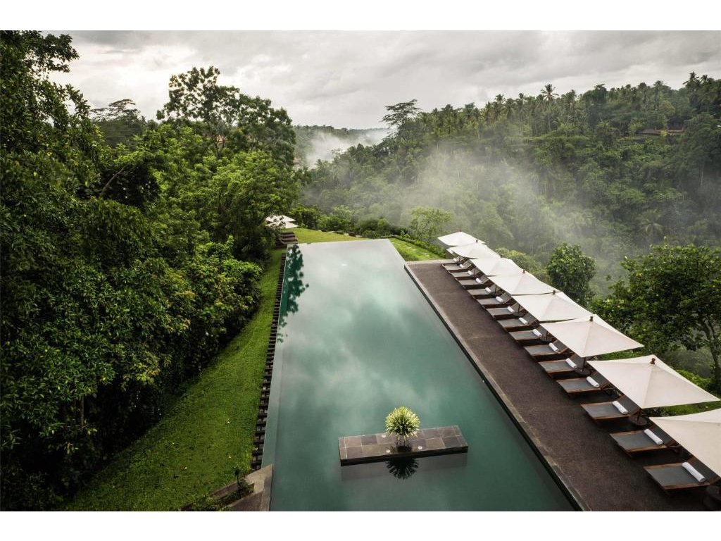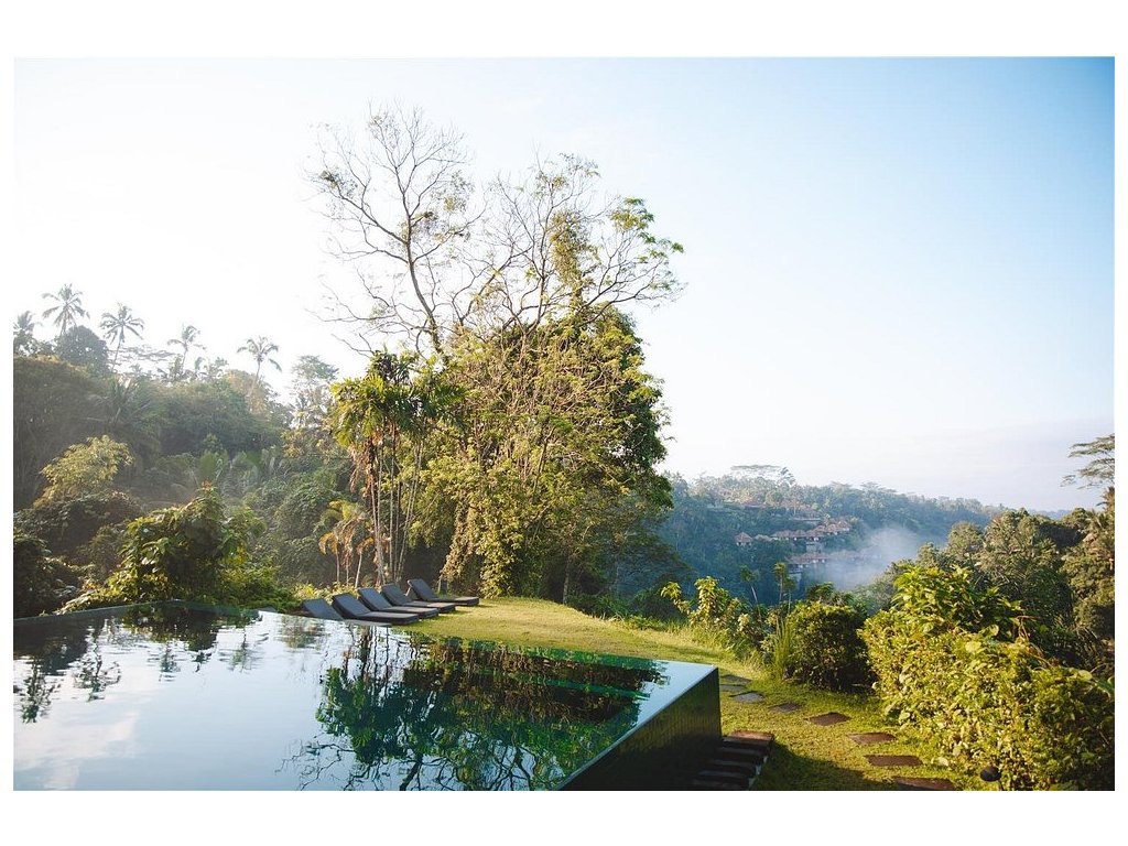 Ikonický designový resort zasazený do svahů nad údolím řeky Ayung severně od Ubudu. Džungle na dosah, klid a estetika „tropického minimalismu”. Centrální nekonečný bazén zavěšený nad údolím patří mezi nejfotografovanější na Bali. Ideální pro páry, milovníky přírody a hosty, kteří hledají klidné útočiště s přístupem k umění a gastronomii Ubudu.