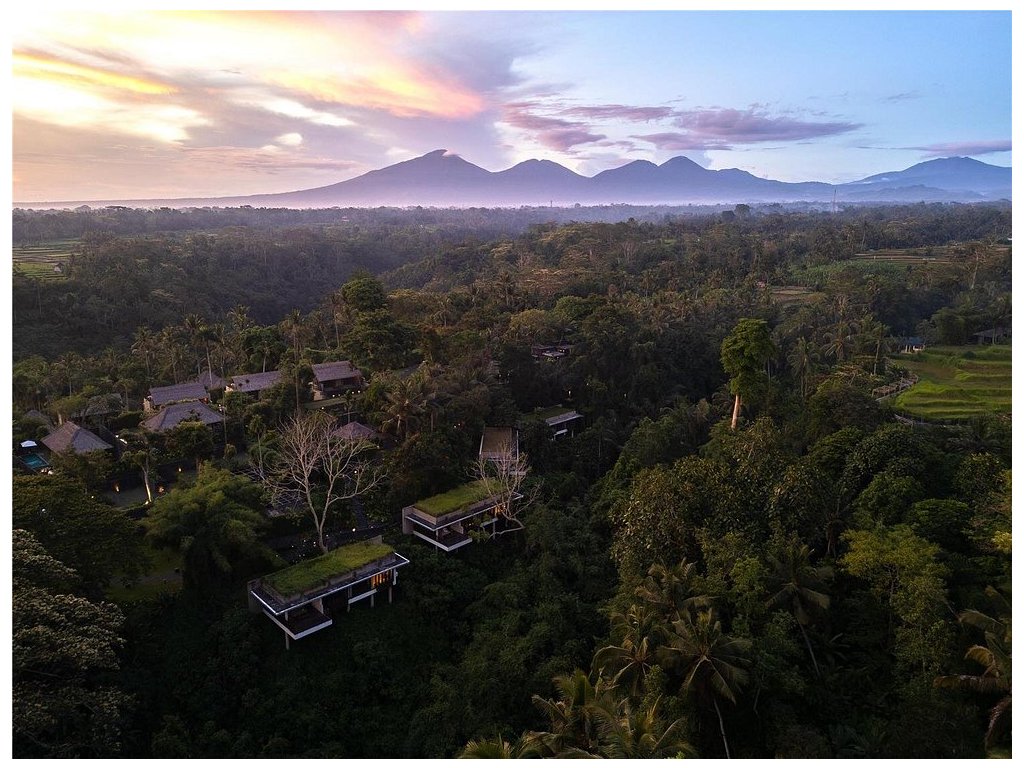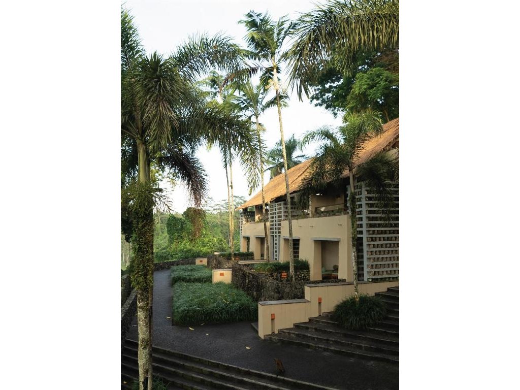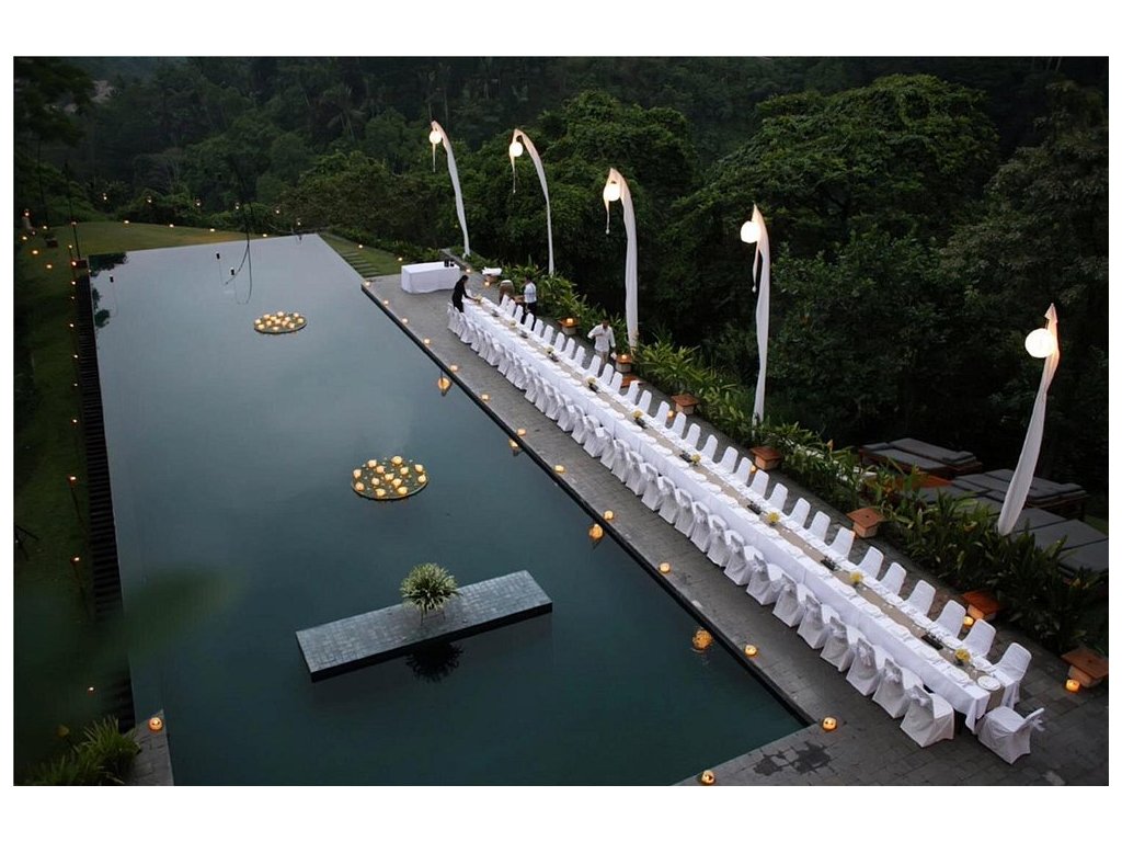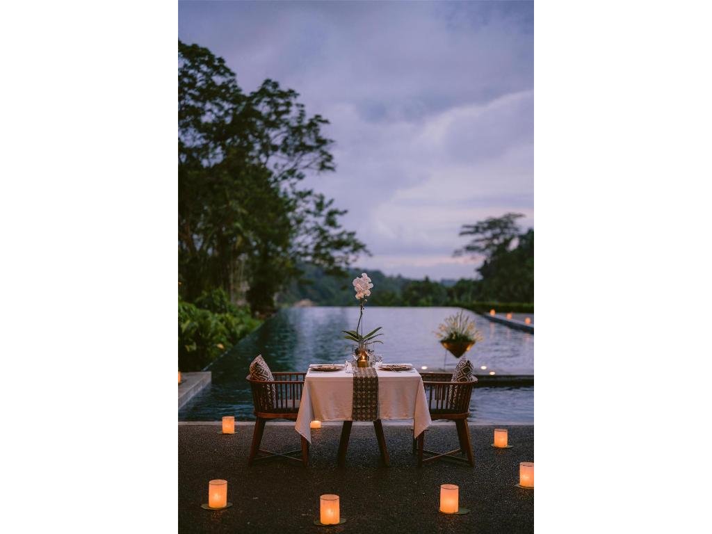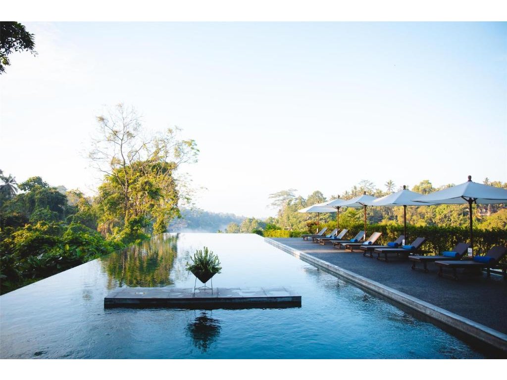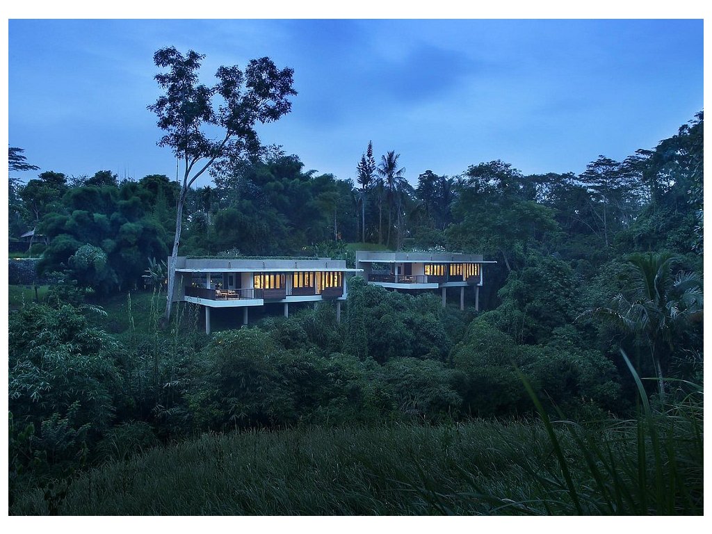 Ikonický designový resort zasazený do svahů nad údolím řeky Ayung severně od Ubudu. Džungle na dosah, klid a estetika „tropického minimalismu”. Centrální nekonečný bazén zavěšený nad údolím patří mezi nejfotografovanější na Bali. Ideální pro páry, milovníky přírody a hosty, kteří hledají klidné útočiště s přístupem k umění a gastronomii Ubudu.