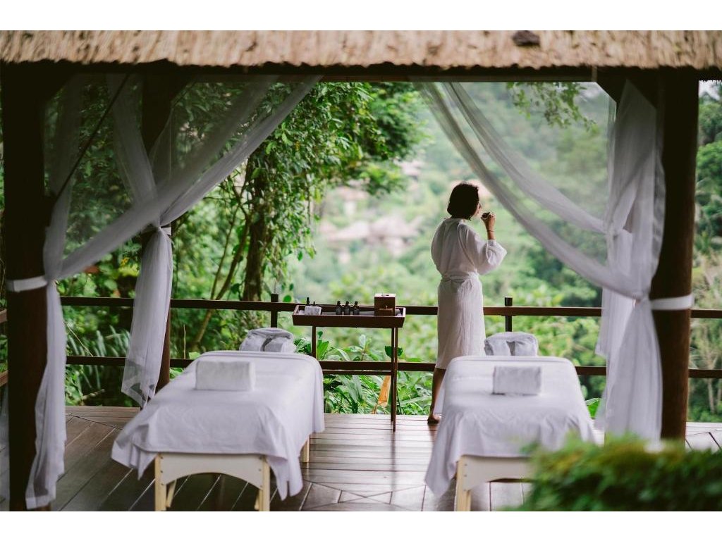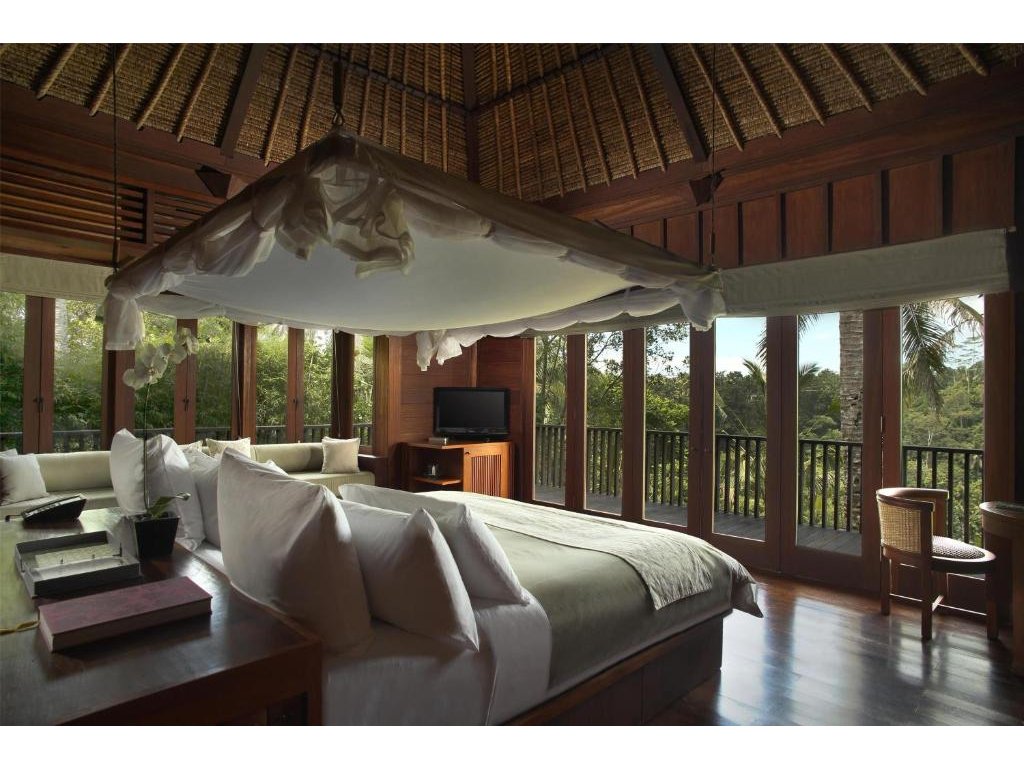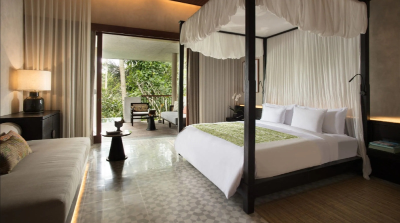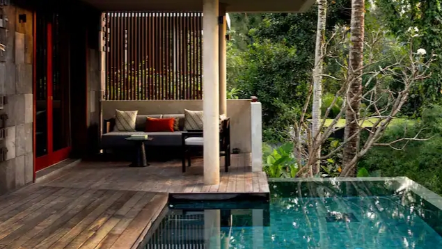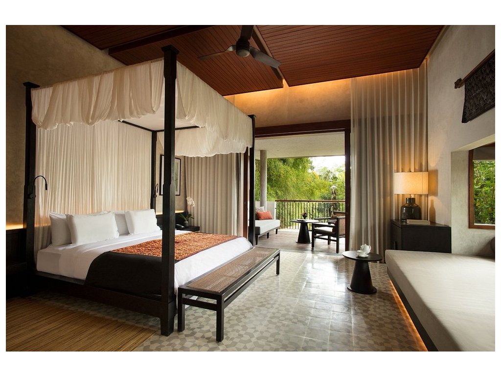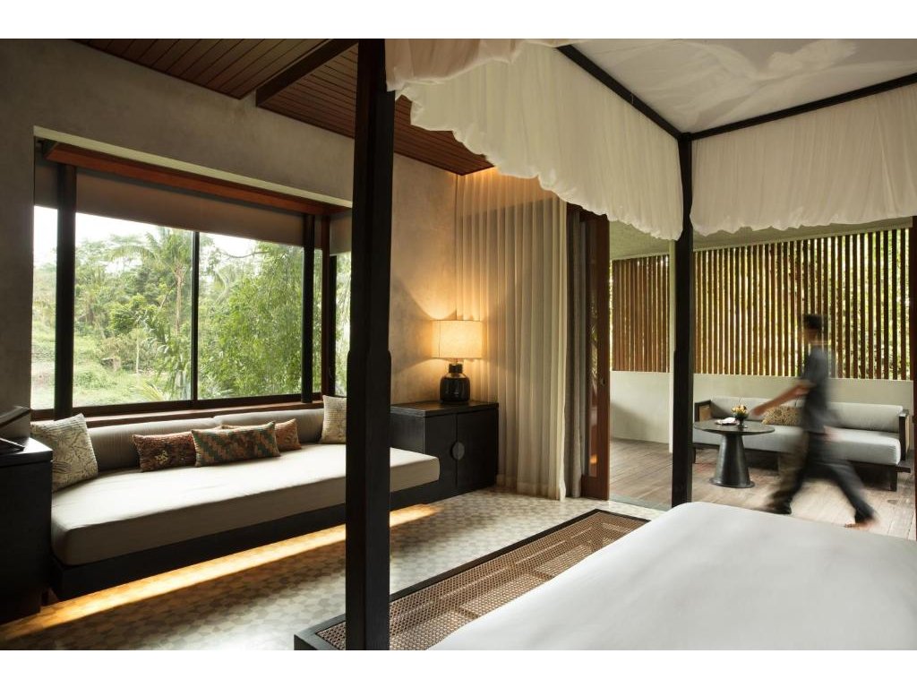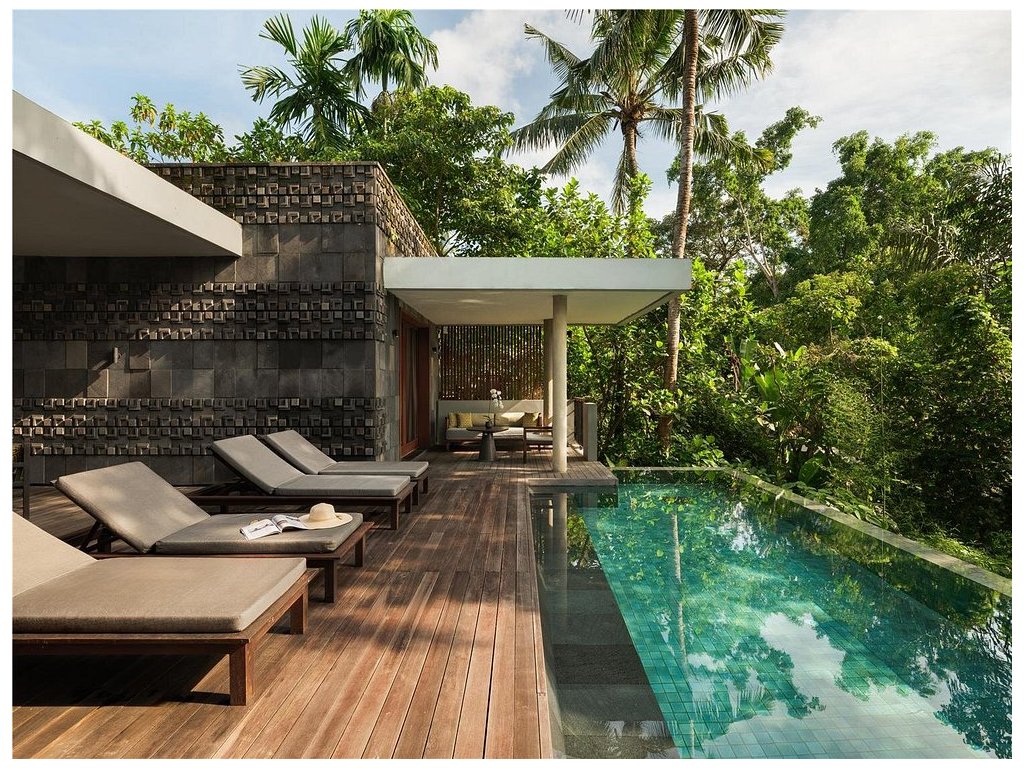 Ikonický designový resort zasazený do svahů nad údolím řeky Ayung severně od Ubudu. Džungle na dosah, klid a estetika „tropického minimalismu”. Centrální nekonečný bazén zavěšený nad údolím patří mezi nejfotografovanější na Bali. Ideální pro páry, milovníky přírody a hosty, kteří hledají klidné útočiště s přístupem k umění a gastronomii Ubudu.