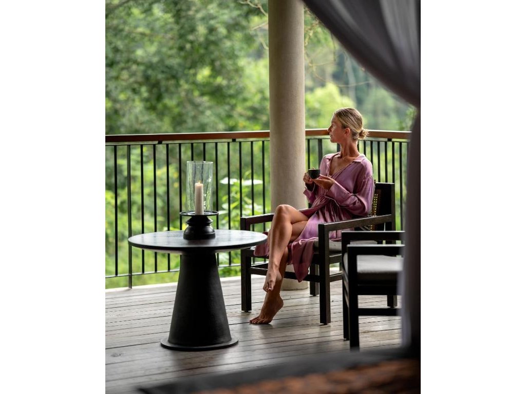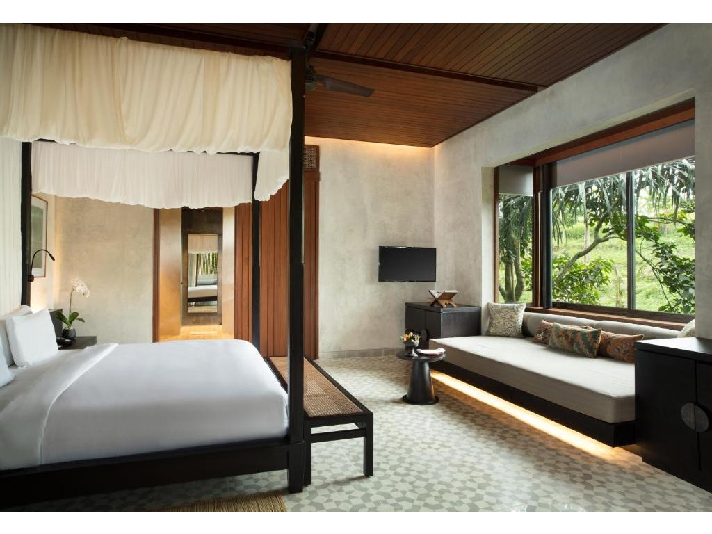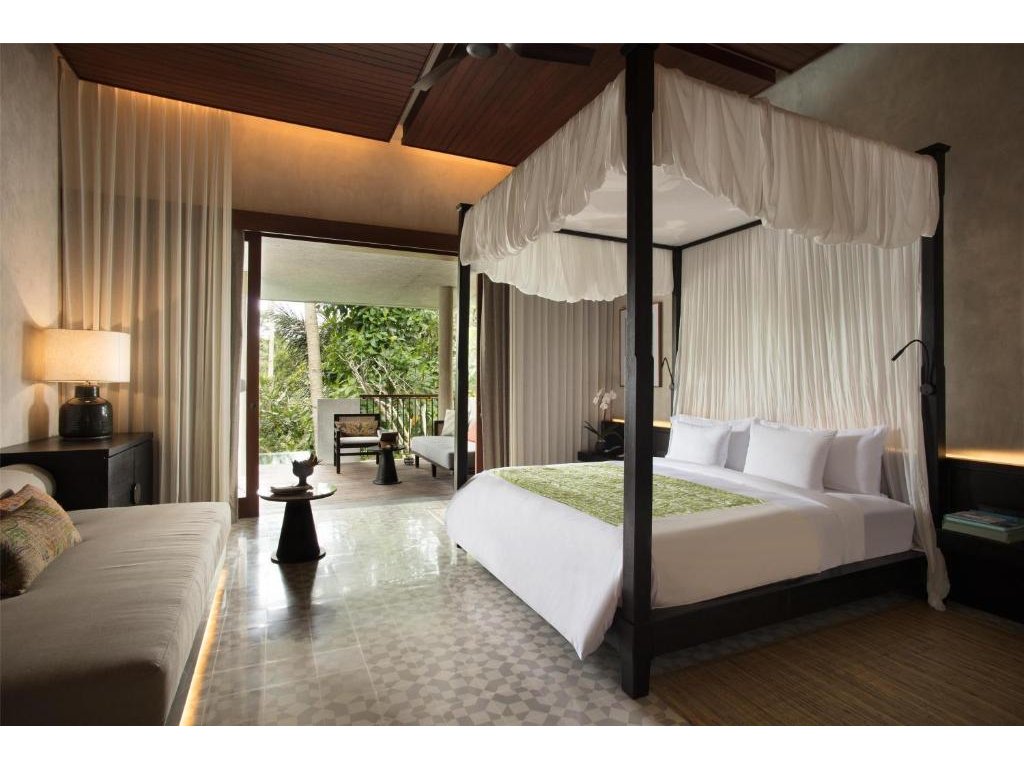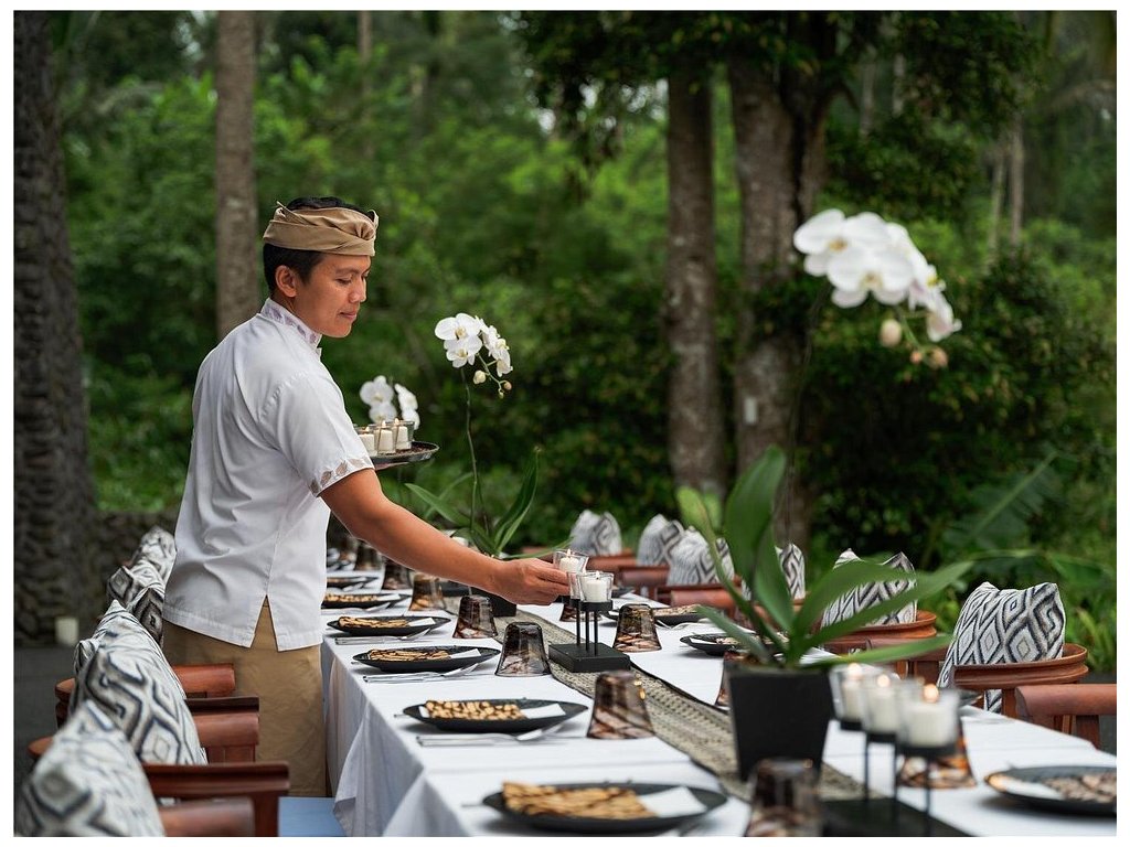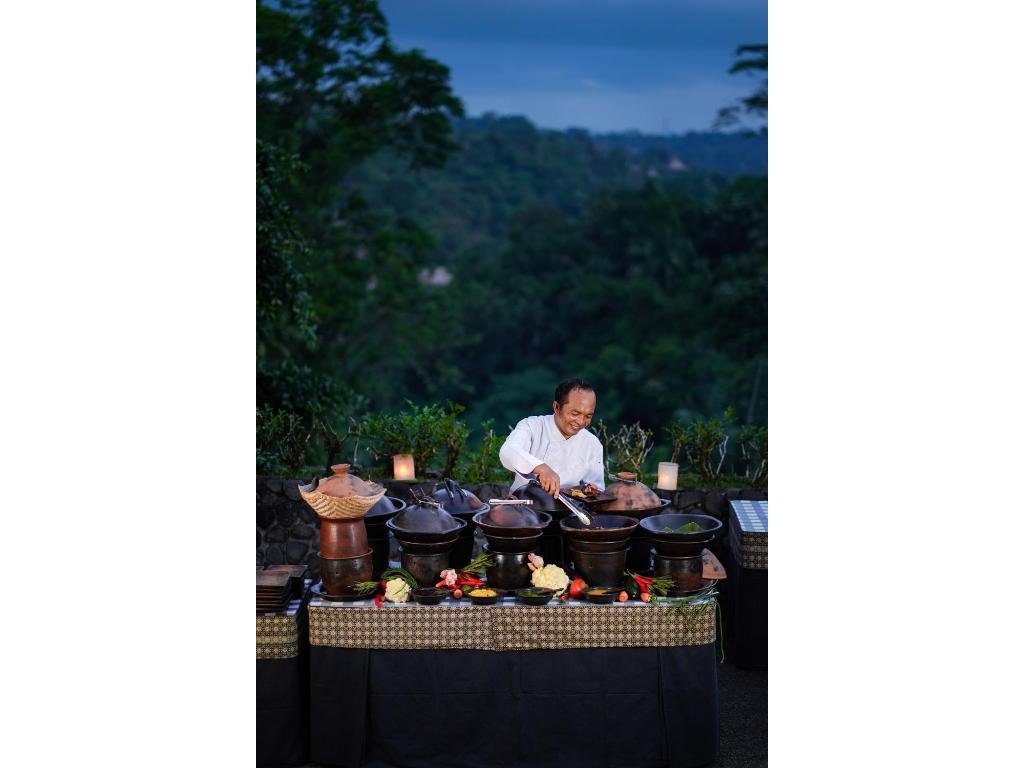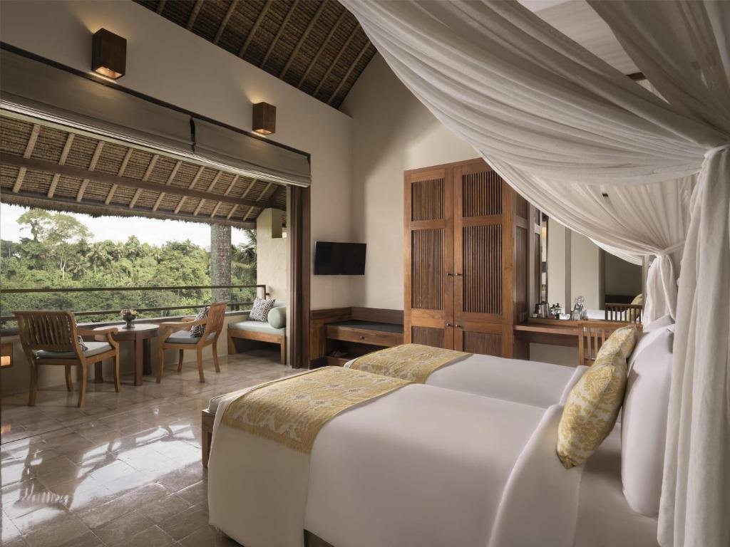 Ikonický designový resort zasazený do svahů nad údolím řeky Ayung severně od Ubudu. Džungle na dosah, klid a estetika „tropického minimalismu”. Centrální nekonečný bazén zavěšený nad údolím patří mezi nejfotografovanější na Bali. Ideální pro páry, milovníky přírody a hosty, kteří hledají klidné útočiště s přístupem k umění a gastronomii Ubudu.