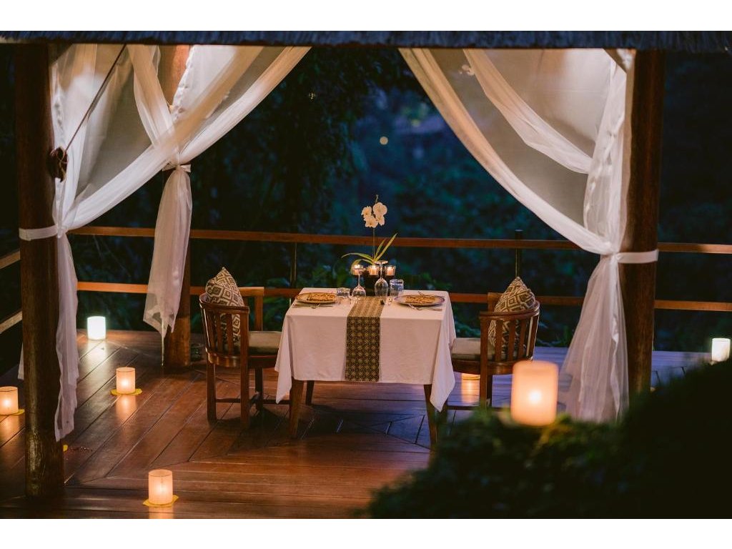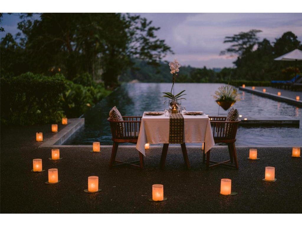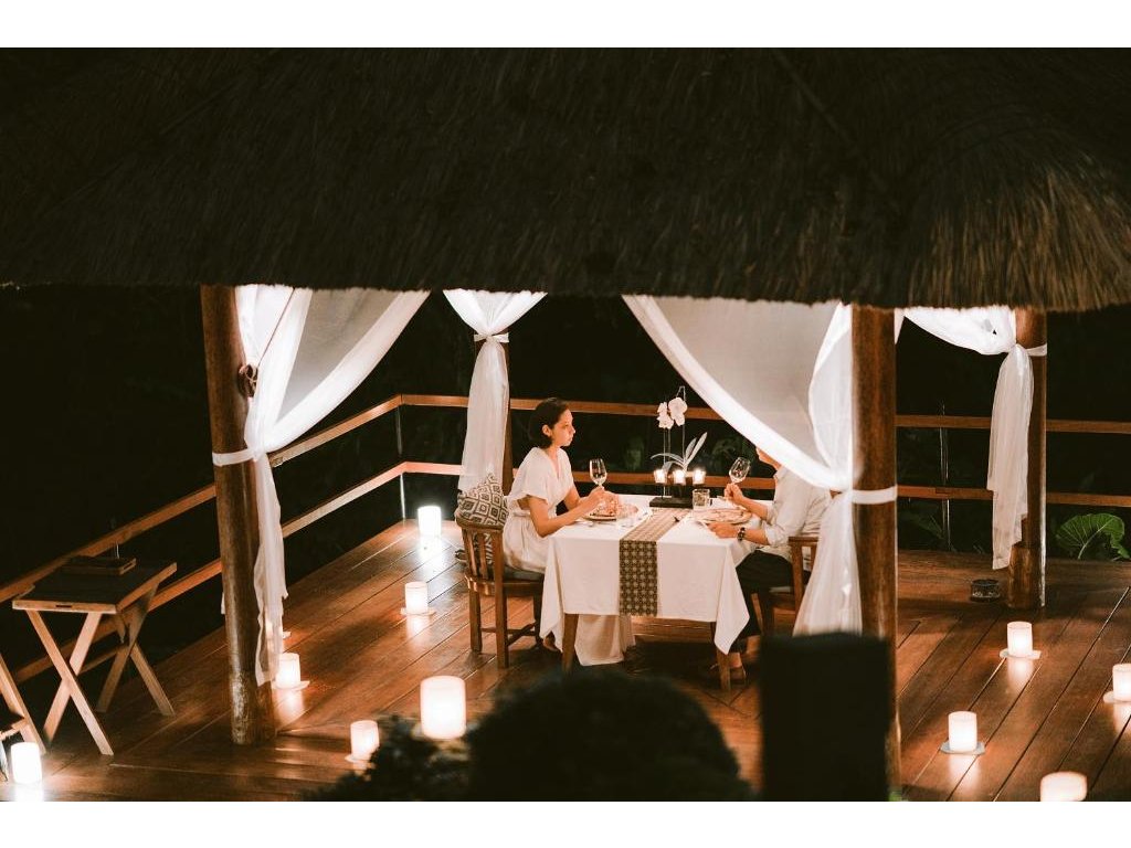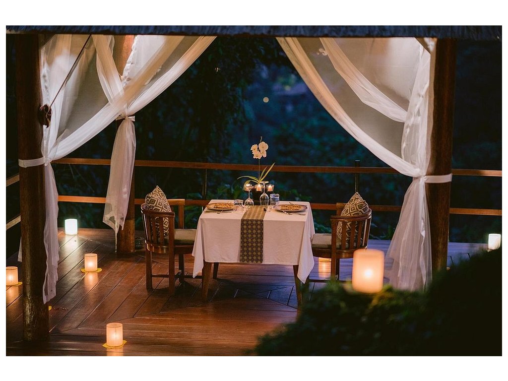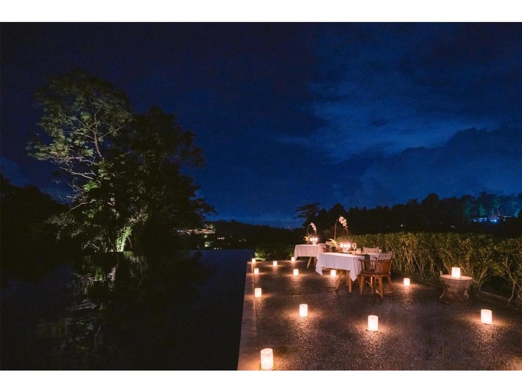 Západy slunce u infinity bazénu, večerní spa rituály a privátní večeře v přírodě. Vily nabízejí soukromé terasy, některé také vlastní bazén – ideální pro honeymoon.