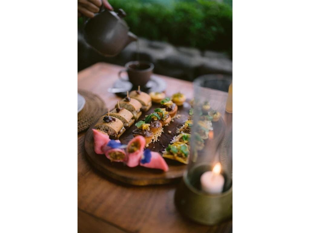 Ikonický infinity pool s výhledem do údolí, klidné spa pavilony, denní aktivity (jóga, procházky), restaurace s lokální kuchyní a bar u bazénu. Room-service dle hotelových hodin, možnost privátních večeří.
