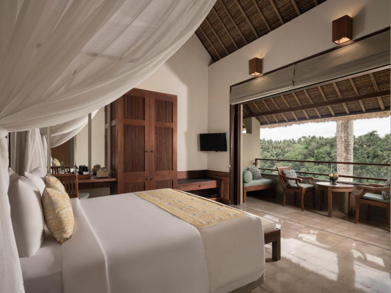 cca 28–32 m² | Útulný pokoj v hlavní části resortu; balkon/terasa s výhledem do zeleně, koupelna se sprchou. Ideální základna pro objevování Ubudu.