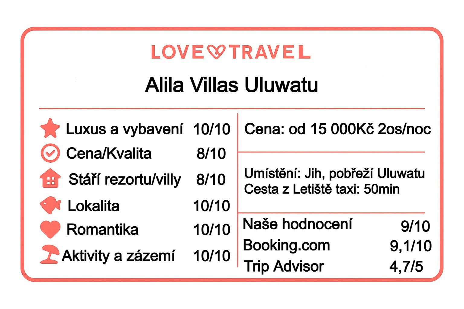 Prémiový resort se špičkovým servisem a velkorysým prostorem vil. Poměr cena/výkon: excelentní pro milovníky designu, soukromí a výjimečných výhledů; vhodné pro honeymoon a speciální příležitosti, méně pro cestovatele s omezeným rozpočtem.