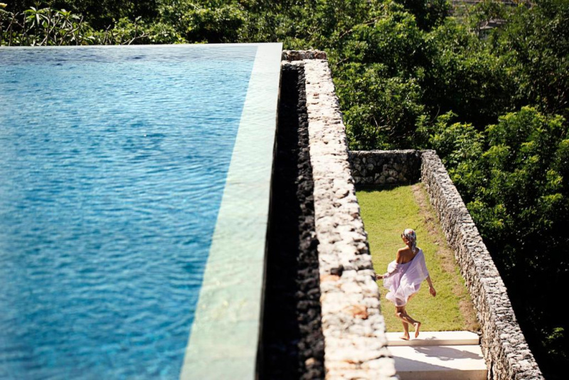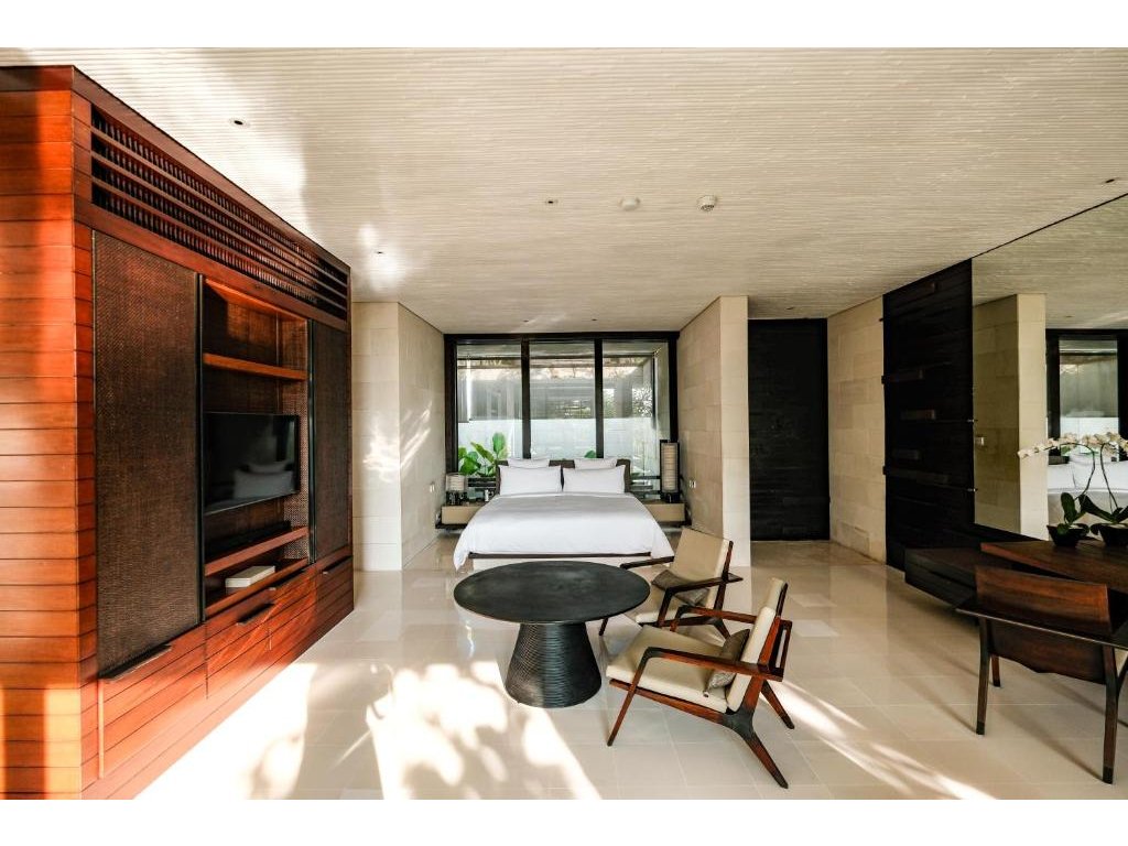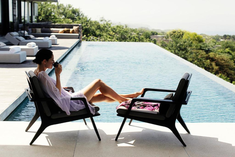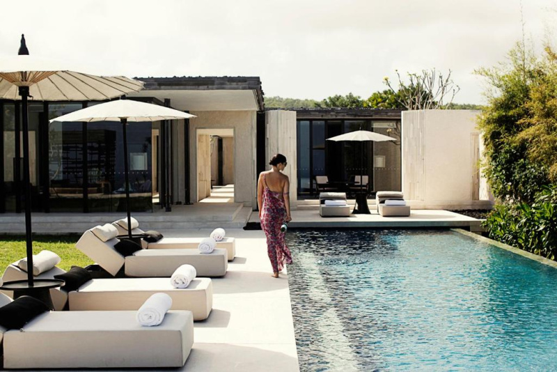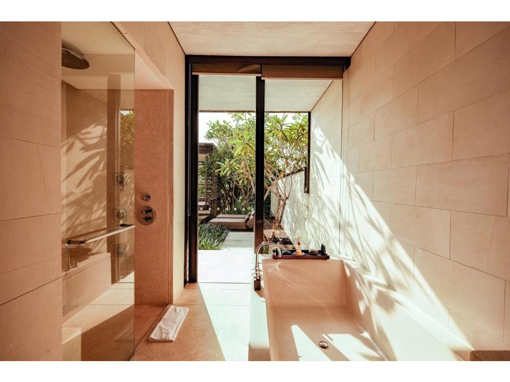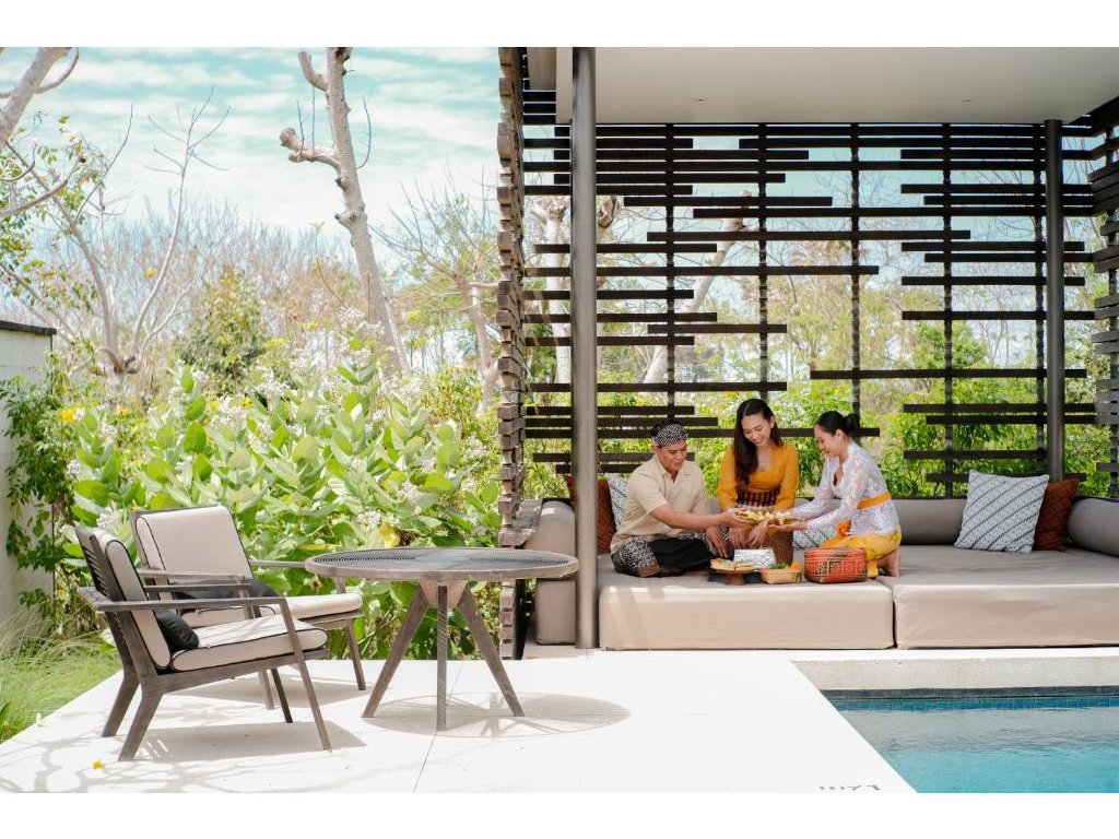 Rozsáhlé vily s privátním bazénem, otevřeným pavilonem/cabanou a terasou s lehátky. Butler dle kategorie, nekonečný hlavní bazén na hraně útesu, Spa Alila, fitness, jóga. Důraz na soukromí a tichý, kultivovaný servis.