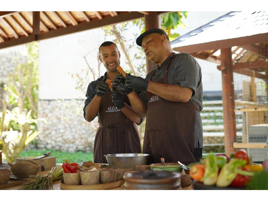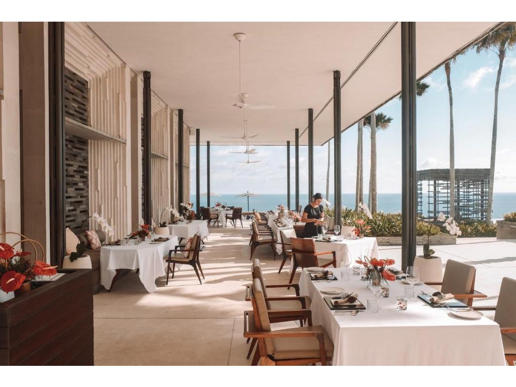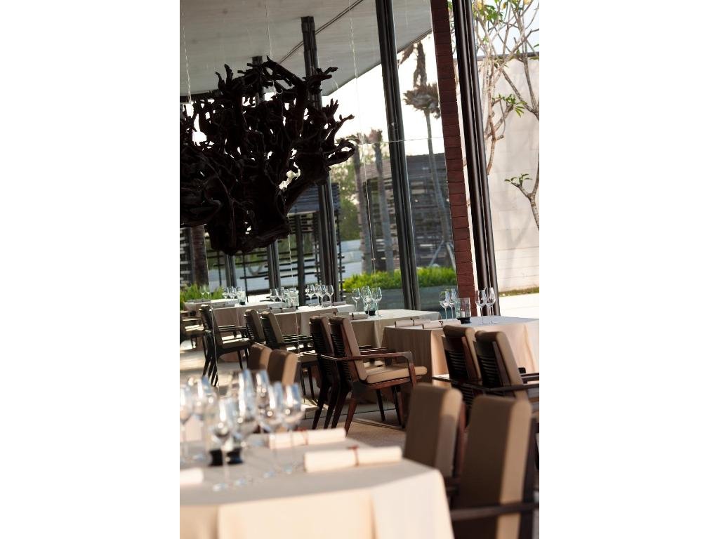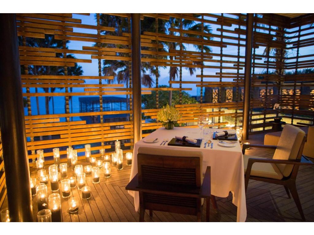 Dvojice signaturních konceptů: CIRE (moderní středomořská & contemporary kuchyně, snídaně à la carte) a The Warung (autentická indonéská a balijská kuchyně). Sunset Cabana Bar na koktejly při západu slunce. Možnost privátních večeří v pavilonu vily.