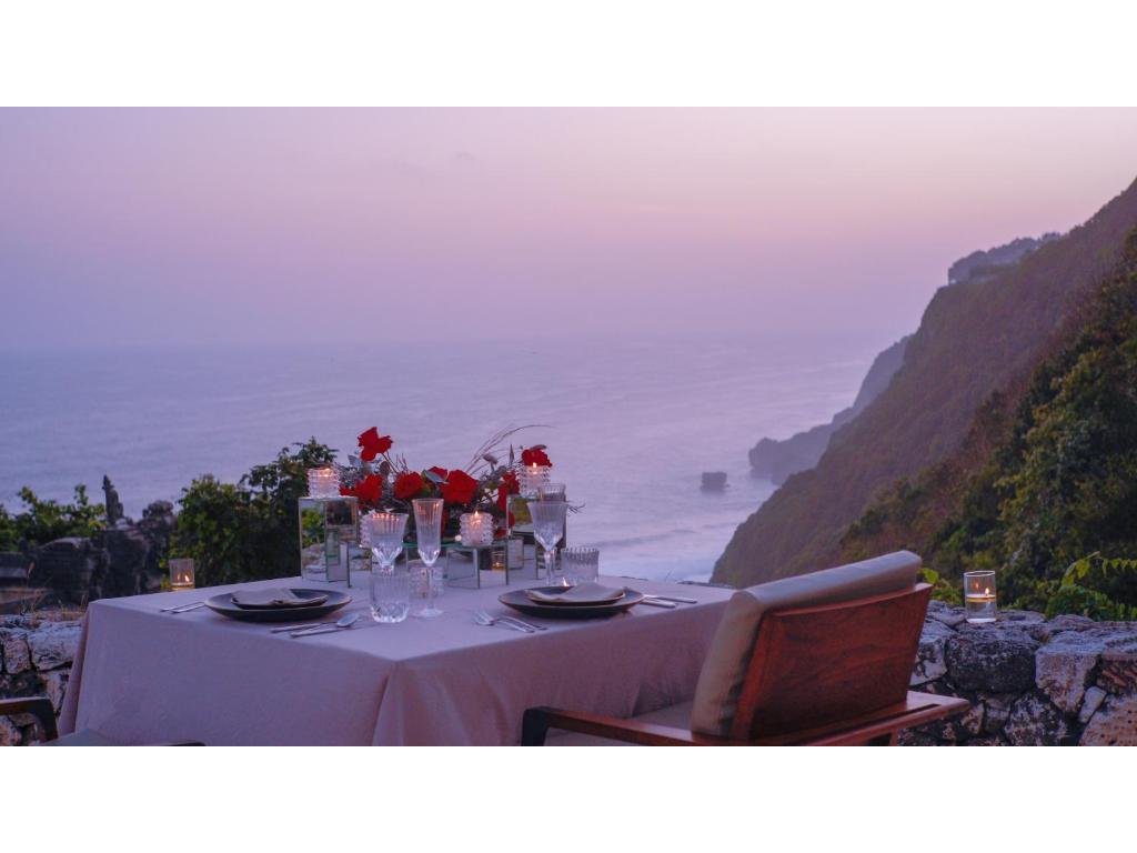 Ikonický cliffside resort na Bukit Peninsula (Uluwatu) s panoramatickými výhledy na Indický oceán. Architektura světové úrovně, všechny vily s privátním bazénem, pavilonem a rozlehlou terasou. Důraz na design, soukromí a dokonalý servis, ideální pro páry, honeymoon i náročné cestovatele hledající výjimečný zážitek u oceánu.