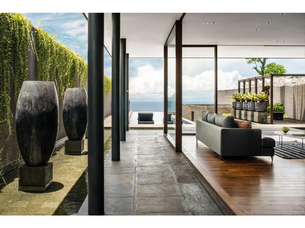 cca 2 000 m² | Dvě ložnice s king bed, velký privátní bazén a rozsáhlé exteriérové terasy na hraně útesu. Obytné a jídelní zóny, butler servis a výrazná míra soukromí.