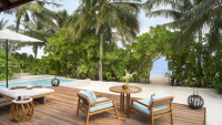 Vylepšená verze Over Water Vily s výhodnějším umístěním v rámci resortu a vyšším stupněm soukromí. Moderní koupelna, terasa s lehátky a přímý vstup do vody.