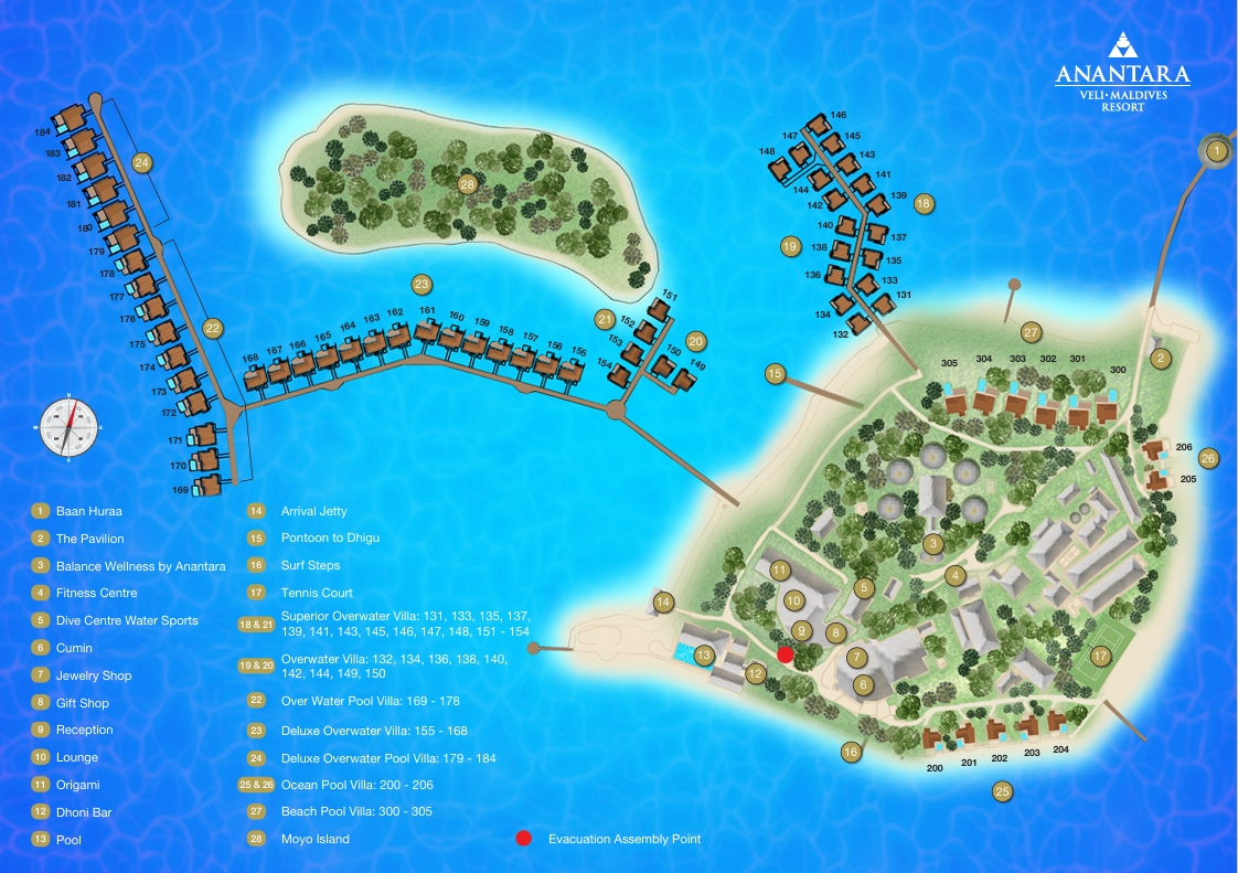 Anantara Veli je resort, který v sobě spojuje eleganci, soukromí a kvalitní služby. Adults-only koncept vytváří klidné prostředí ideální pro páry. Stylové vily s minimalistickým designem a soukromými bazény nad tyrkysovou lagunou nabízí vynikající úroveň komfortu. Výhodou je také krátká doprava z letiště (vhodný ke kombinaci s lokálním ostrovem). Vhodný pro ty, kteří hledají klidnou dovolenou bez přelidněnosti a přepych bez kýče. Zaměření je zde na wellness, páry, romantiku a vytříbenou gastronomii. Resort byl nedávno kompletně zrekonstruován.