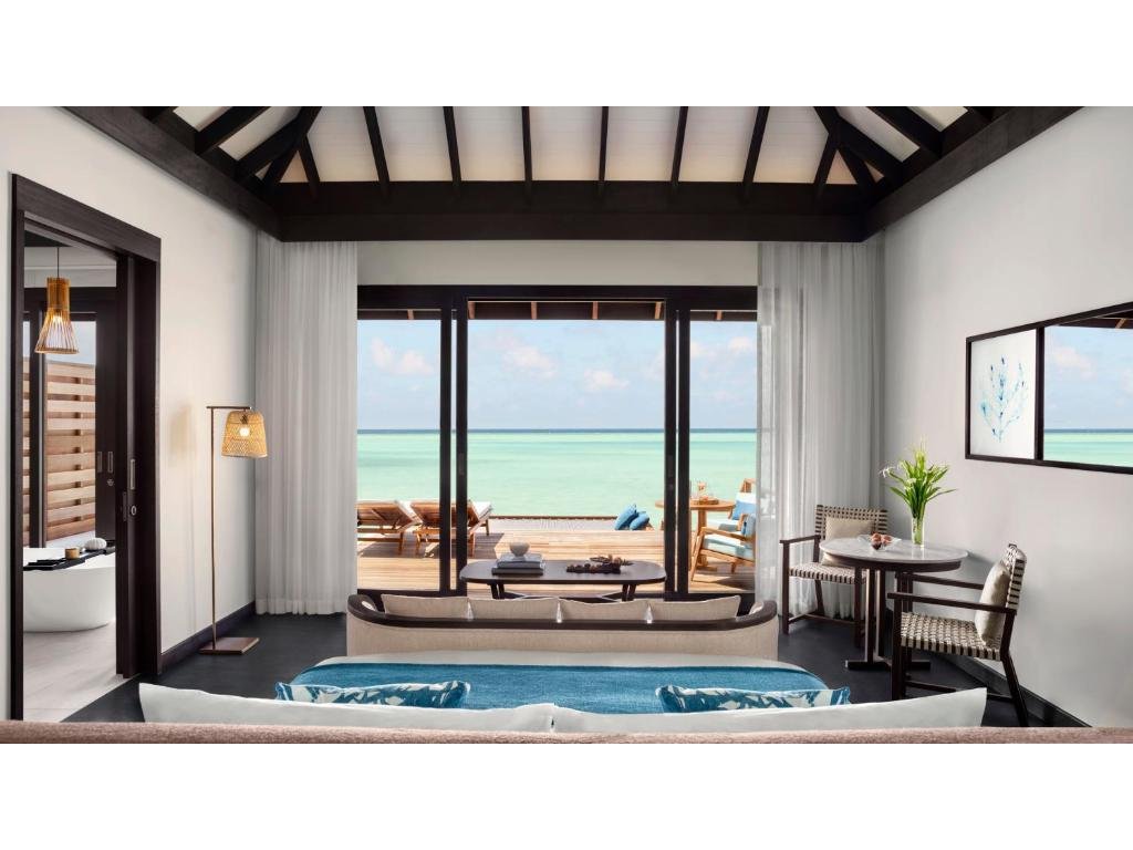 Vylepšená verze Over Water Vily s výhodnějším umístěním v rámci resortu a vyšším stupněm soukromí. Moderní koupelna, terasa s lehátky a přímý vstup do vody.