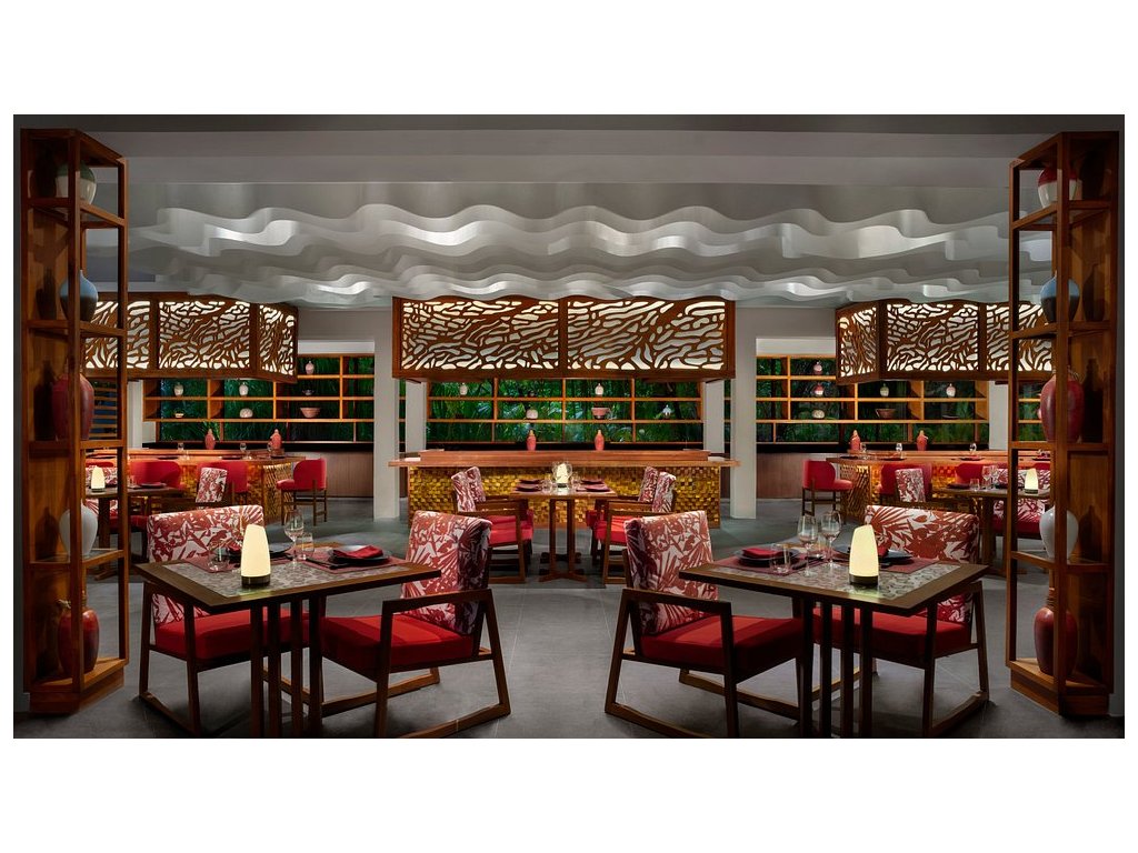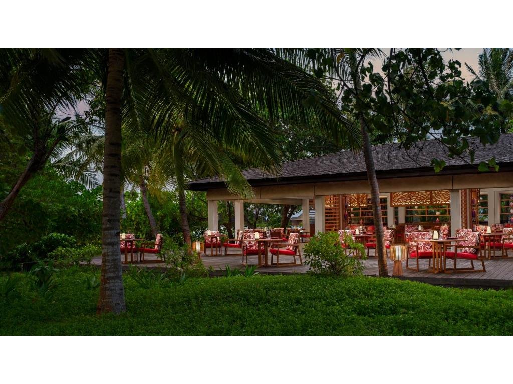 4 restaurace – thajská, japonská (Teppanyaki), mezinárodní a plážový gril. Možnost privátních večeří, floating breakfast i romantického stolování. Vysoká kvalita surovin i prezentace.