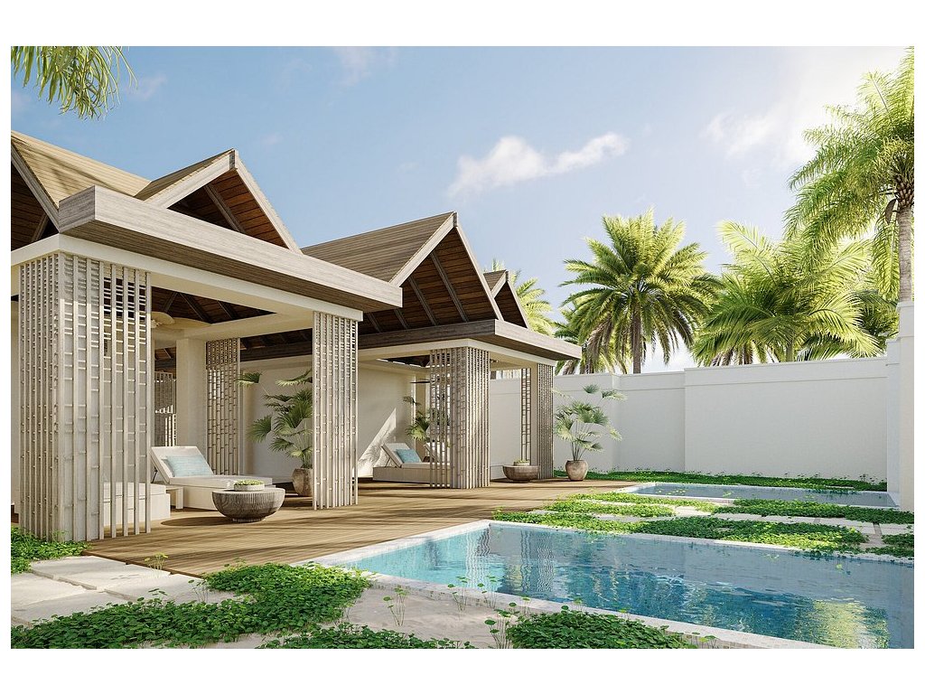 Prostorná vila na pláži s vlastním bazénem, přímým vstupem na pláž a odděleným obývacím prostorem. Tropická zahrada a komfortní zázemí pro relax.
