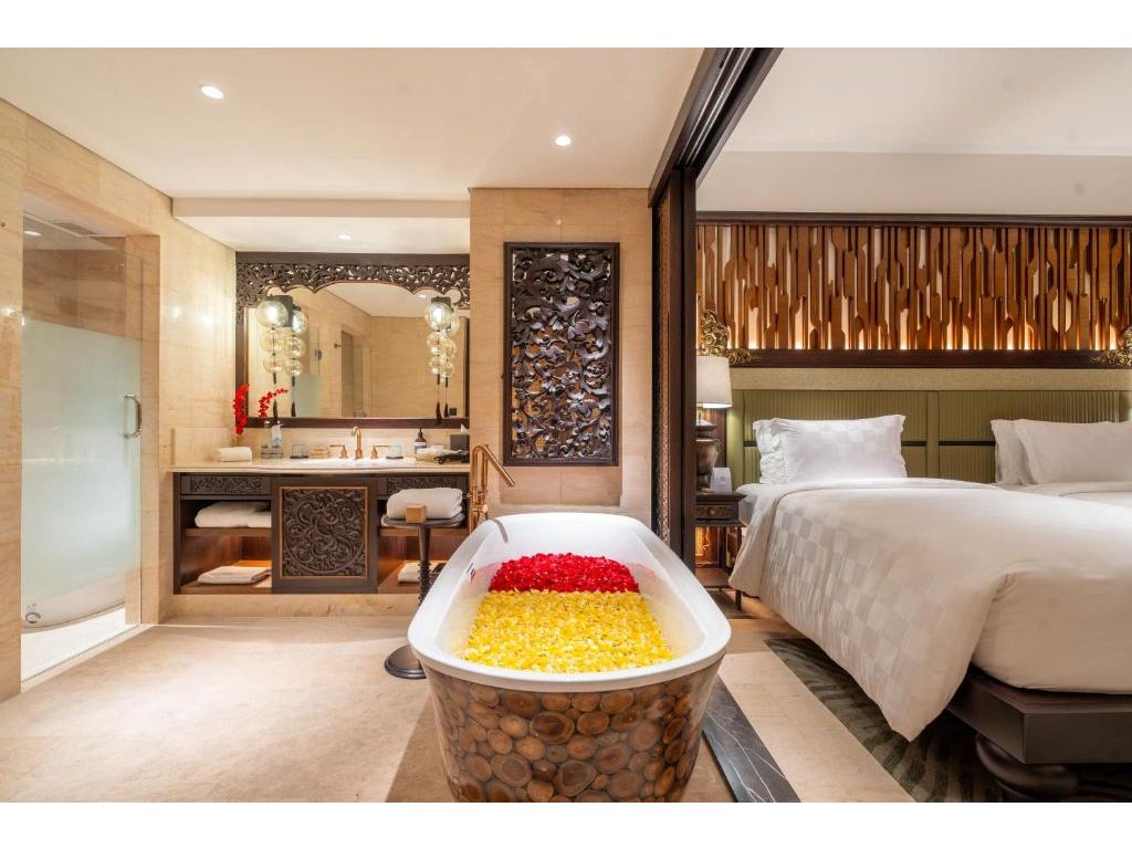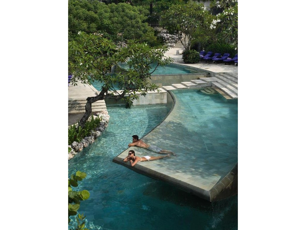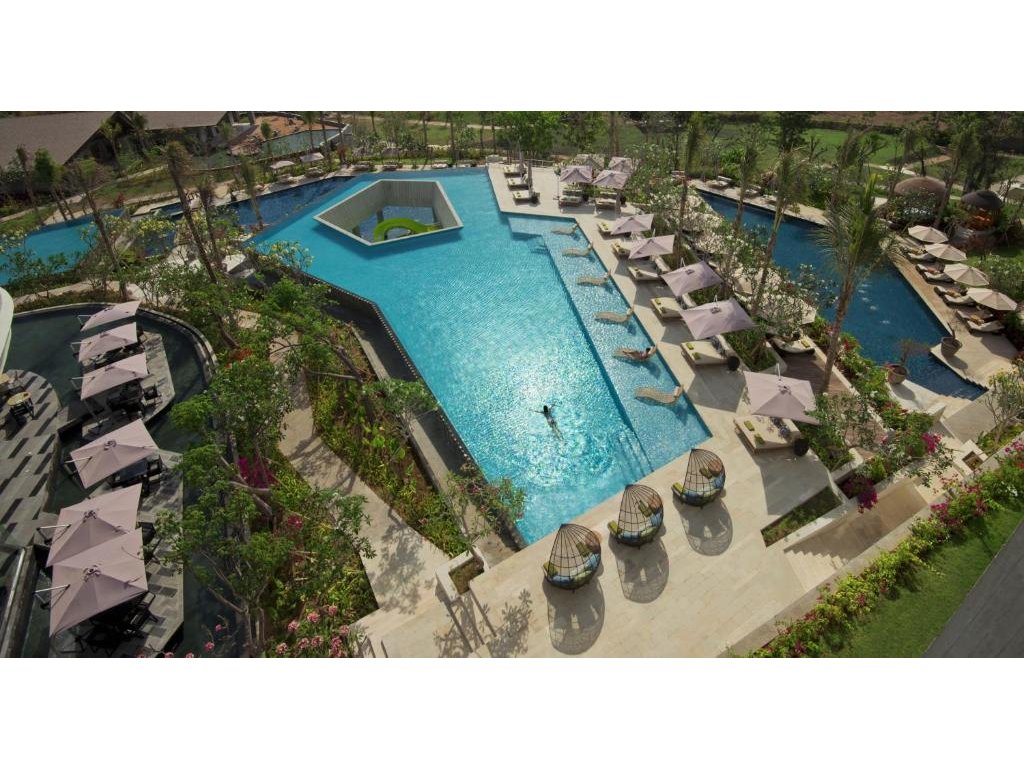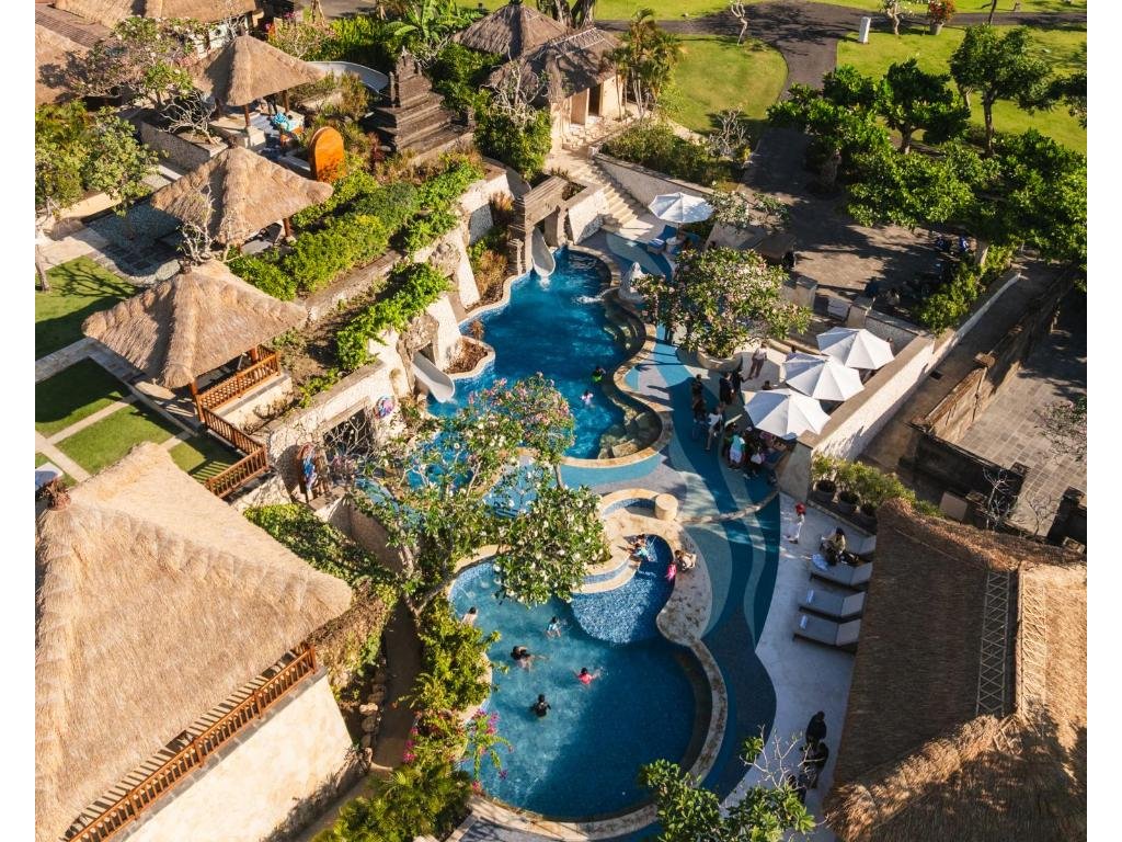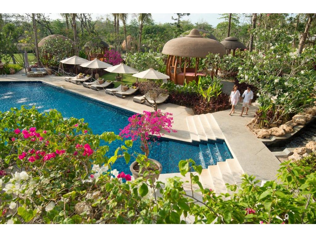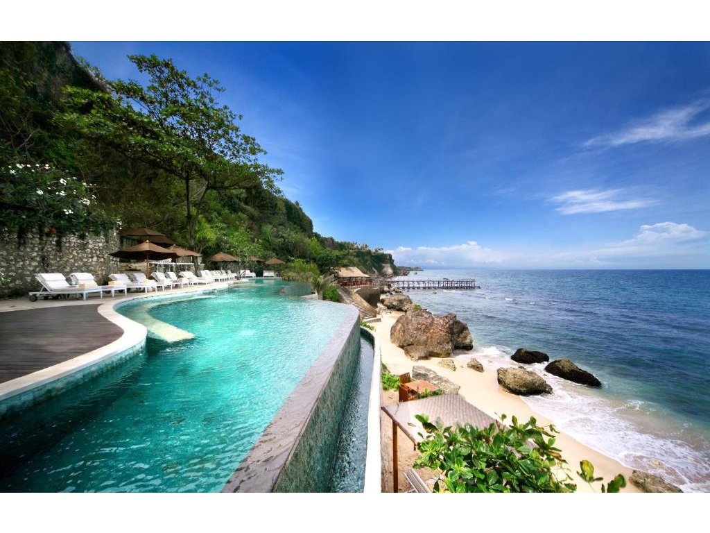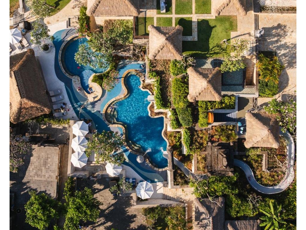 Ikonický oceánský resort na útesech v Jimbaran Bay s rozsáhlými tropickými zahradami, soukromou pláží Kubu Beach, slavnou scénou západů slunce a špičkovým spa. Hosté mají k dispozici mnoho bazénů, restaurací a barů (včetně proslulého Rock Bar). Skvělá volba pro páry i rodiny, kteří chtějí kombinaci pláže, luxusu a pohodlné blízkosti letiště.