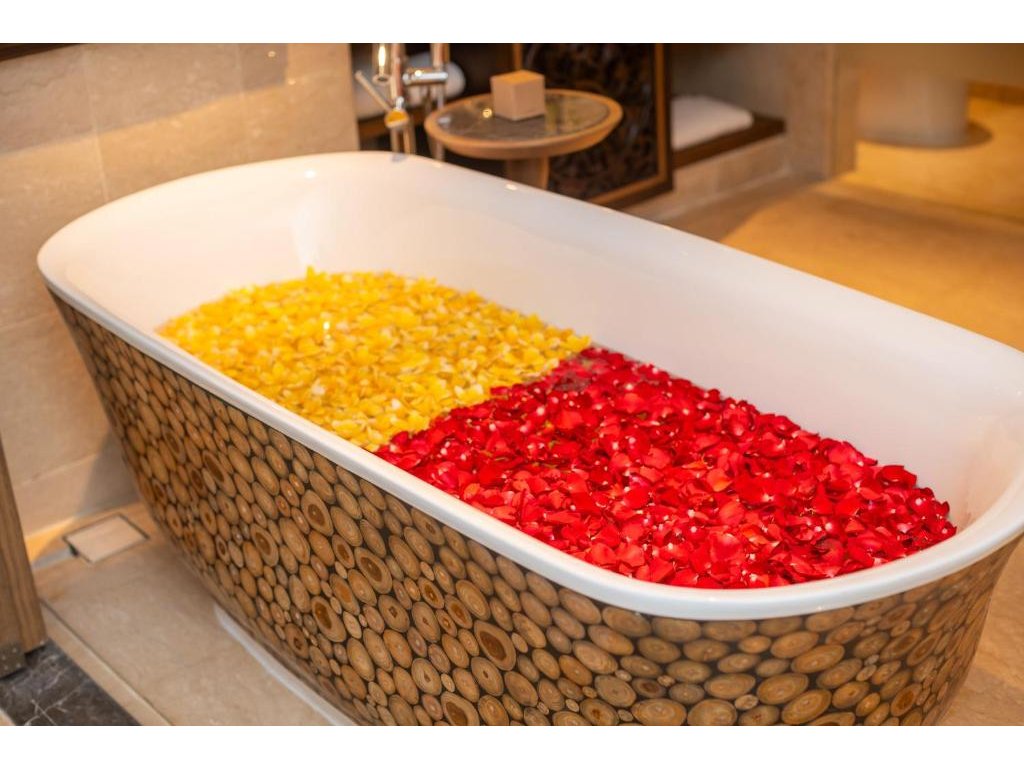 Více bazénů včetně ikonických útesových, Aquatonic mořský bazén ve spa, soukromá pláž, fitness, tenis, dětský klub, resortní shuttle/buggy, bohaté denní aktivity a možnost privátních večeří se západem slunce.