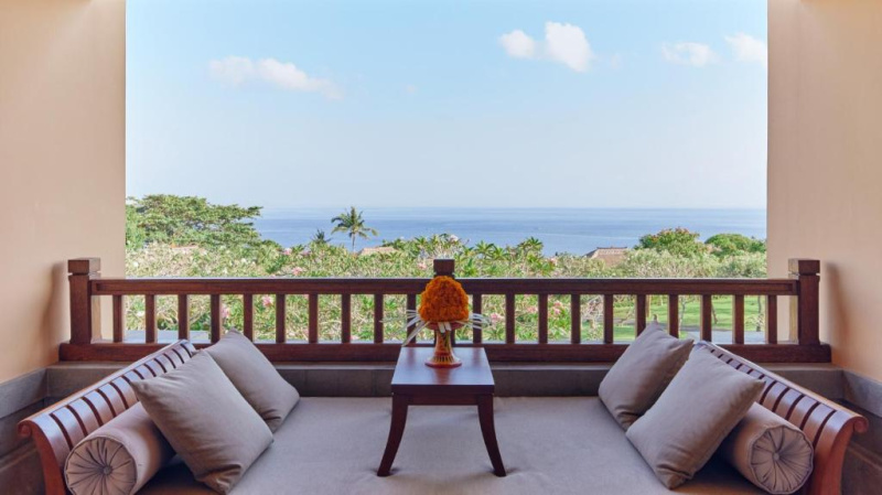 Výhled směrem na Jimbaran Bay | Stylový pokoj s lepšími výhledy, pohodlné zázemí pro 2 os., blízko hlavních zón resortu.