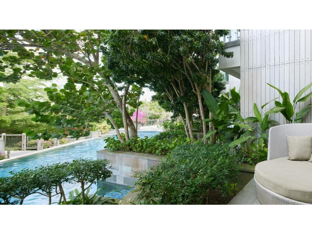 82 m² | Suite s přímým vstupem k bazénu; prostorné bydlení s komfortním obývákem a terasou u vody.