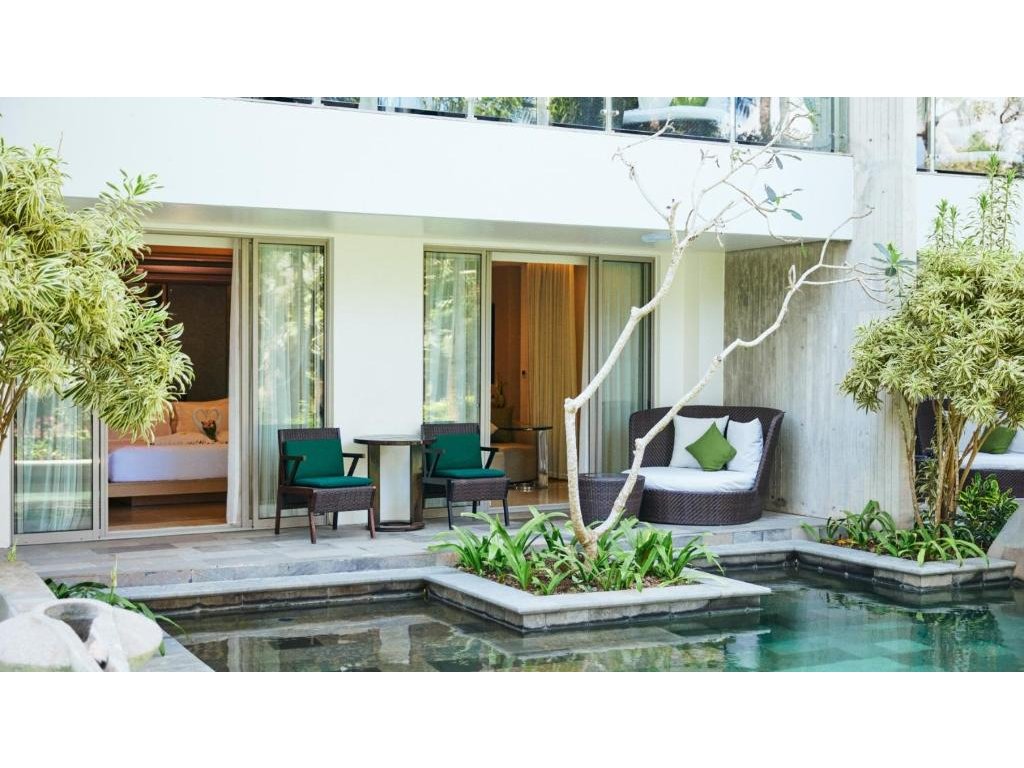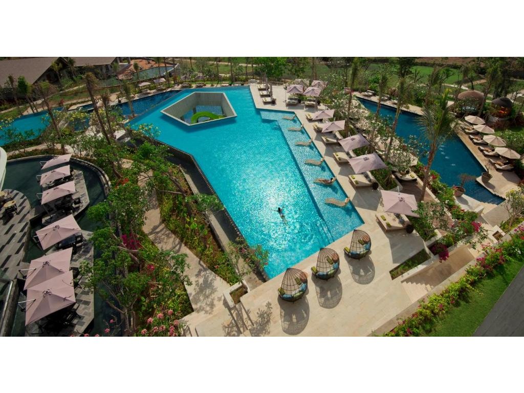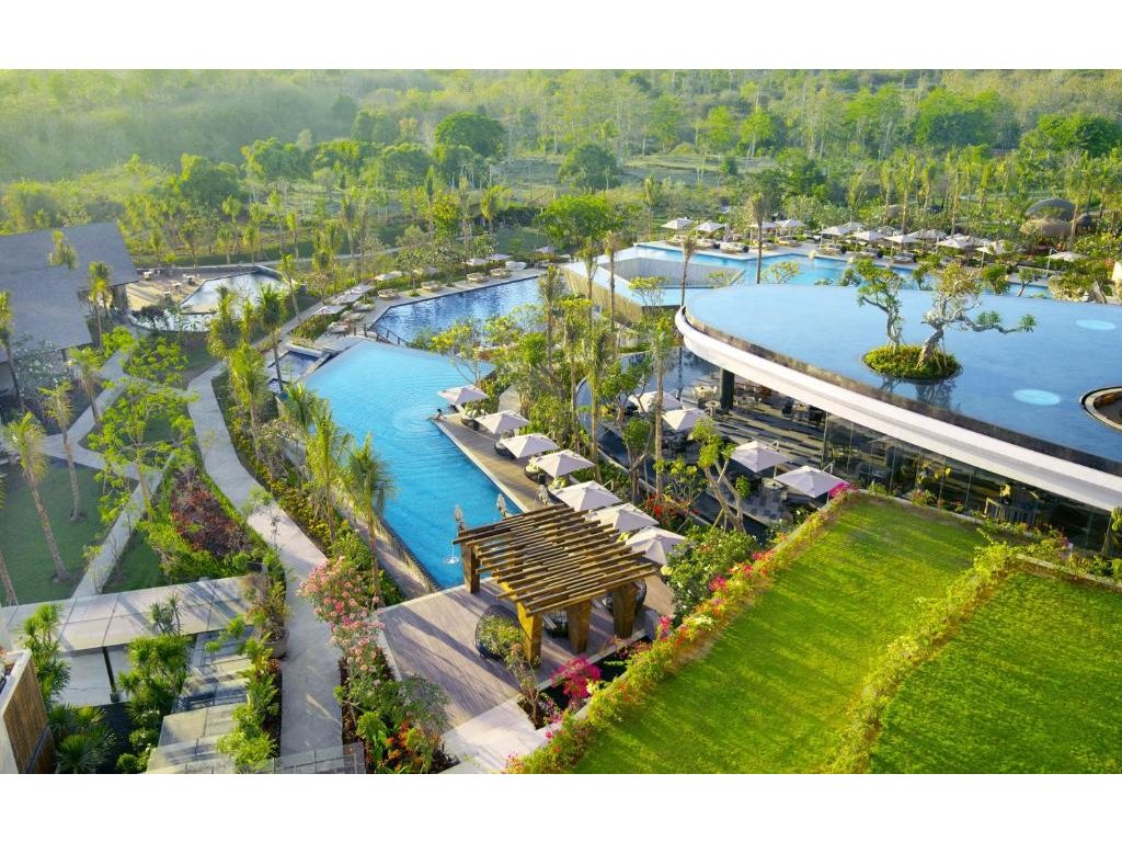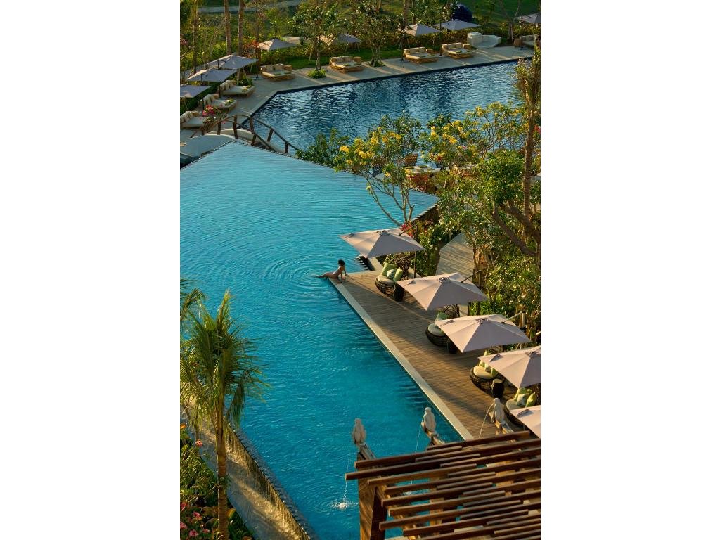 Moderní křídlo rozsáhlého AYANA Estate (Jimbaran) zasazené do tropické zeleně s kaskádou designových bazénů. Stylový 5★ resort, ideální pro páry i rodiny, s přístupem do celého areálu AYANA (pláže, vyhlášené restaurace a ikonický Rock Bar).