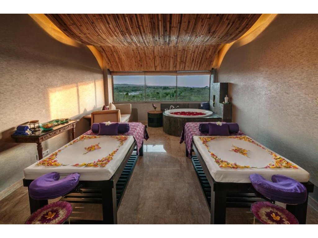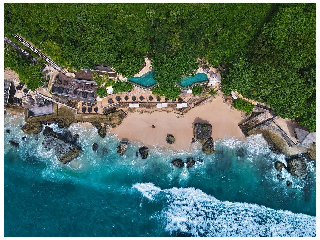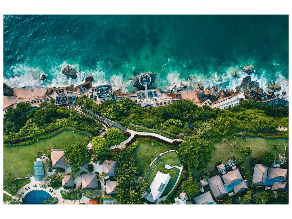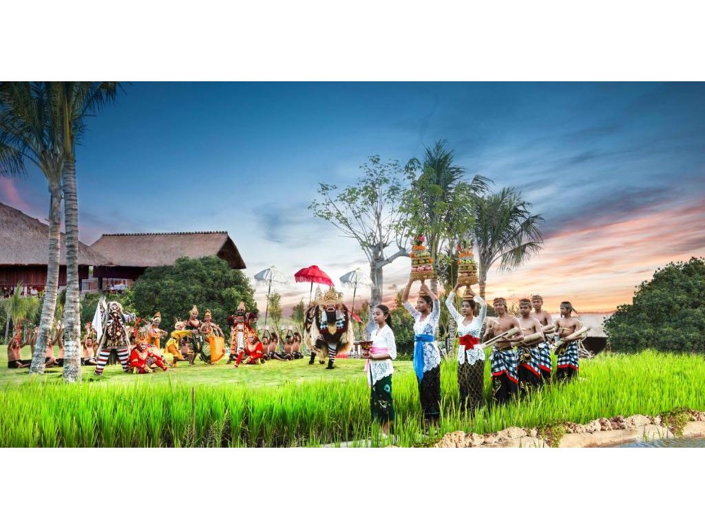 Jimbaran – klidná část jihu Bali s krásnými západy slunce. V rámci AYANA Estate přístup na Kubu Beach, k Rock Bar a do sesterských restaurací; krátké dojezdy k plážím Bukitu i k památkám.