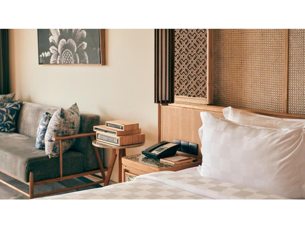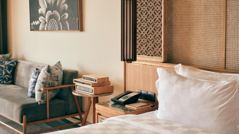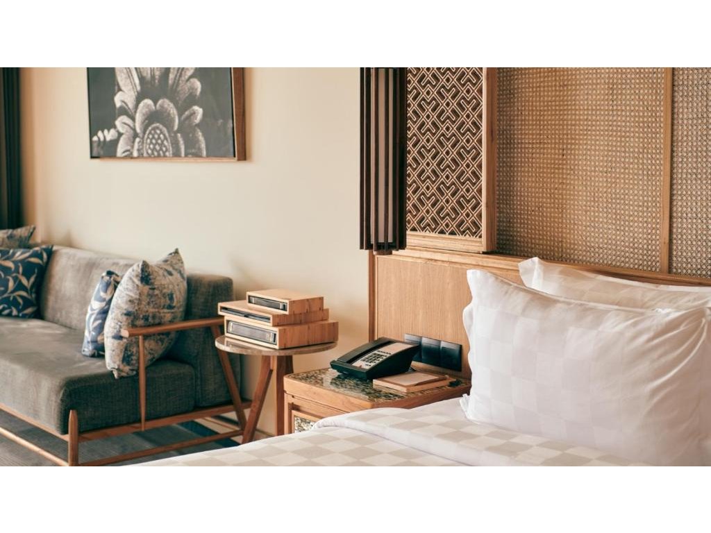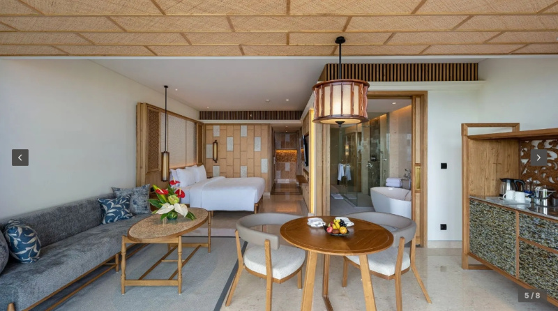 cca 58–65 m² | Vyšší patro s výhledem na oceán. Design v přírodních tónech, komfortní lůžko king/twin, šatna a moderní koupelna.