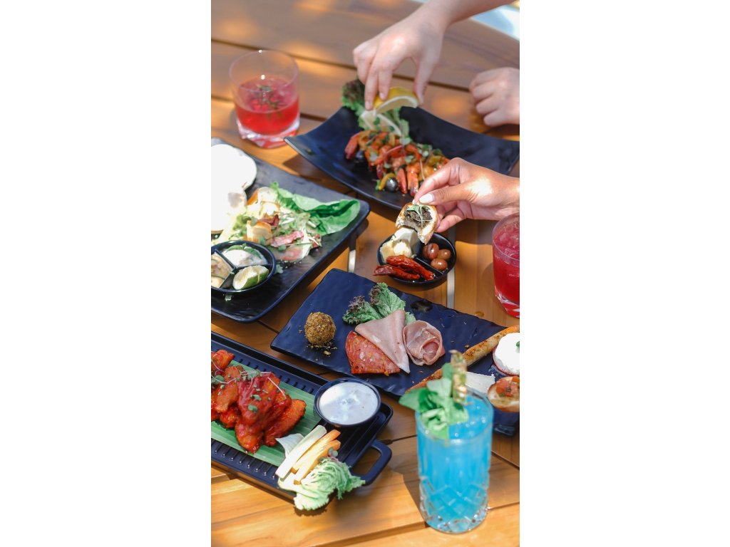 V Segara části Scusa (středomořská kuchyně) a bary u bazénů; v rámci AYANA Estate široký výběr restaurací a barů včetně Rock Baru. Snídaně formou bufetu/à la carte dle tarifu; možnost in-room dining.