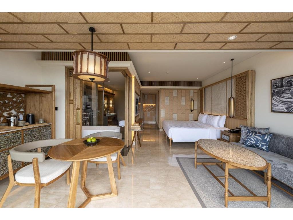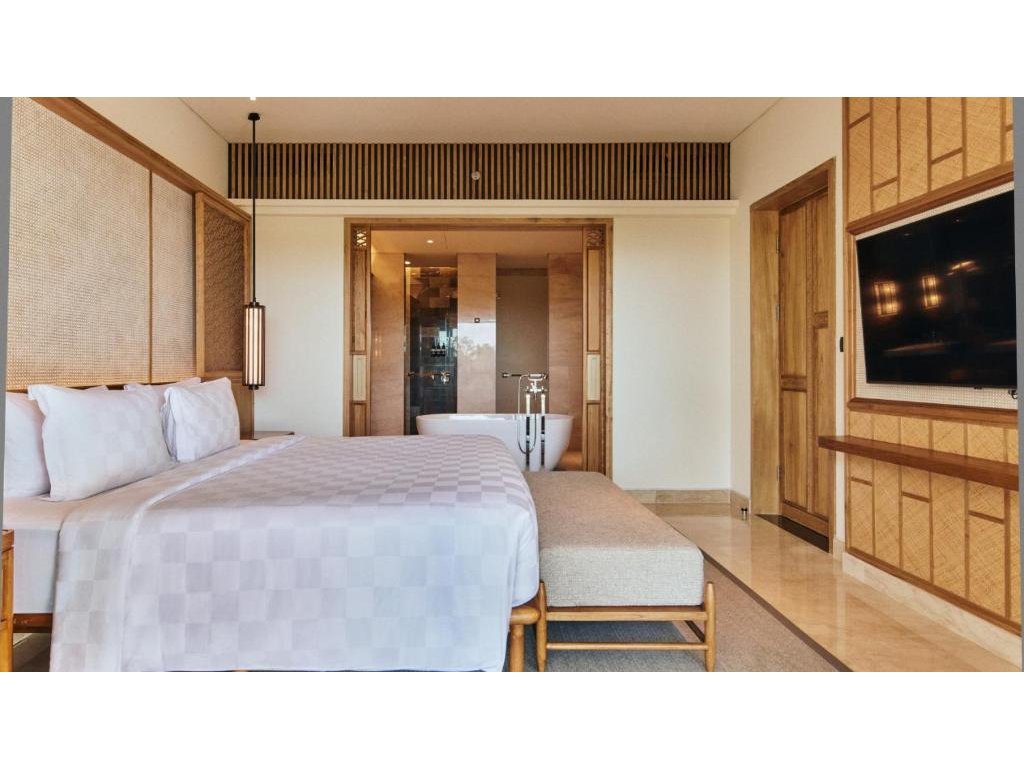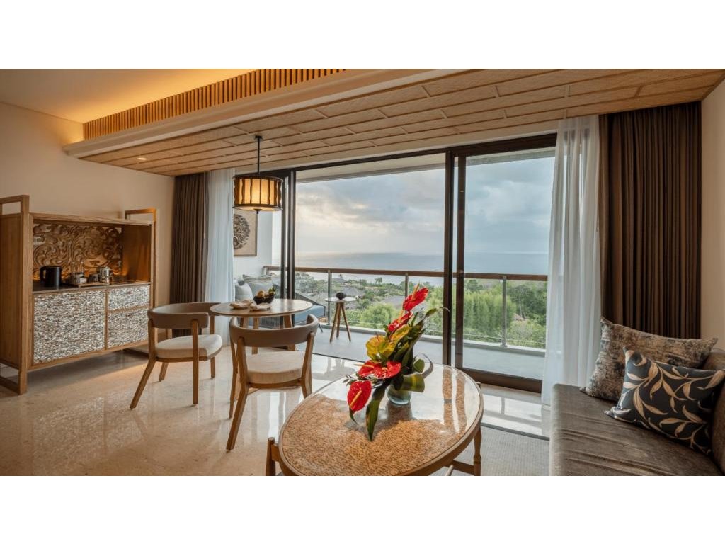 Nejnovější hotel v areálu AYANA působí vzdušně a současně: prostorné pokoje, promyšlené detaily a klidnější atmosféra než u hlavního resortu. Velkým benefitem je napojení na celé AYANA Estate – desítky restaurací, legendární Rock Bar, spa a soukromá pláž. Počítejte s tím, že areál je rozlehlý: na přesuny se hodí shuttle/buggy a některé spoty (např. Rock Bar) mohou být ve špičce oblíbené. Celkově výborná volba pro pohodlnou dovolenou u západního pobřeží bez ruchu Kuty.