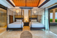 cca 530 m² | 2 ložnice (king + twin/king), společný obývací pavilon, jídelna, velký privátní bazén, zahrada a terasy s výhledem na oceán. Ideální pro rodiny či dvojice párů.