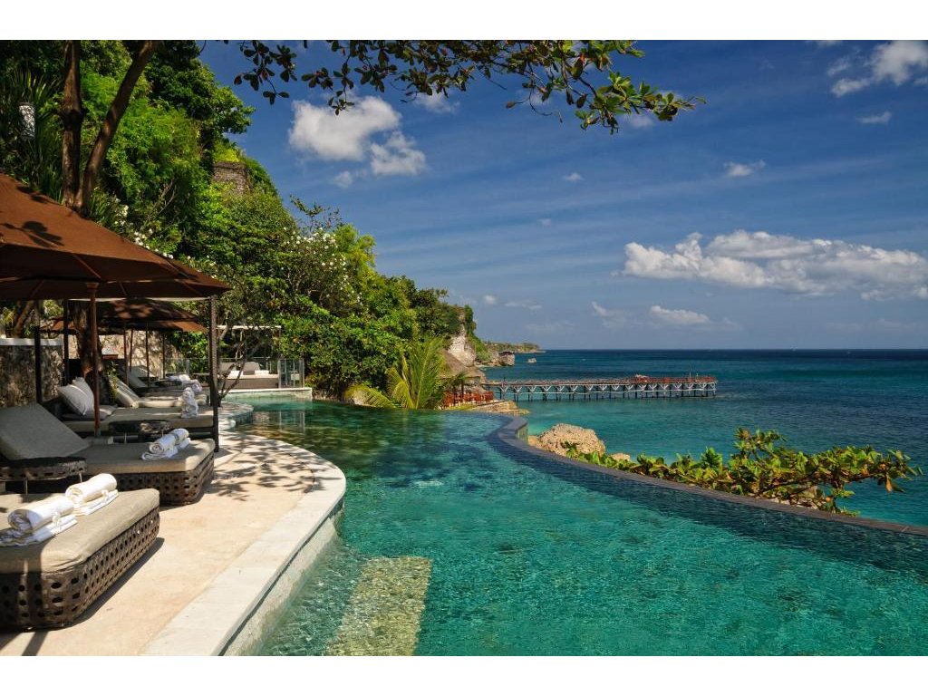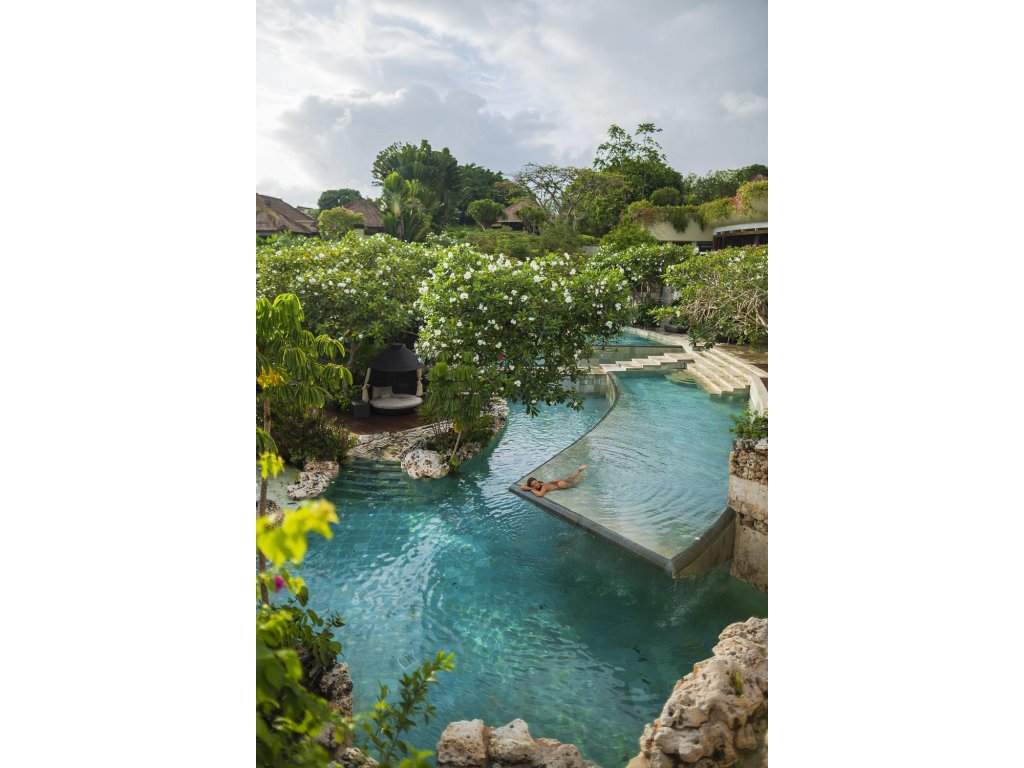 Ultra-luxusní vilový resort na útesu v Jimbaranu v rámci rozsáhlého AYANA Estate (vily součástí resortu AYANA). Vily s privátními bazény, výhledy na Indický oceán a špičkovým servisem. Ikonické západy slunce, přístup na Kubu Beach, legendární Rock Bar a bohaté wellness zázemí včetně Thermes Marins Spa a Aquatonic mořského bazénu. Ideální pro páry, náročné cestovatele a rodiny hledající maximální soukromí a služby.