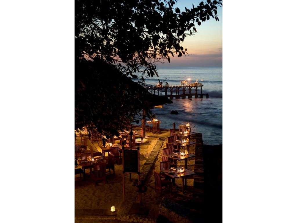 Široký výběr restaurací a barů v rámci AYANA Estate: ikonický Rock Bar, KISIK (mořské plody), DAVA (steak & seafood), Sami Sami (mediterán), kavárny a plážové koncepty. Možnost in-villa dining a privátních večeří se šéfkuchařem.