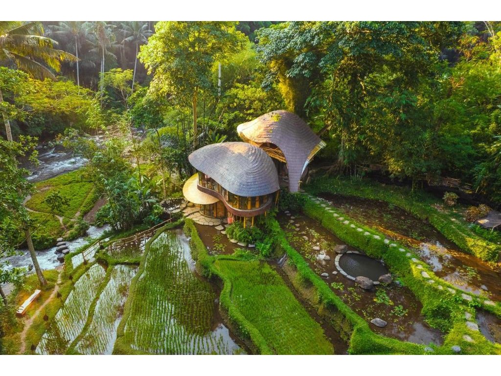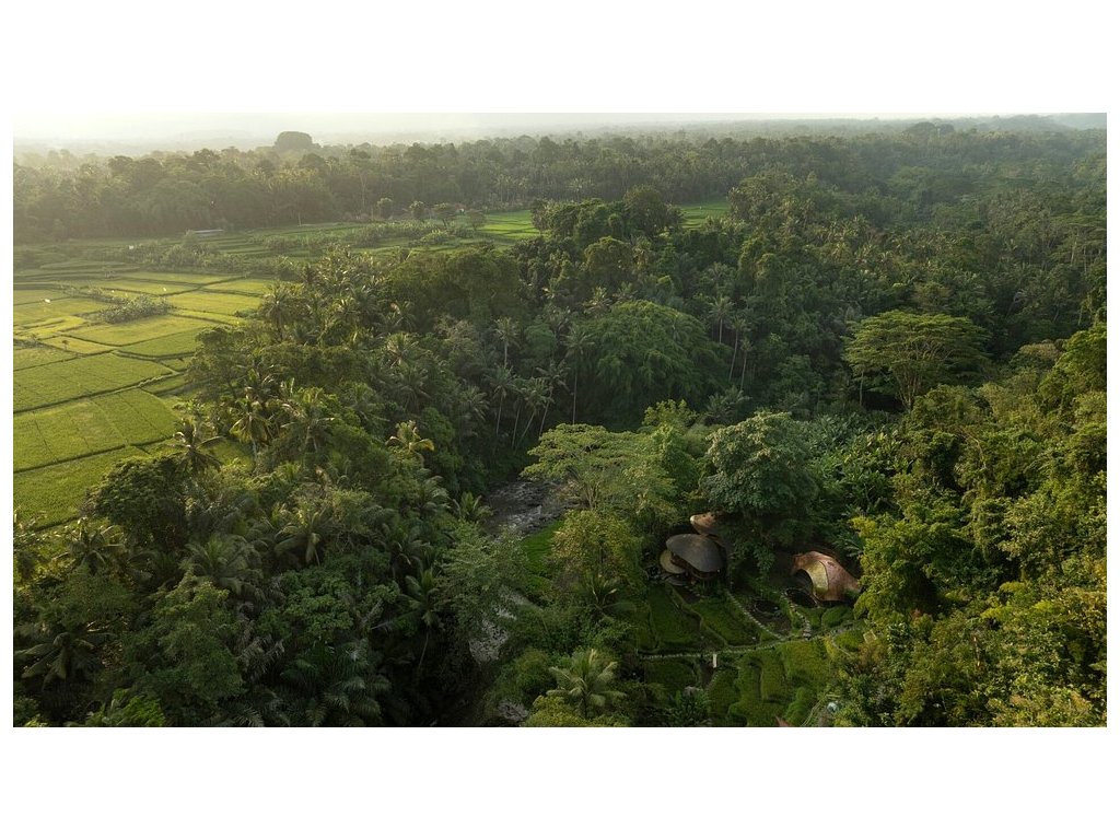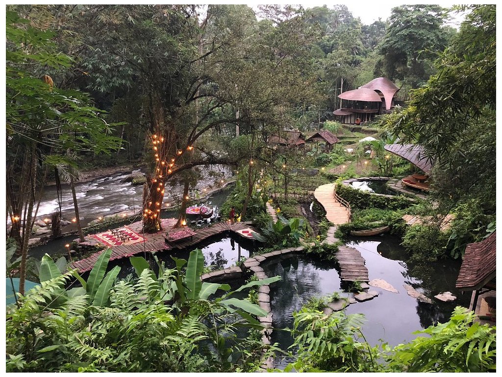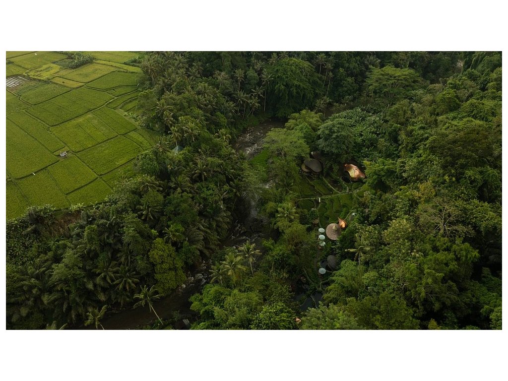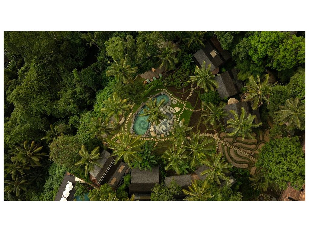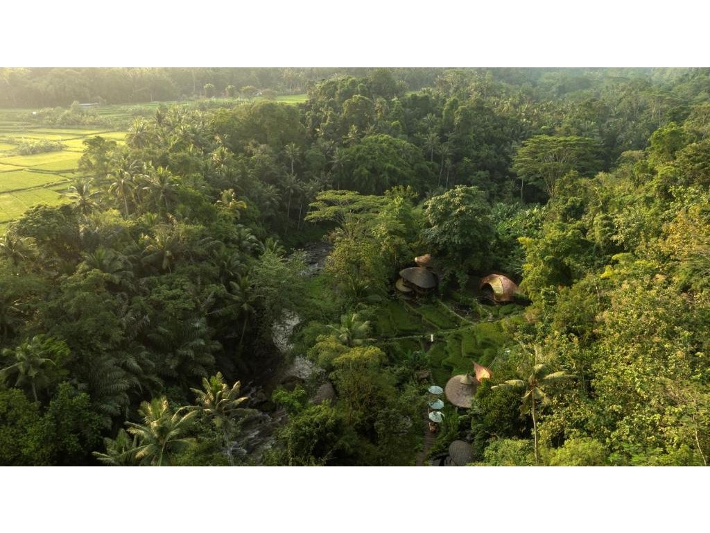 Eco-luxury boutique retreat na svahu údolí řeky Ayung (Sayan / Ubud). Ikonické teakové a bambusové domy citlivě zasazené do přírody, přírodní koupací jezírka bez chemie a důraz na udržitelnost, lokální řemeslo a klid. Ideální pro páry, milovníky designu a přírody i stylové „digital detox“ pobyty.