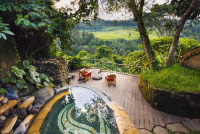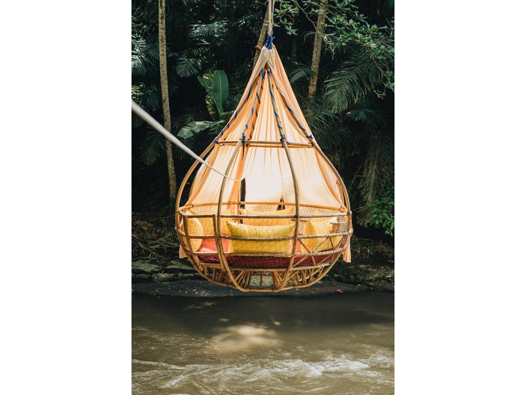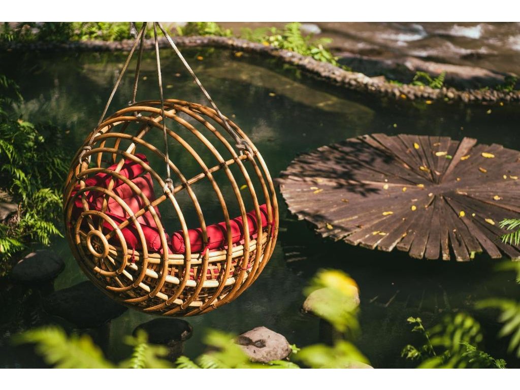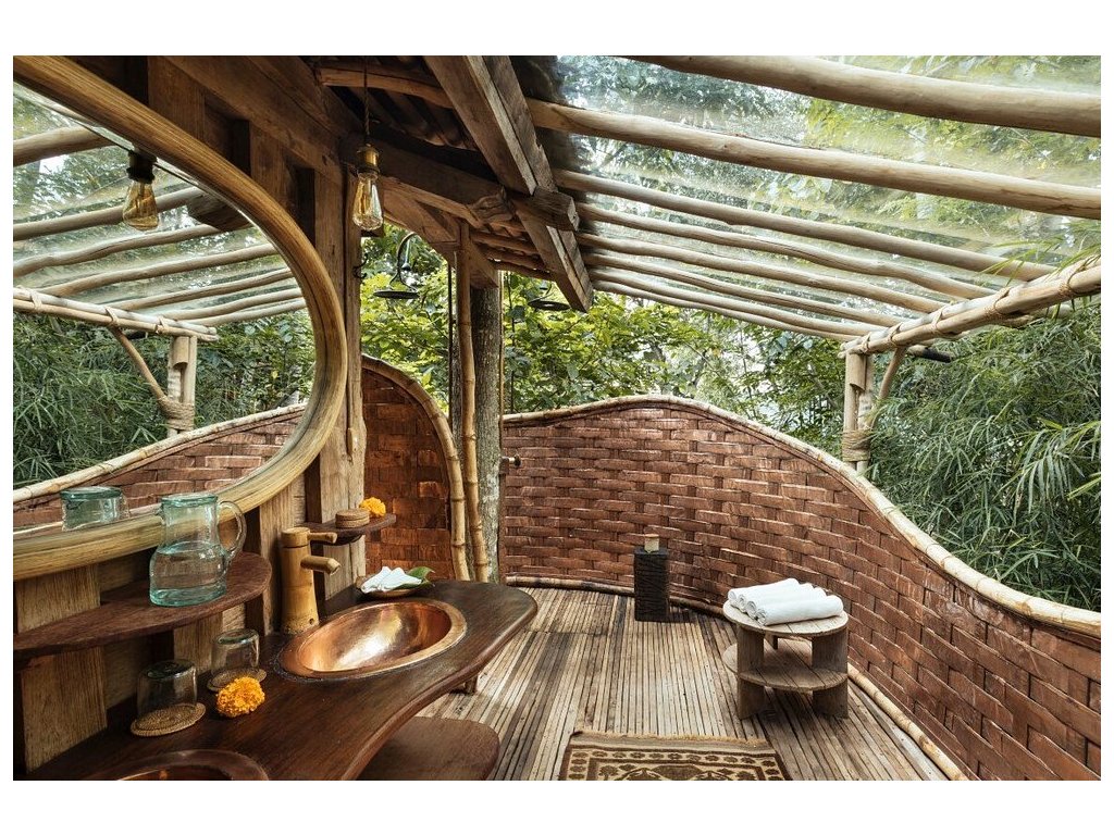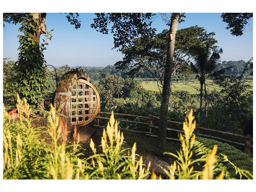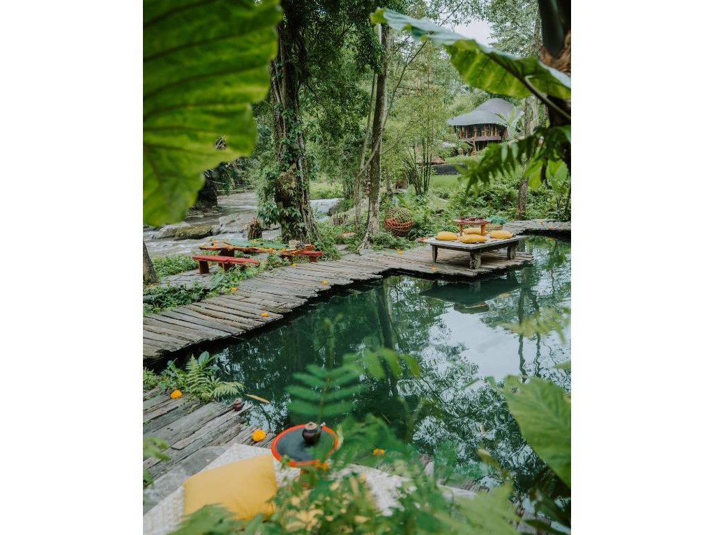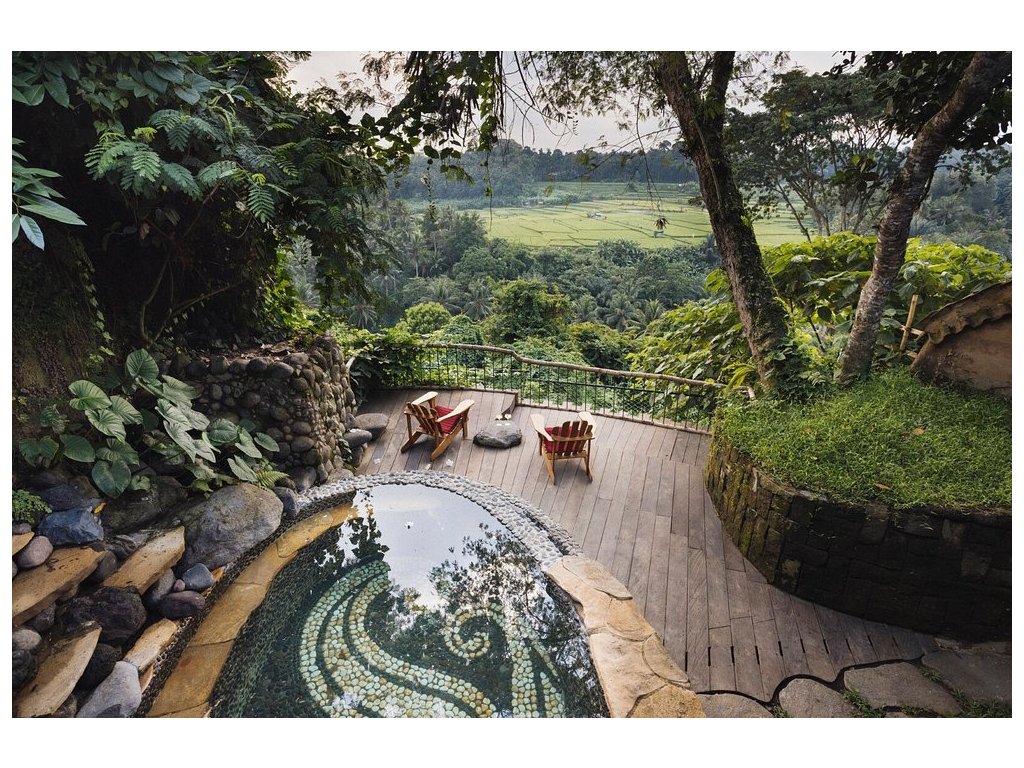Eco-luxury boutique retreat na svahu údolí řeky Ayung (Sayan / Ubud). Ikonické teakové a bambusové domy citlivě zasazené do přírody, přírodní koupací jezírka bez chemie a důraz na udržitelnost, lokální řemeslo a klid. Ideální pro páry, milovníky designu a přírody i stylové „digital detox“ pobyty.