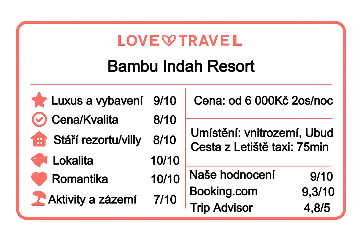 - Poměr cena/výkon: špičkový eko-luxusní zážitek s unikátní architekturou u řeky Ayung; platíte za jedinečnost místa, soukromí a design.