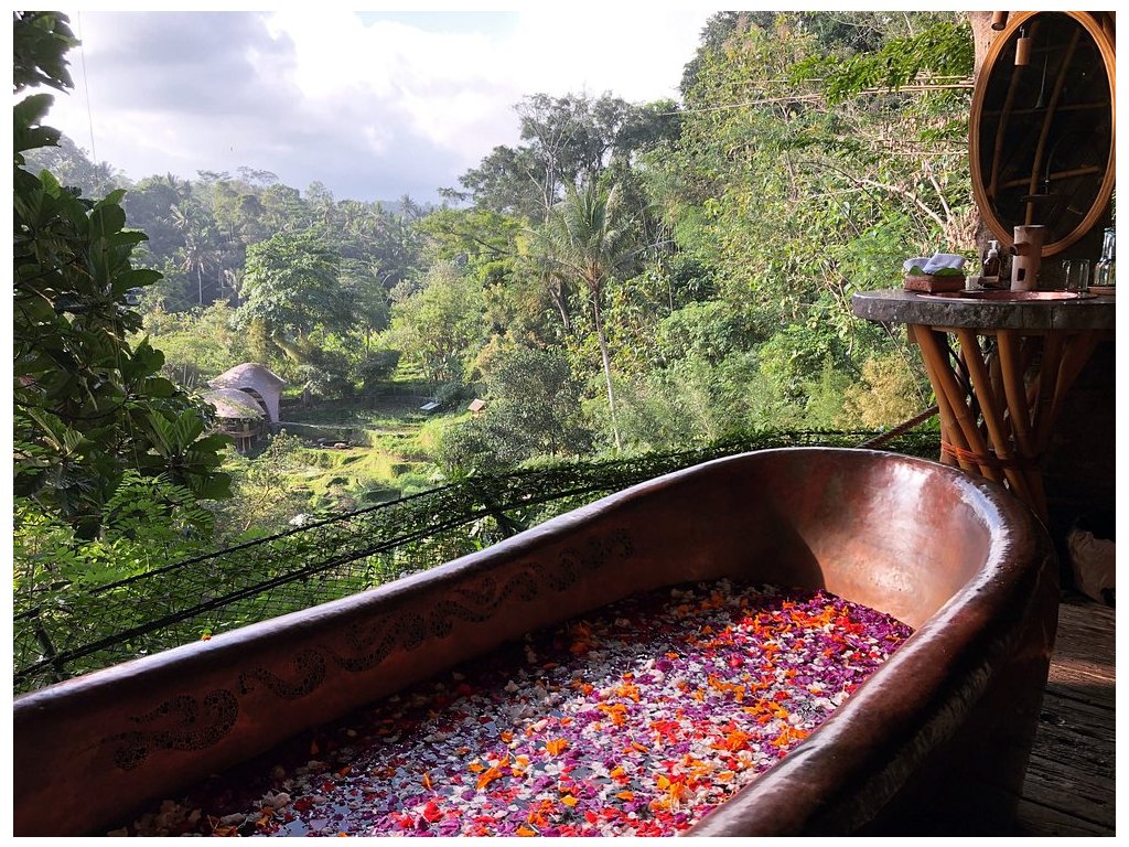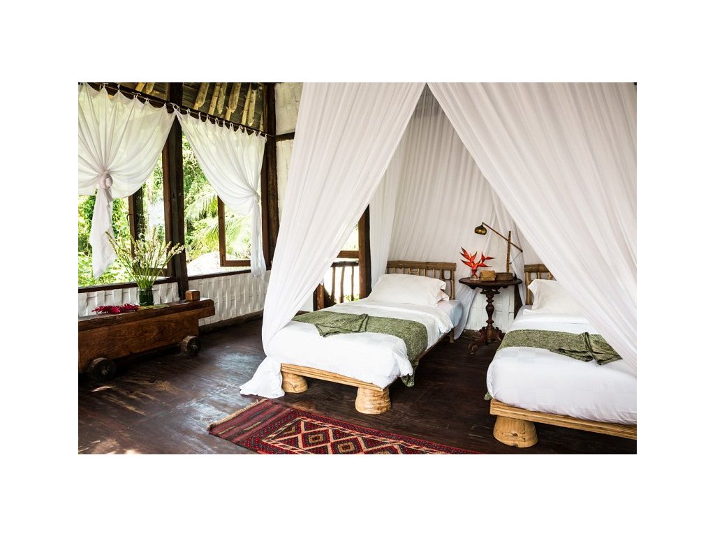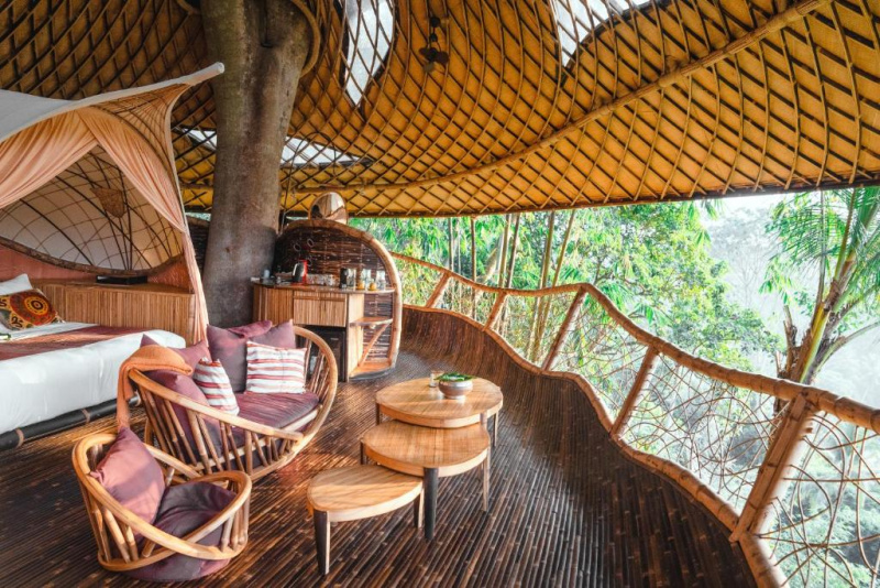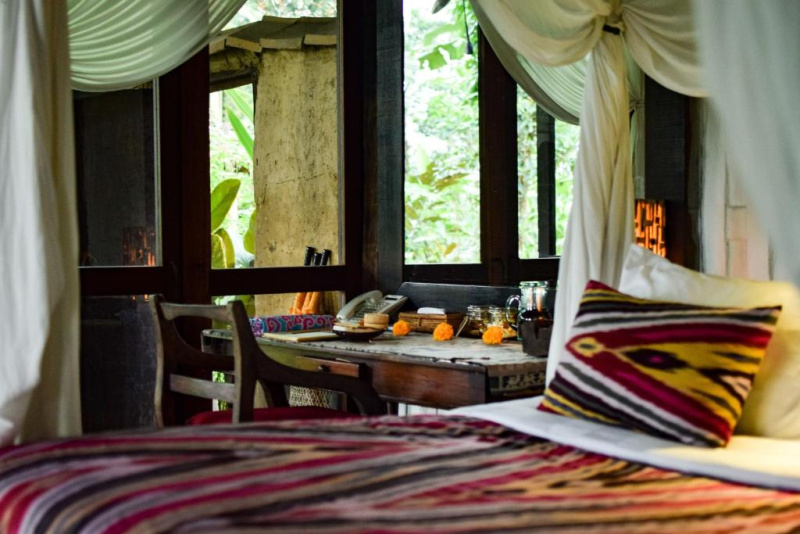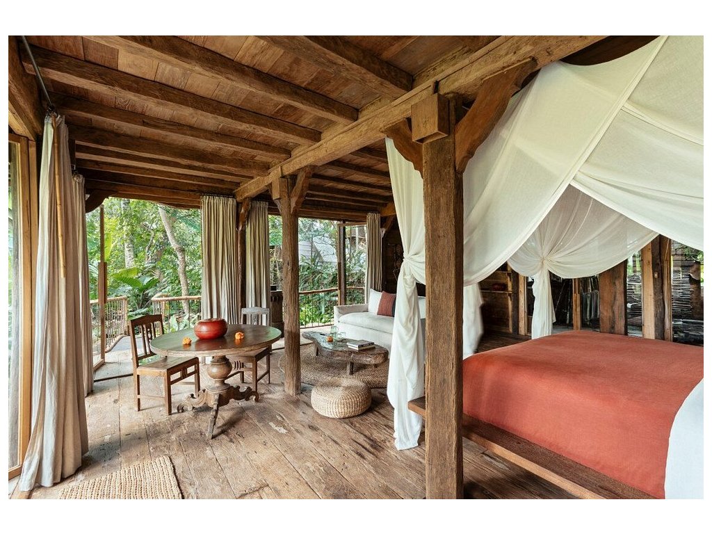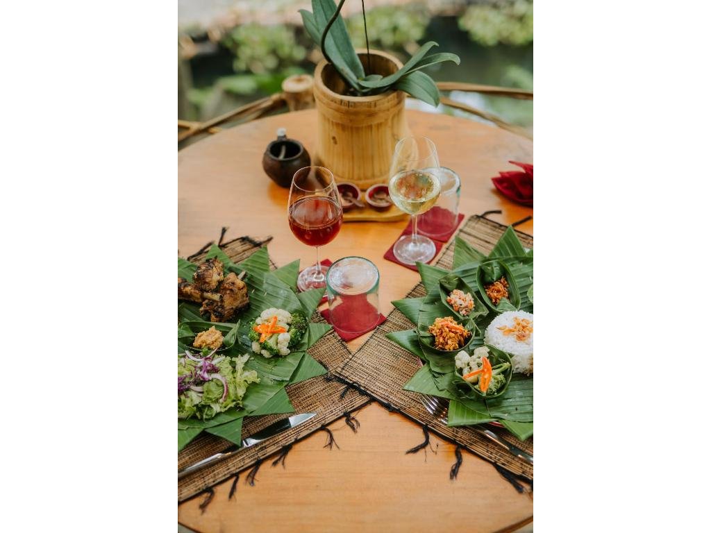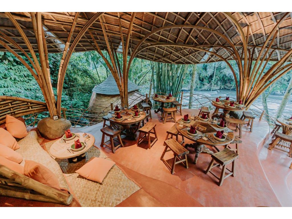 Výjimečně autentický a udržitelný zážitek v Ubudu: kombinace historických jávských domů a moderních bambusových staveb vytváří velmi osobitou atmosféru. Silná stránka je poloha nad řekou, přírodní bazény, promyšlené detaily a servis s důrazem na soukromí. Nečekejte velký resort ani masovou zábavu – vše je klidné, intimní a „slow“, s důrazem na gastronomii a propojení s přírodou.