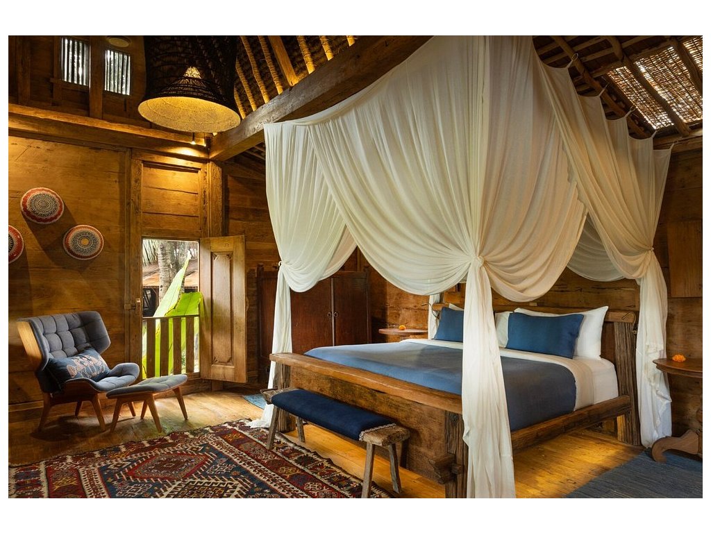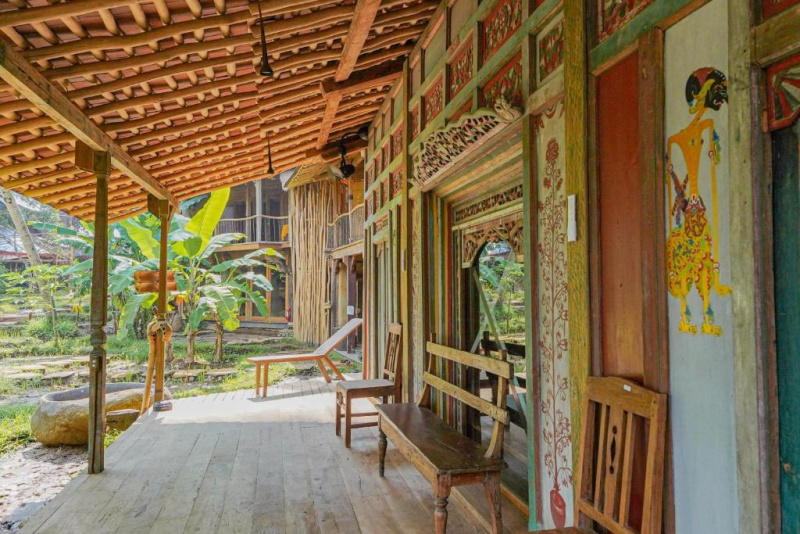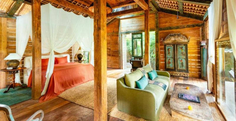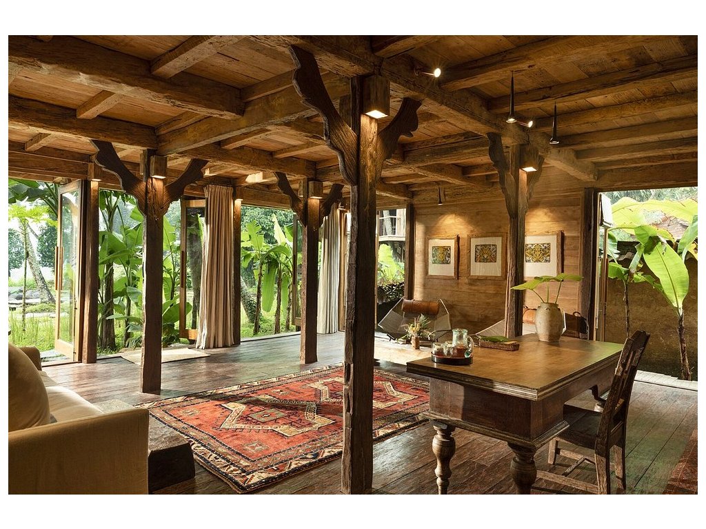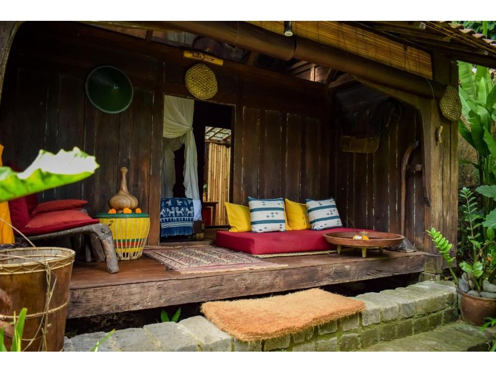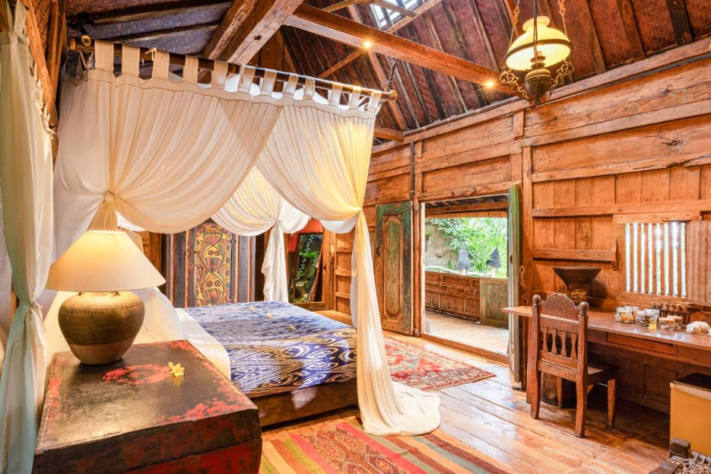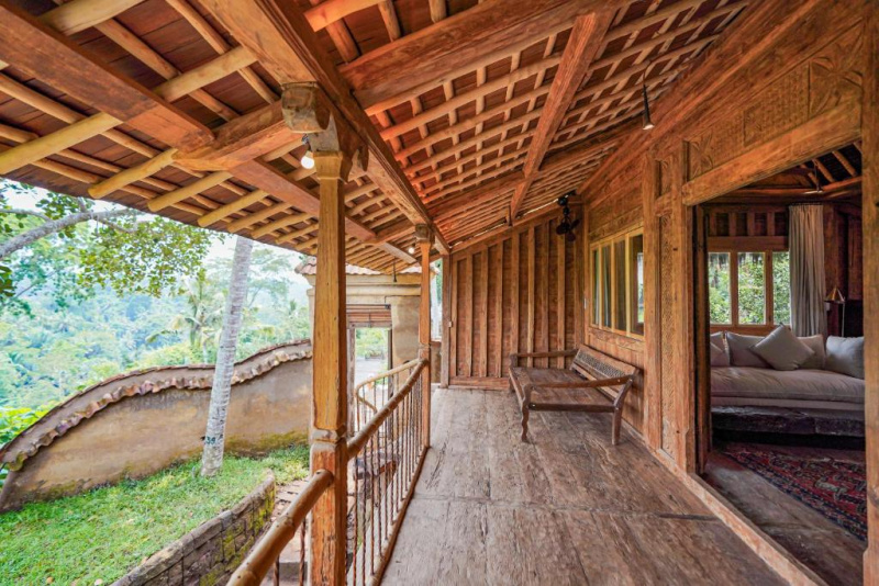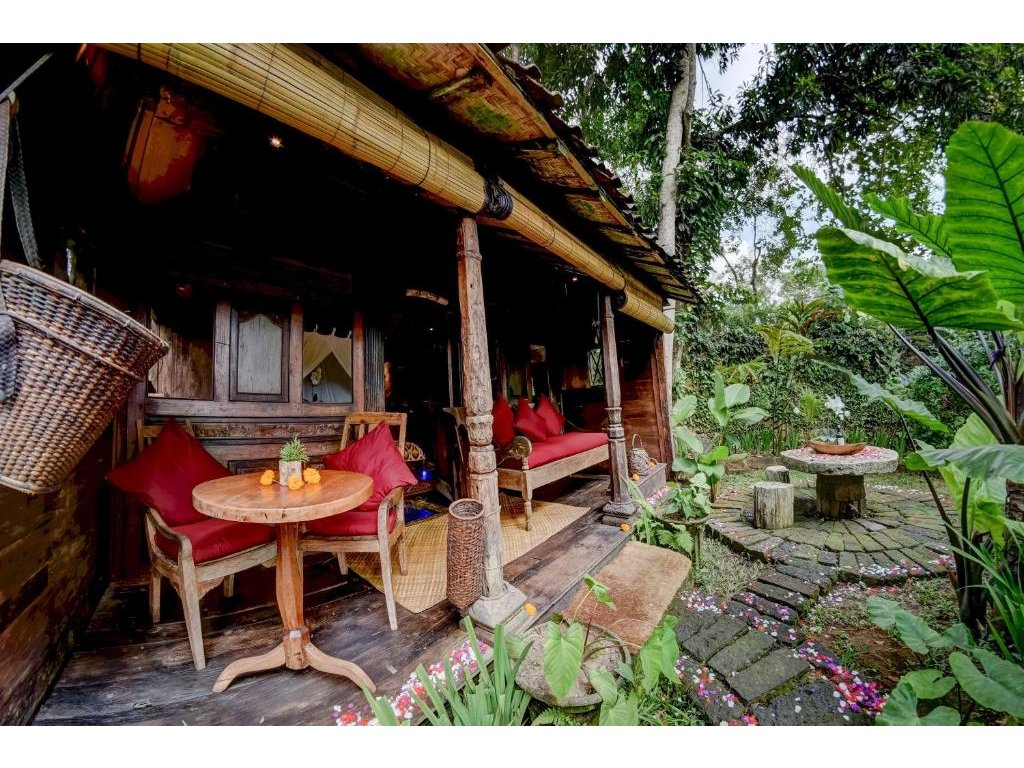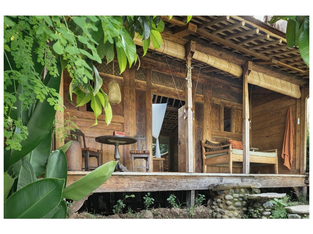 Unikátní mix historických teakových domů z Jávy (citlivě restaurovaných) a moderních bambusových staveb. Areál je průběžně udržovaný, interiéry a zahrady působí svěže; charakter zůstává autentický a přírodní.