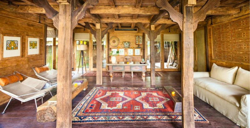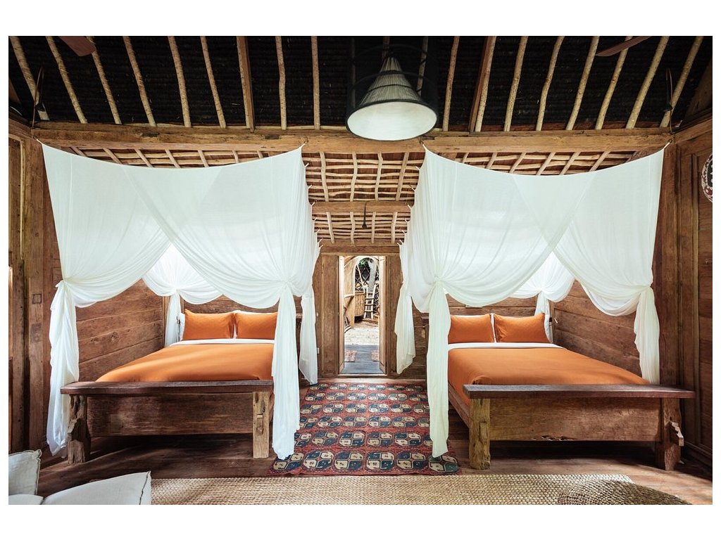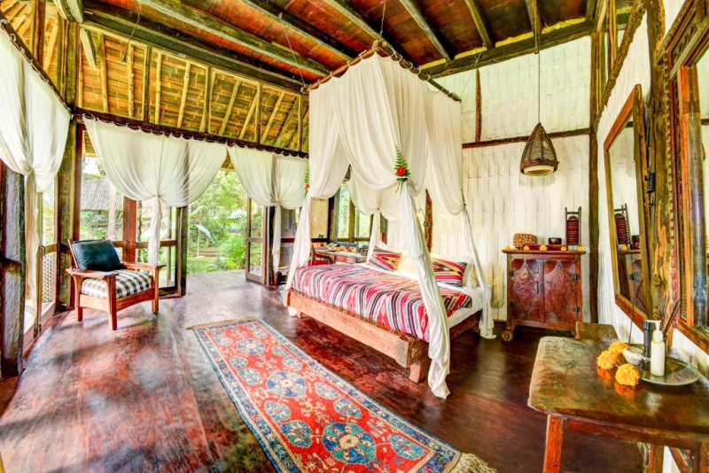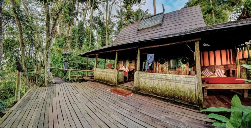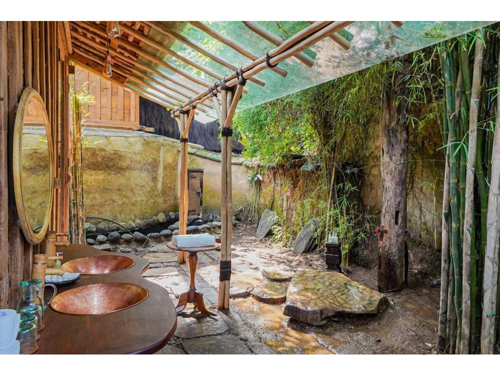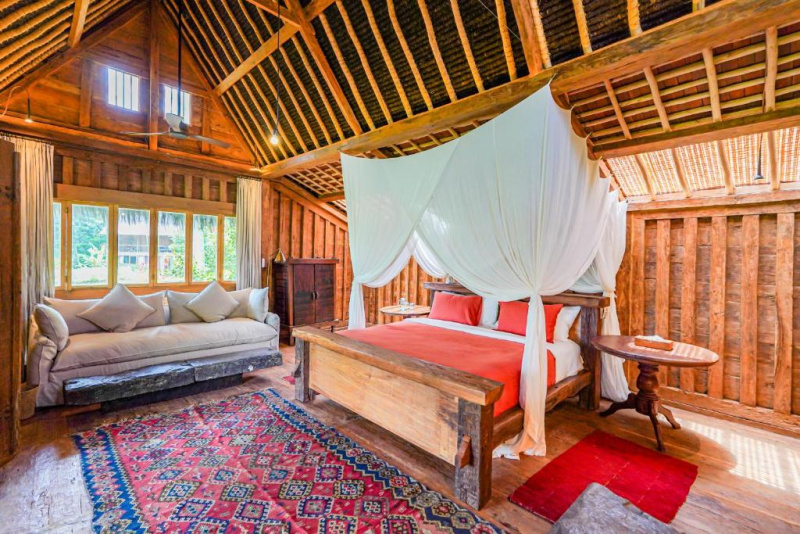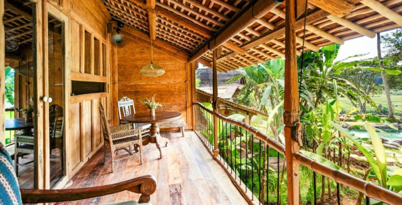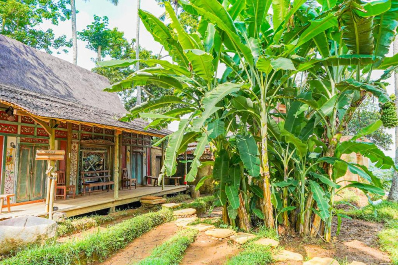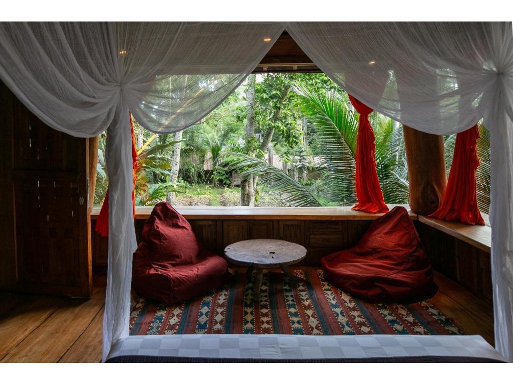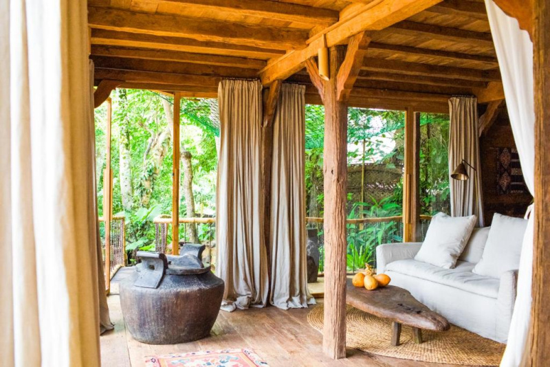 Unikátní mix historických teakových domů z Jávy (citlivě restaurovaných) a moderních bambusových staveb. Areál je průběžně udržovaný, interiéry a zahrady působí svěže; charakter zůstává autentický a přírodní.