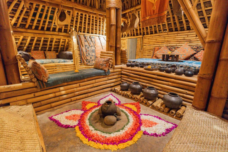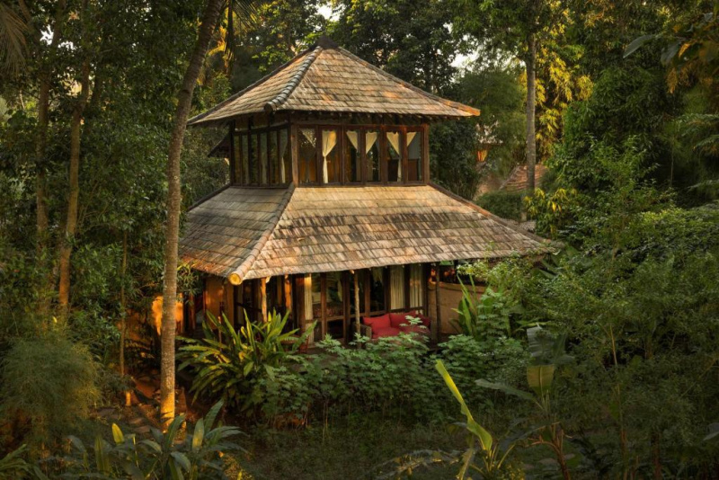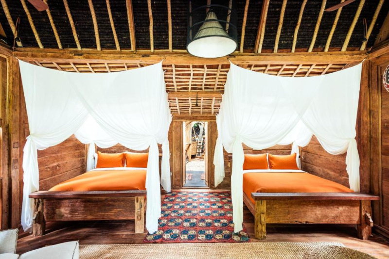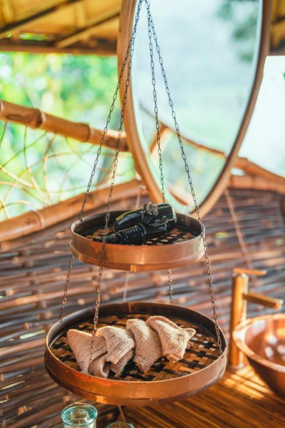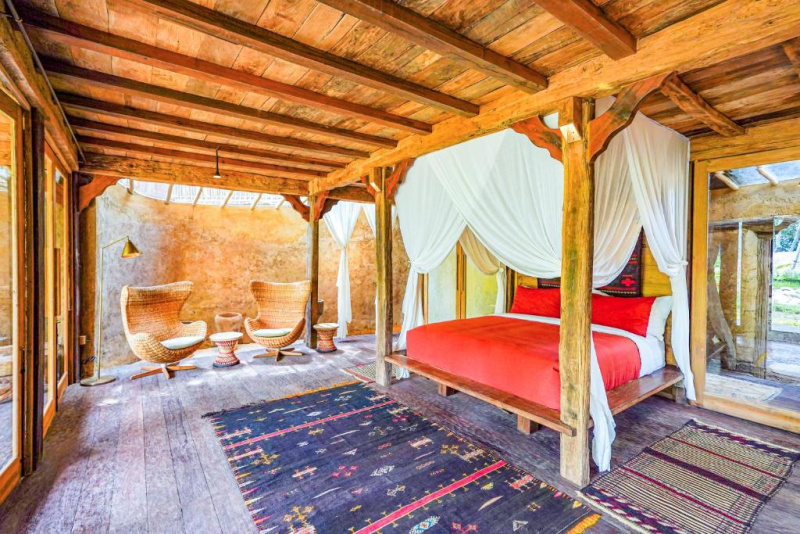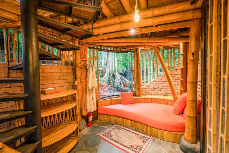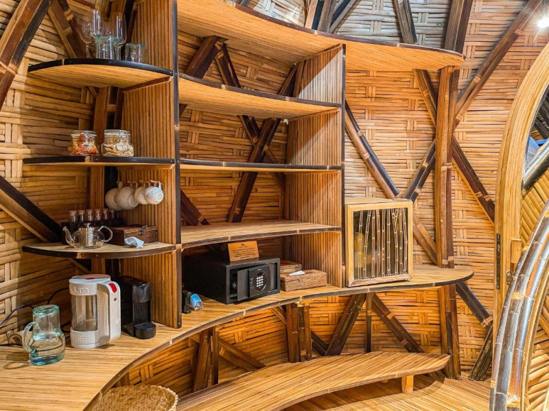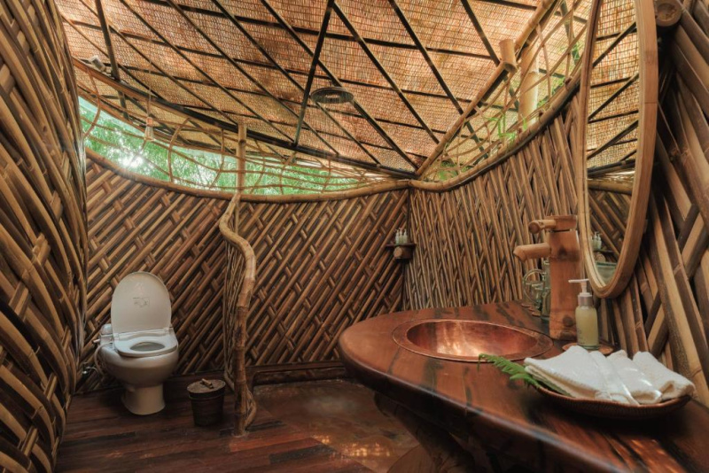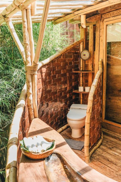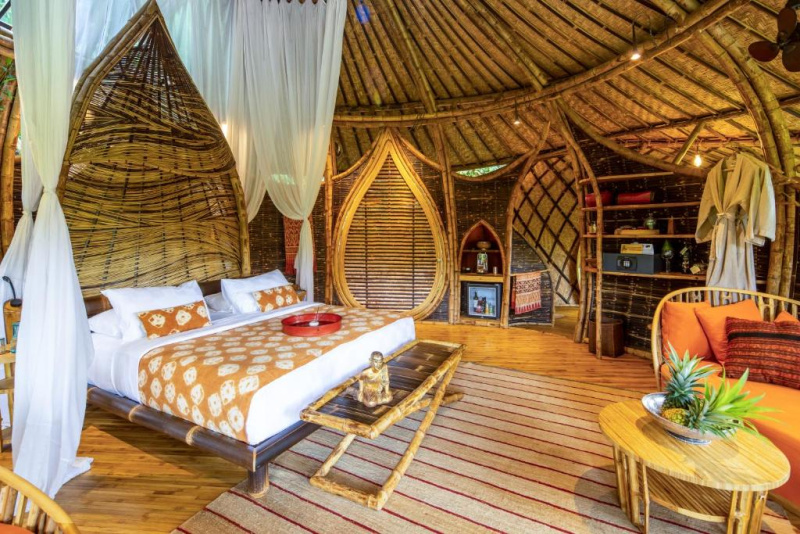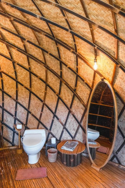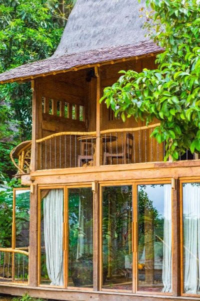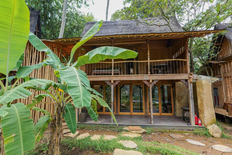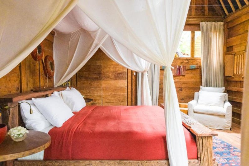 Unikátní mix historických teakových domů z Jávy (citlivě restaurovaných) a moderních bambusových staveb. Areál je průběžně udržovaný, interiéry a zahrady působí svěže; charakter zůstává autentický a přírodní.