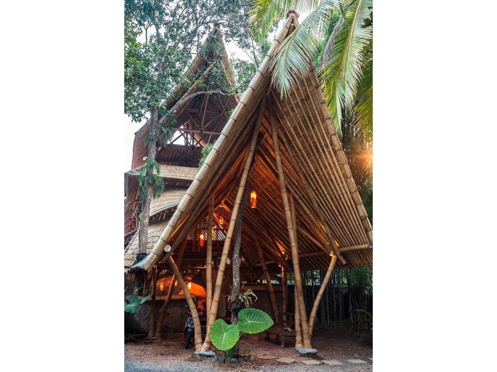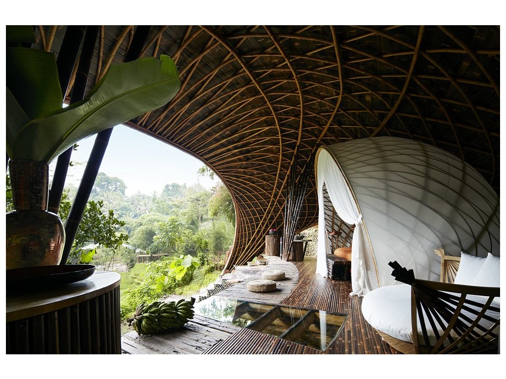 cca 96 m² | Ikonická bambusová stavba; plynulé propojení interiéru s džunglí.