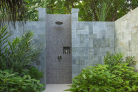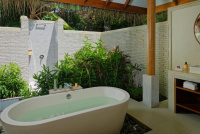 89 m², plážová vila s venkovní sprchou, přímým vstupem na pláž, polostínem a terasou se soukromím.