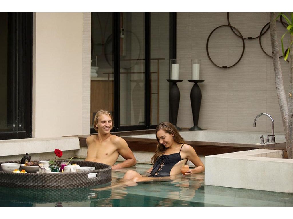 Soukromí a romantika jsou tady na prvním místě: vily jen pro 2, diskrétní servis, možnost výzdob a rituálů pro speciální chvíle. Oceňujeme in-villa snídaně, pohodlí vlastního bazénu a blízkost Seminyaku (restaurace, butiky, beach kluby). Zážitek je komorní a pohodový; kdo hledá velký resort s programem, může volit jinam. Perfektní základna pro objevování západního pobřeží i večerní život Seminyaku.