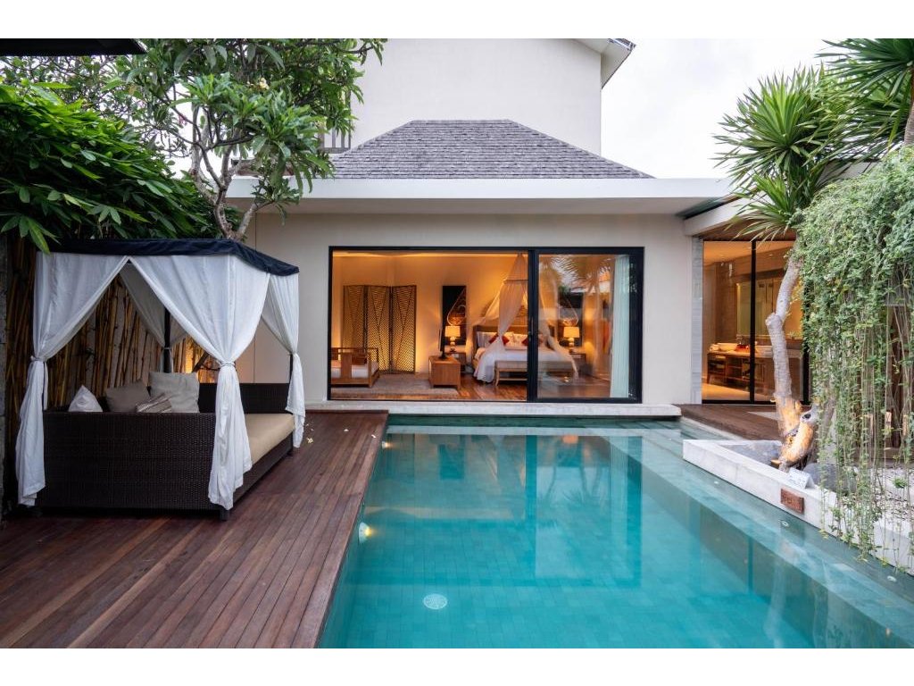 Intimní kolekce privátních romantických vil v srdci Seminyak / Kerobokan. Každá vila má vlastní bazén, velkou ložnici s koupelnou a možnost in-villa servisu (snídaně do vily, romantické dekorace, floating breakfast). Skvělá volba pro páry a honeymoon, poblíž pláže, kaváren a nightlife Seminyaku, zároveň v klidné boční ulici.