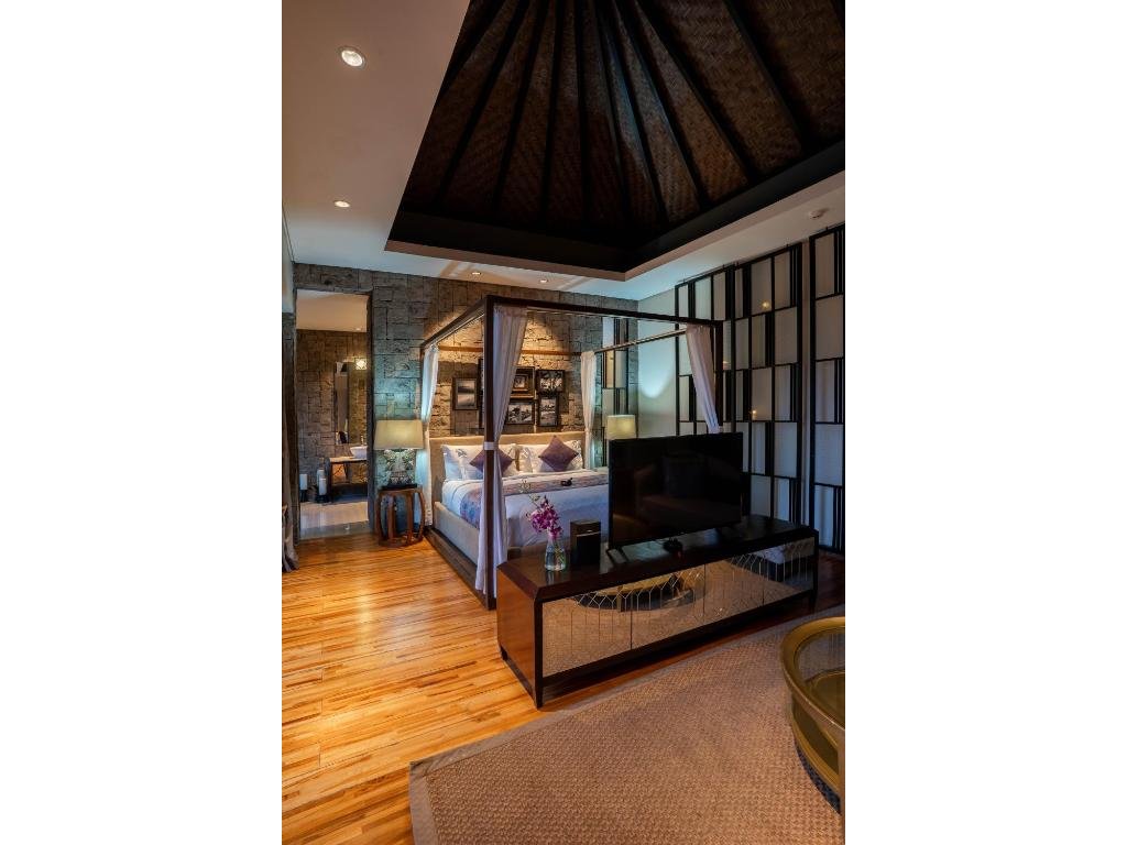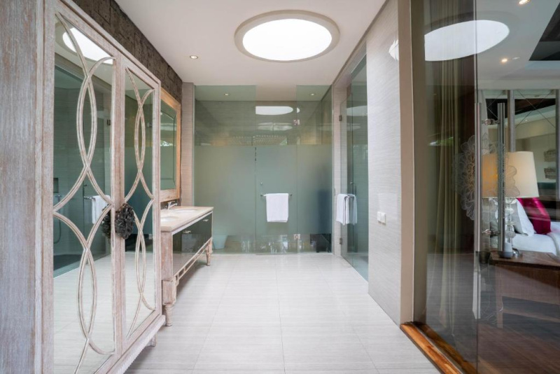 Každá vila má privátní bazén, prostornou ložnici s koupelnou (často s velkou vanou), terasu a posezení. K dispozici je in-villa dining, romantické dekorace, floating breakfast, masáže ve vile a concierge pro aktivity a transfery.