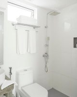 Pohodlný pokoj s klimatizací a moderní koupelnou; ideální základna poblíž pláže.