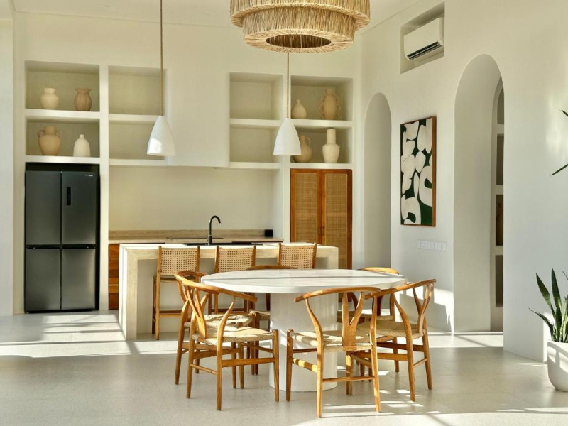 Soukromé vily s obývacím koutem, jídelnou a kuchyňkou/kuchyní, terasou či zahradou. Klimatizace, Wi-Fi, denní úklid (nebo dle domluvy). U vybraných vil soukromý bazén; zajištění transferů a zážitků na vyžádání.