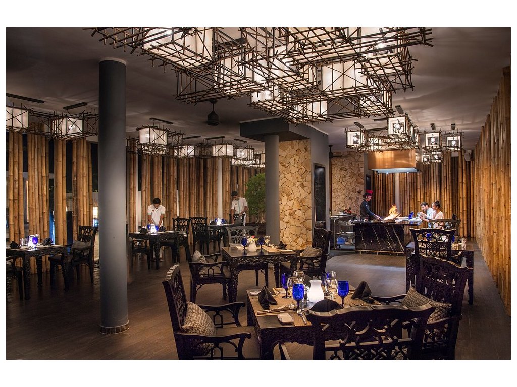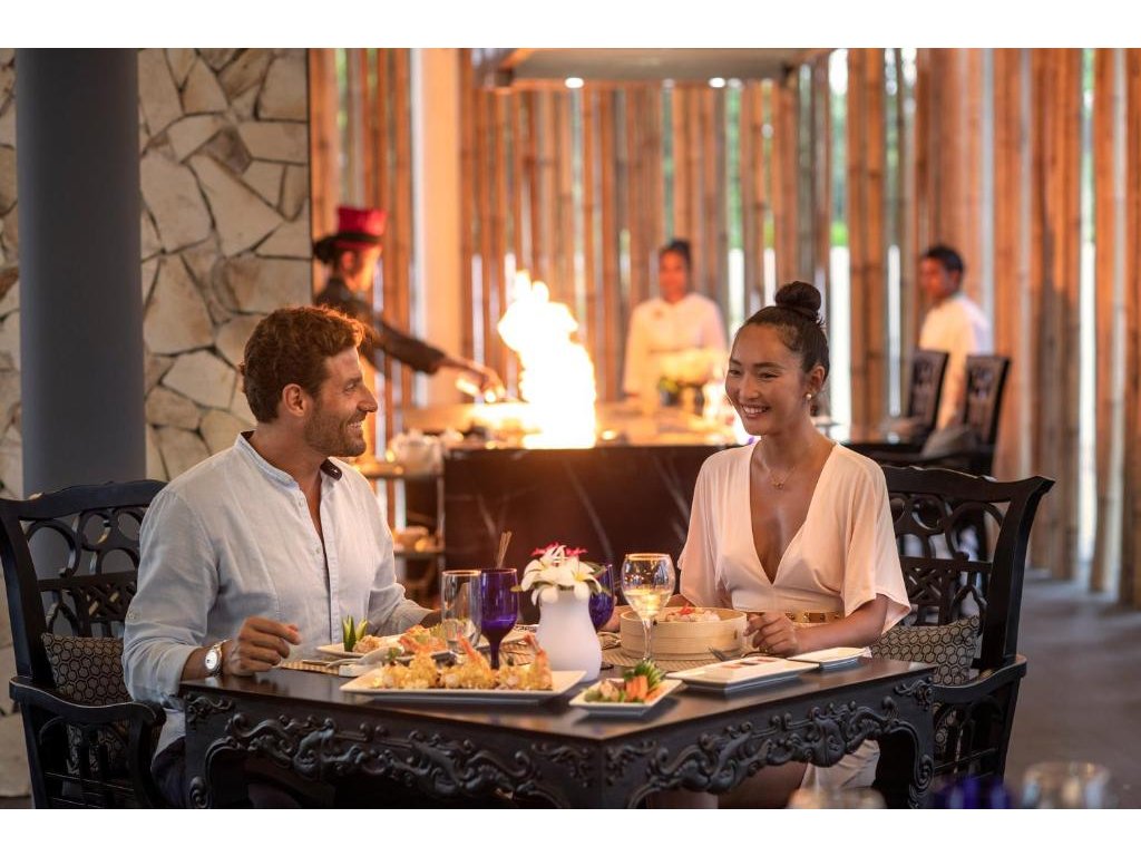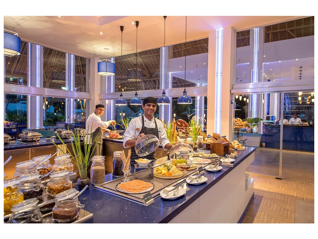4 restaurace – mezinárodní, jihoamerická, asijská a plážový grill. Široká nabídka čerstvých surovin, kvalitní vína a prémiové značky alkoholu v rámci all inclusive.
