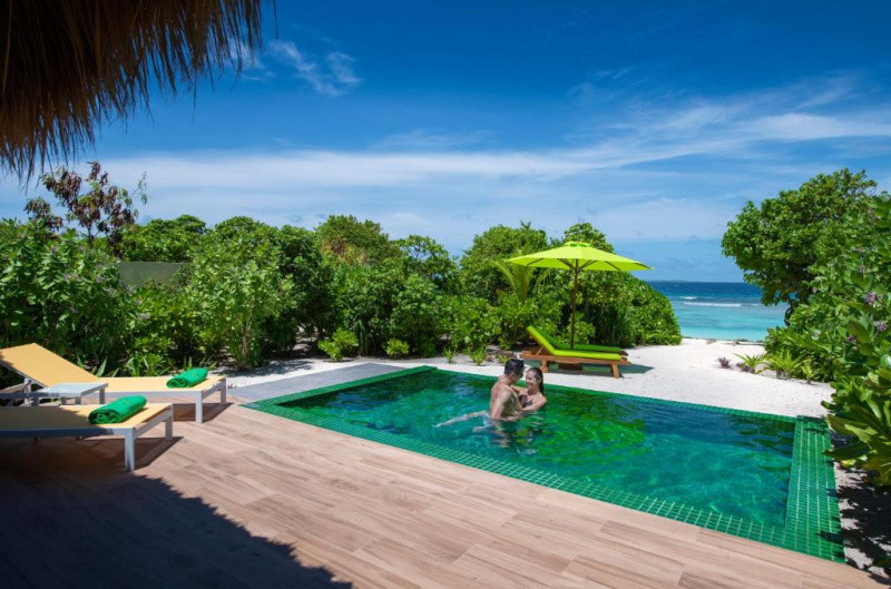 Resort nabízí dostatek soukromí, krásné scenérie, privátní večeře na pláži a vodní vily s výhledem na západ slunce. Vhodný pro svatební cesty i páry hledající klidný, ale aktivní pobyt.
